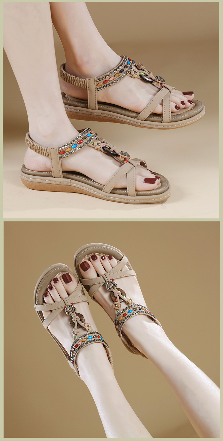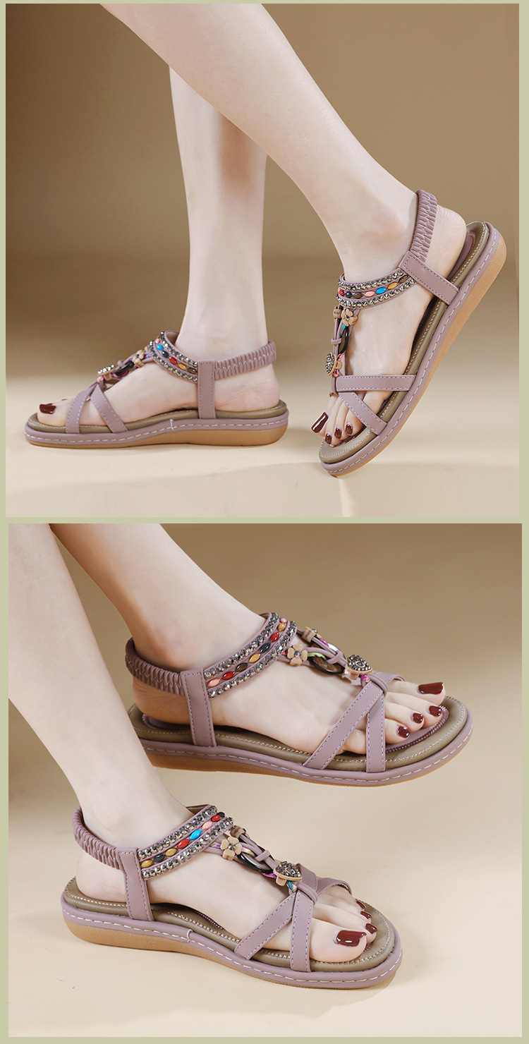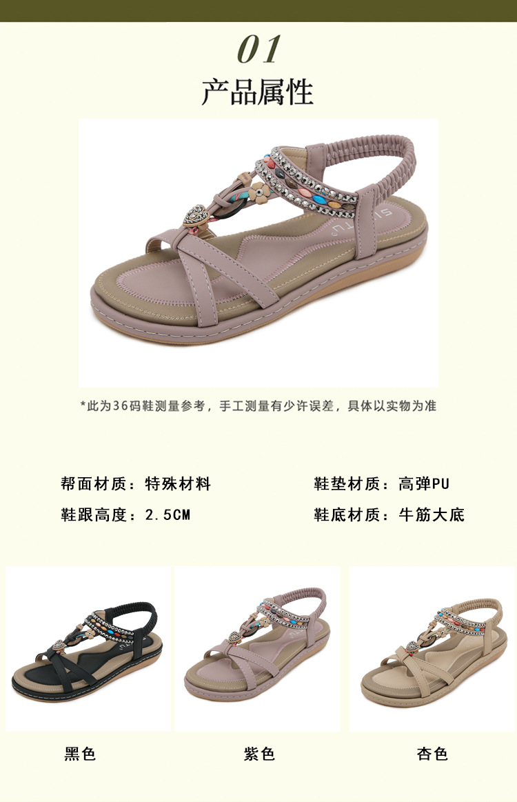 W676-4 Nuevo 2024 primavera y verano cuentas de madera hebilla rhinestone moda casual Tailandia playa Sandalias planas para las mujeres