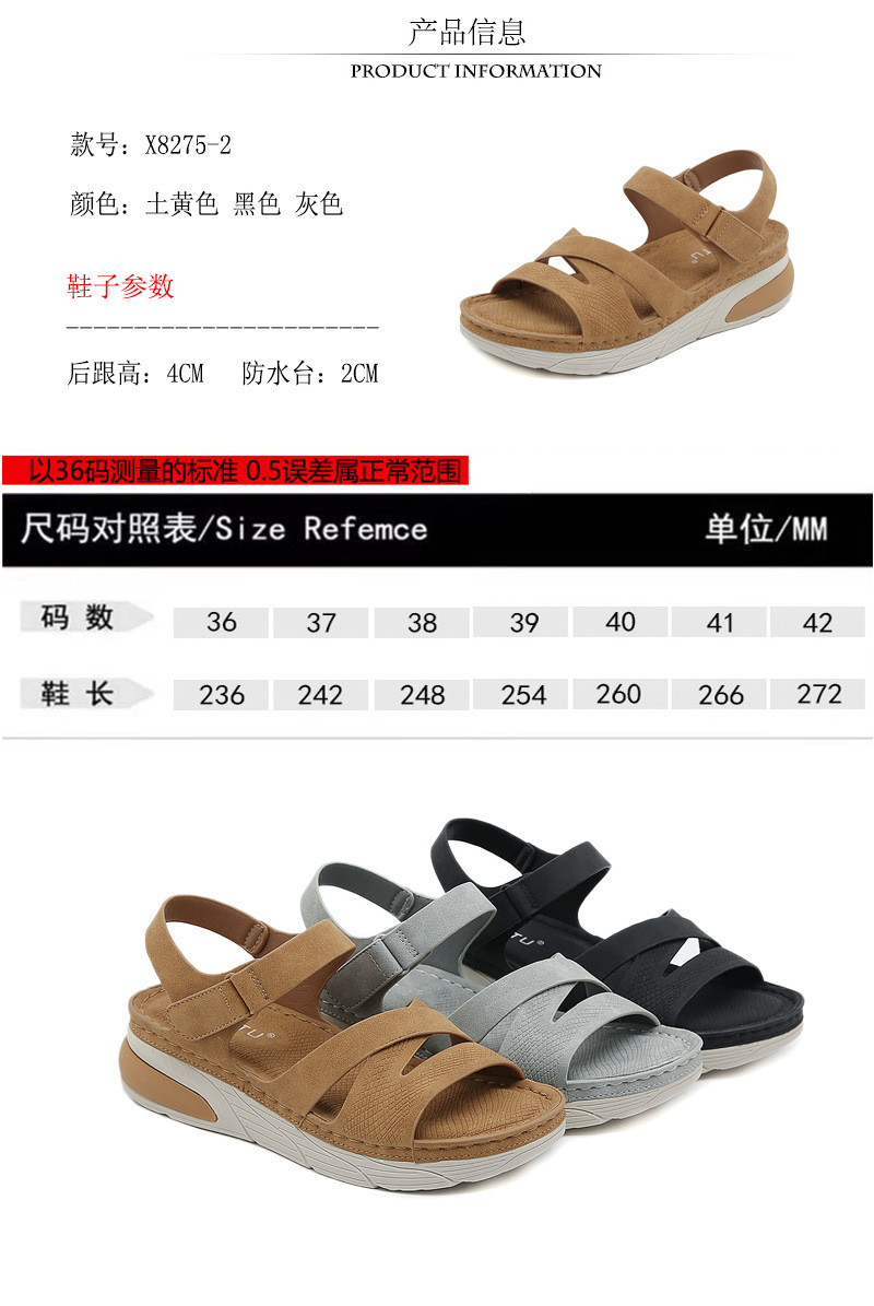 X8275-2 nuevo modelo 2025MD sandalias ligeras casuales deportivas cómodas con suela gruesa, velcro y costuras, talla grande para mujer