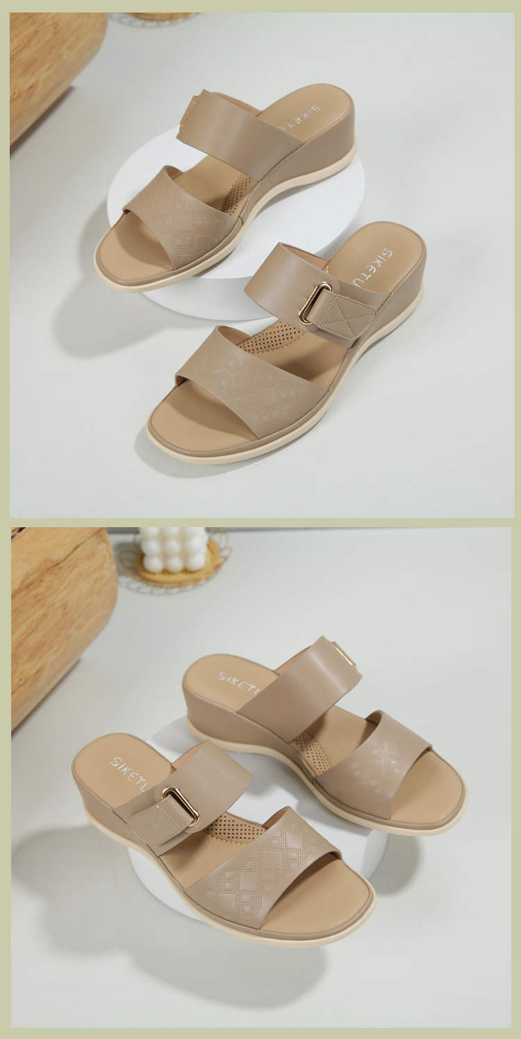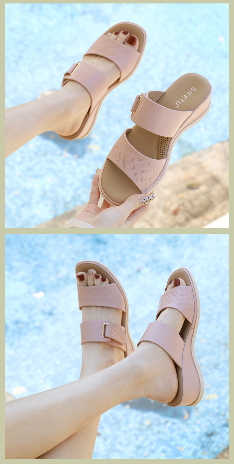 1520-3 Nuevo estilo 2025 sandalias de verano europeas y americanas, hebilla, playa informal, playa, cómoda sandalias de cuña transfronteriza