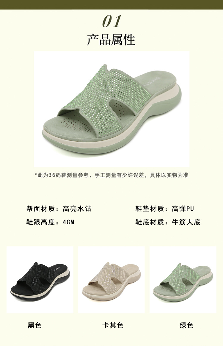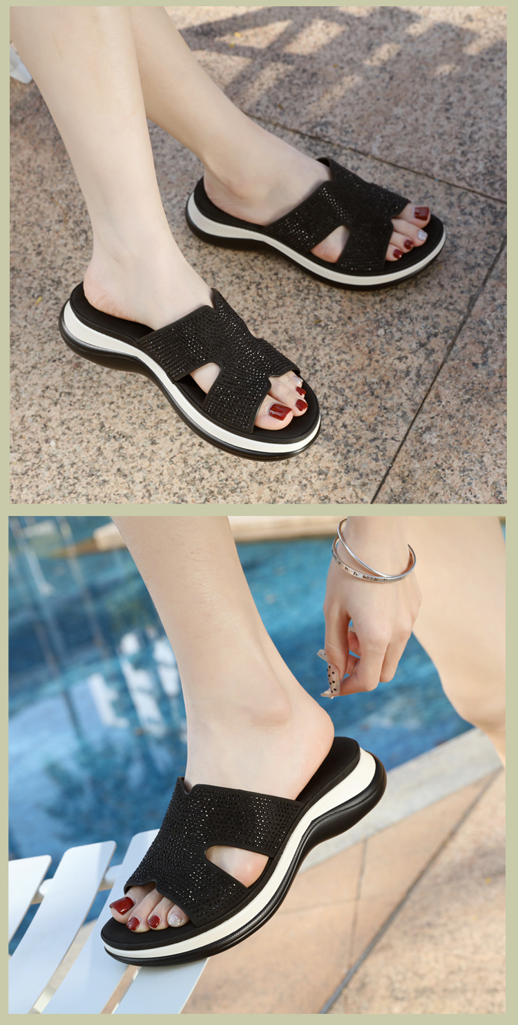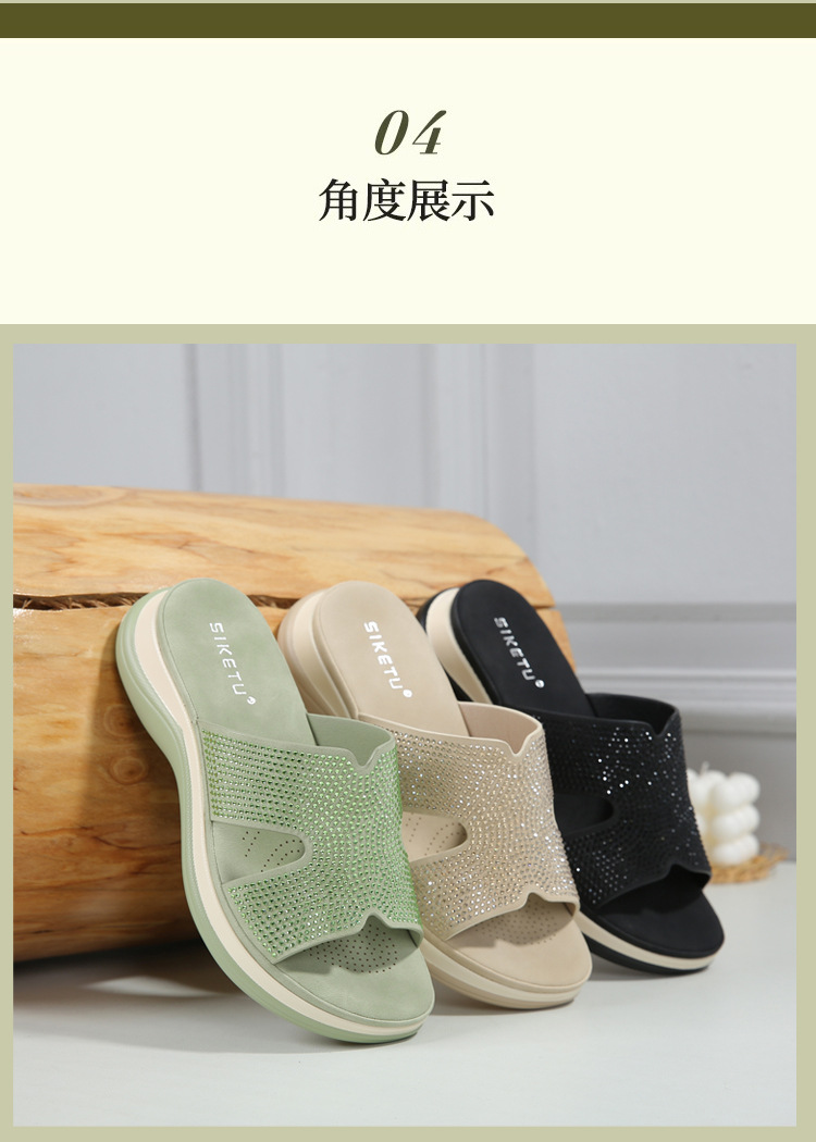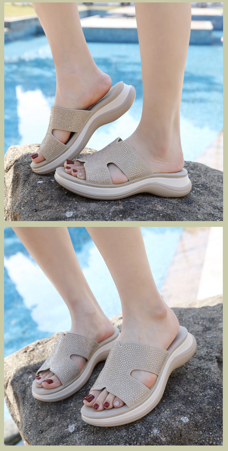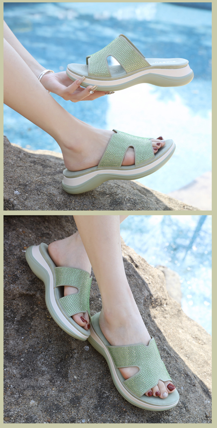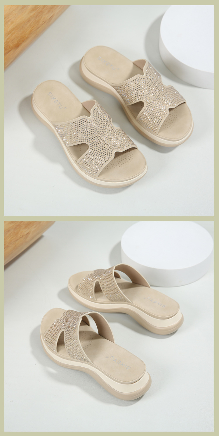 4003-3 nuevas sandalias de diamantes de imitación casuales de Amazon de primavera y verano de 2025 para mujer, zapatillas de talón de pendiente de playa antideslizantes