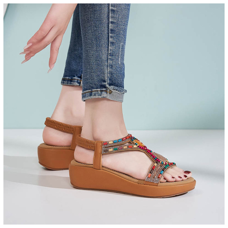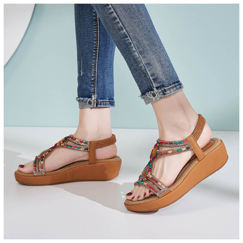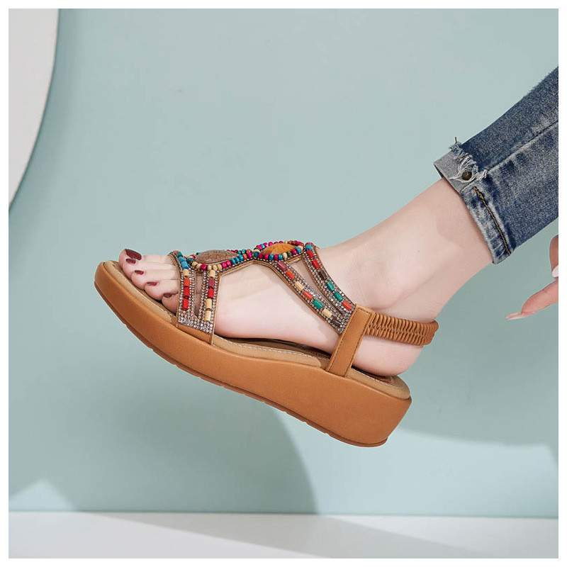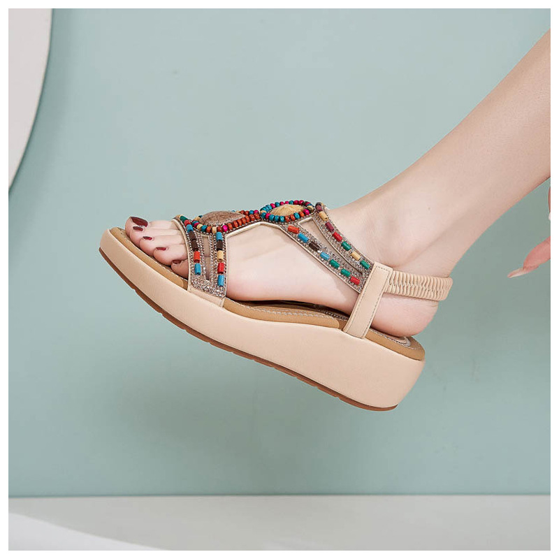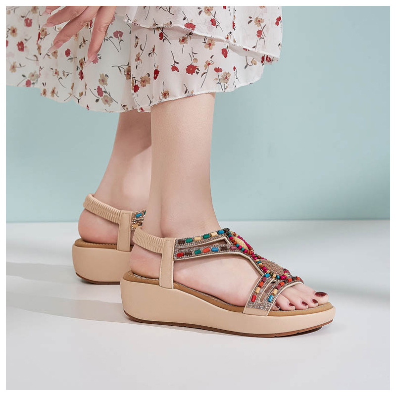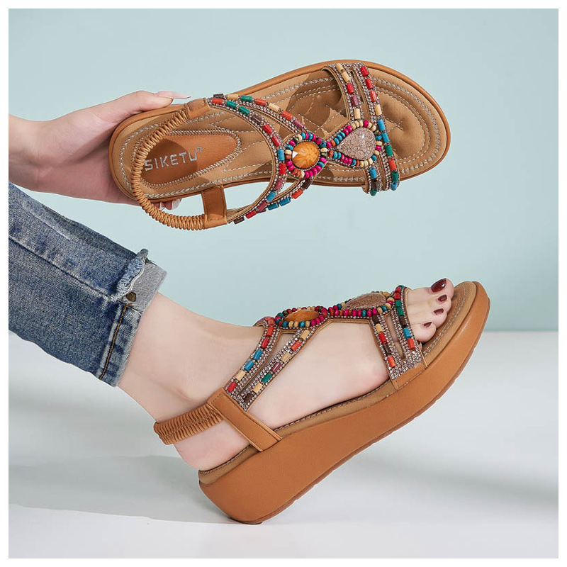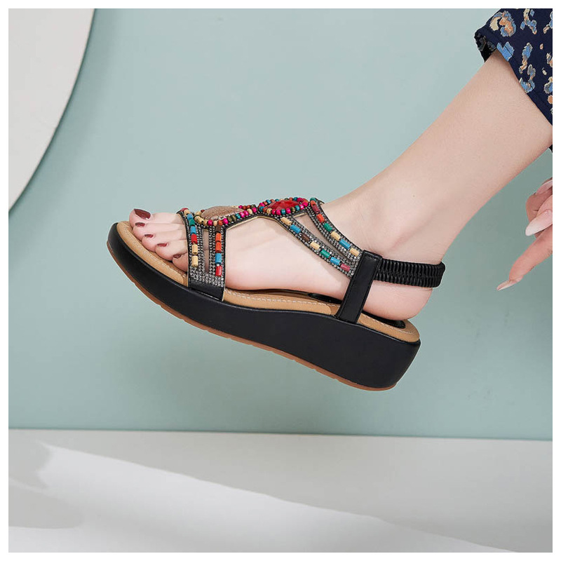 U670 - 1 nuevo estilo 2025 nacional de onda retro semia cuentas elásticas de diamante de agua tacones sandalias mujeres