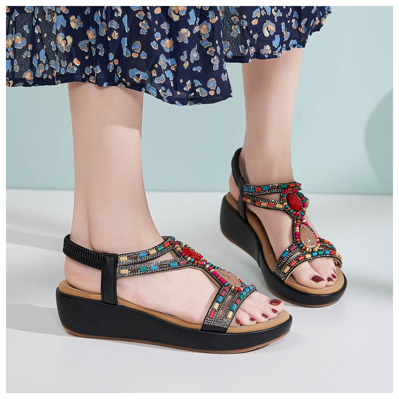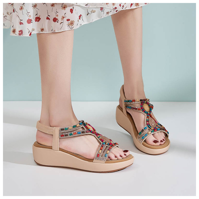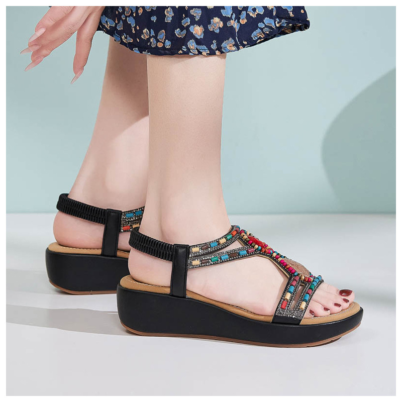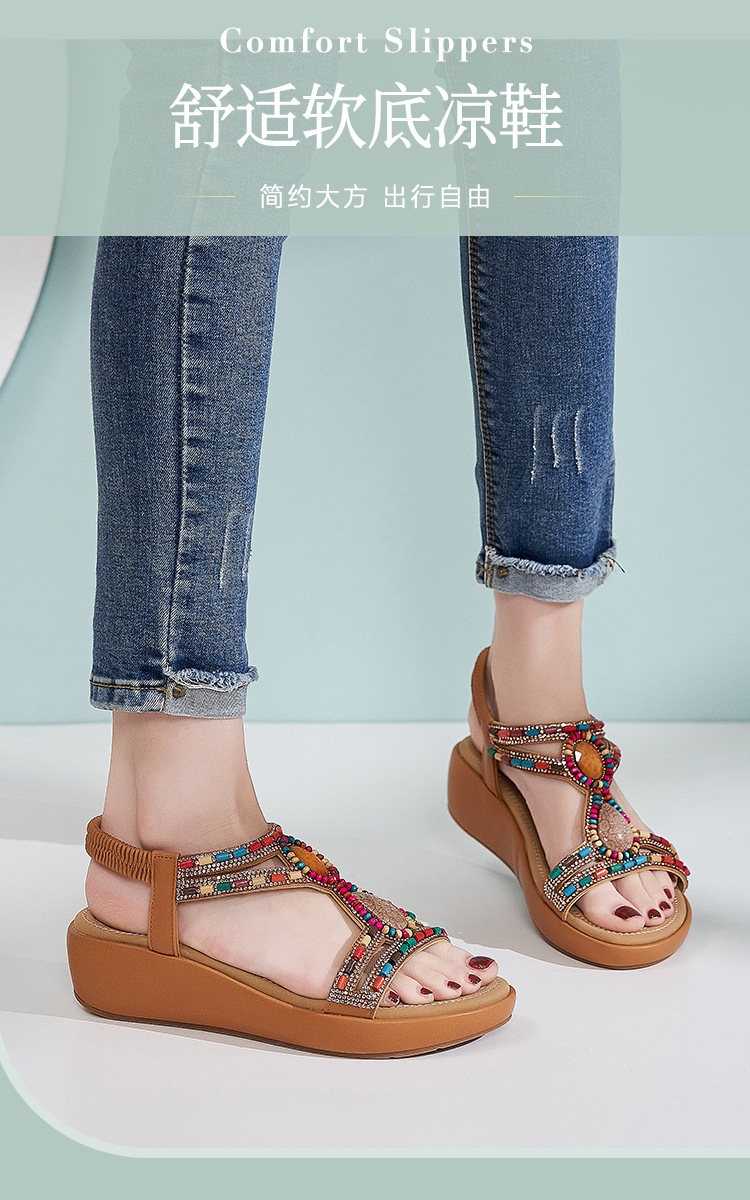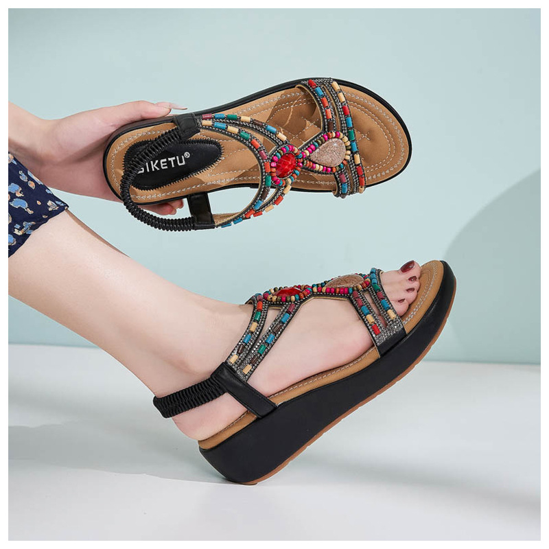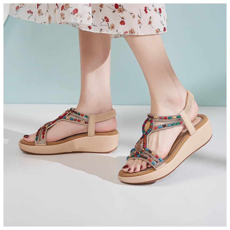 U670 - 1 nuevo estilo 2025 nacional de onda retro semia cuentas elásticas de diamante de agua tacones sandalias mujeres