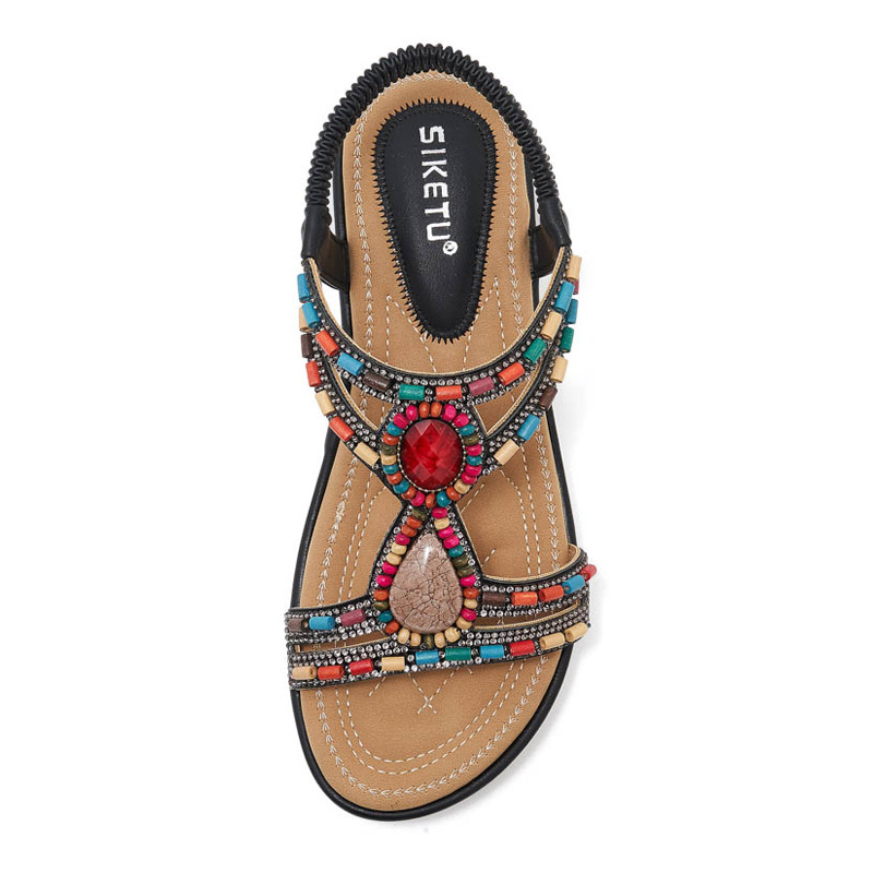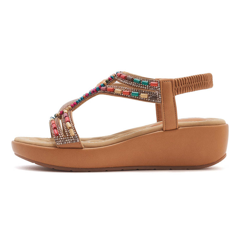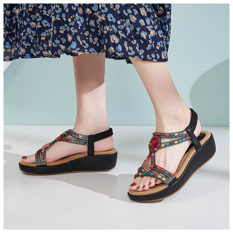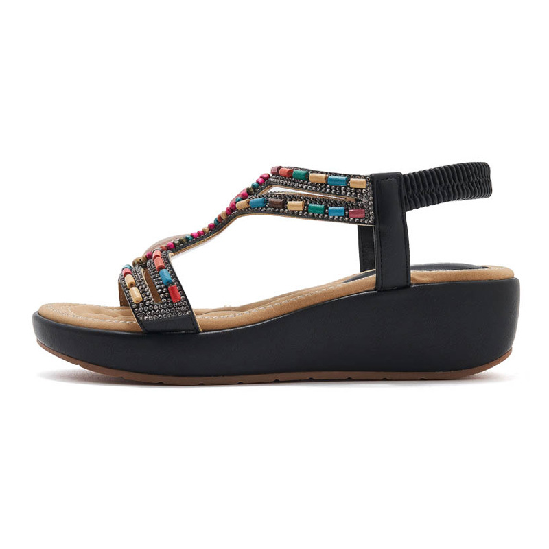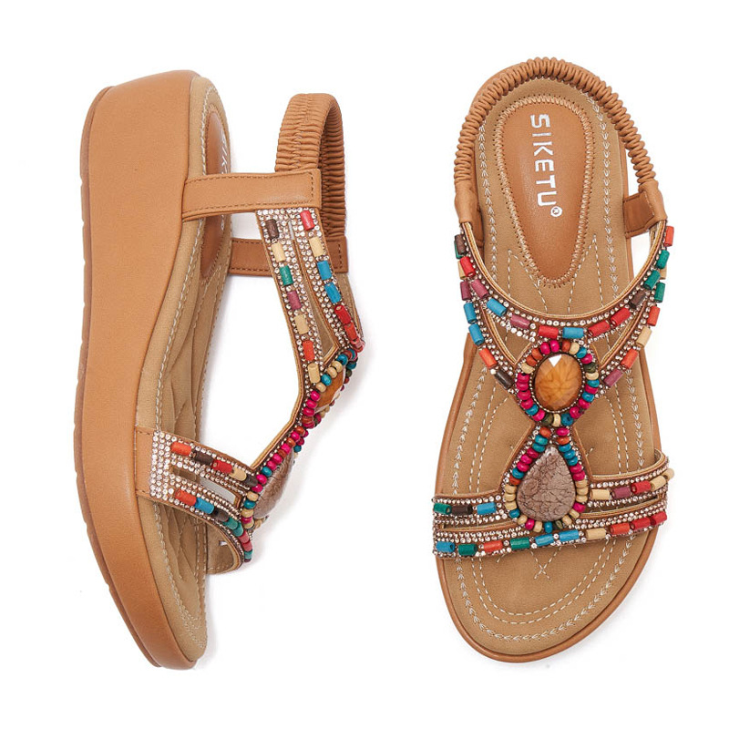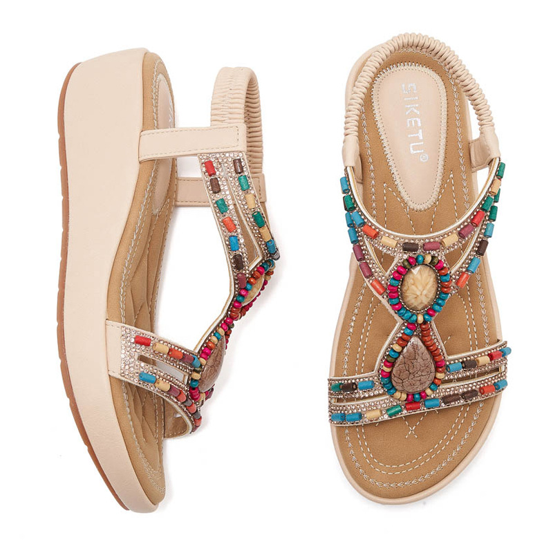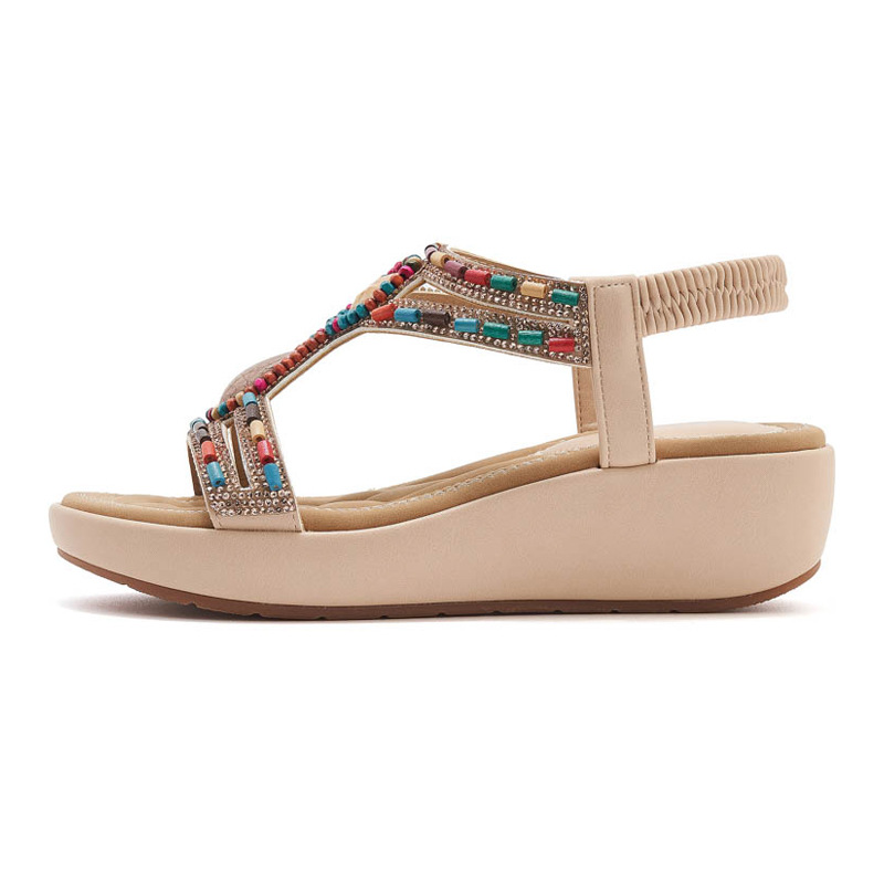 U670 - 1 nuevo estilo 2025 nacional de onda retro semia cuentas elásticas de diamante de agua tacones sandalias mujeres
