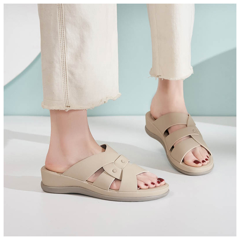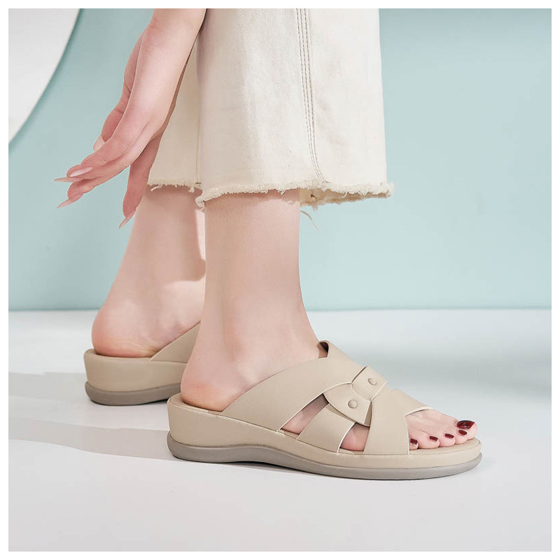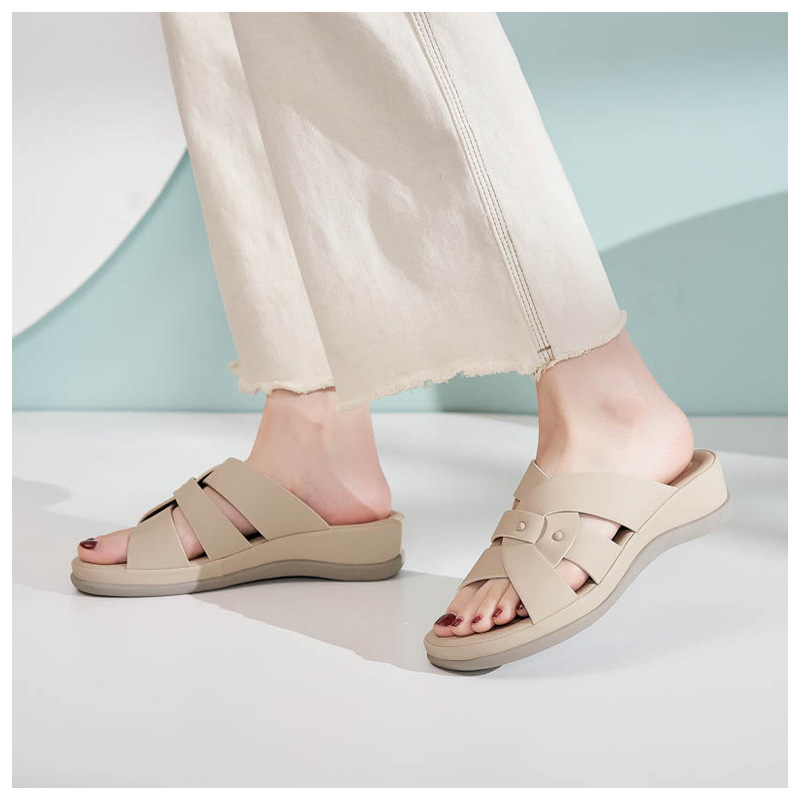 2025 primavera nueva zapatilla fría ligera antideslizante pendiente con zapatillas de viaje cómodas ociosas de fondo grueso para mujeres