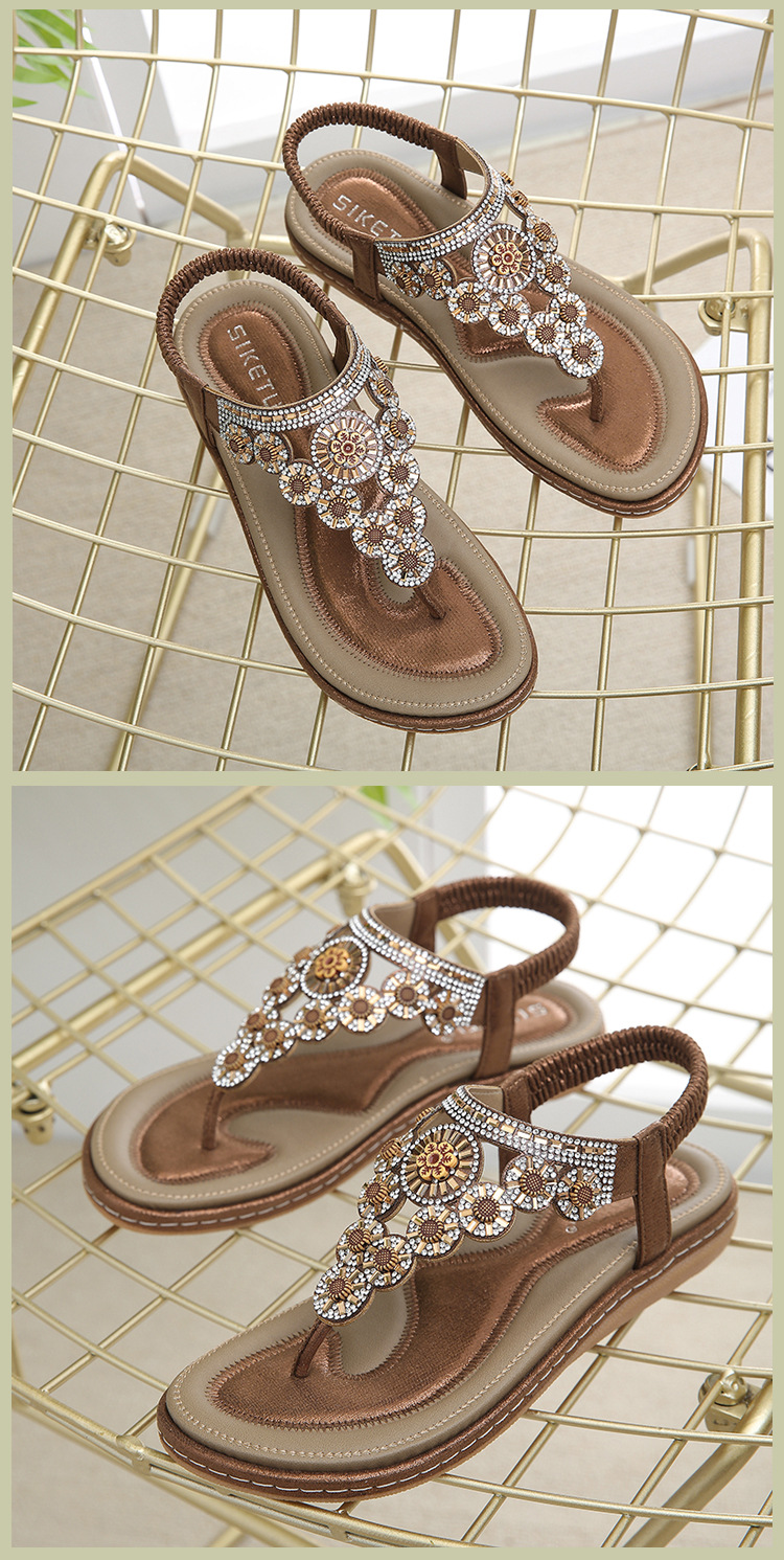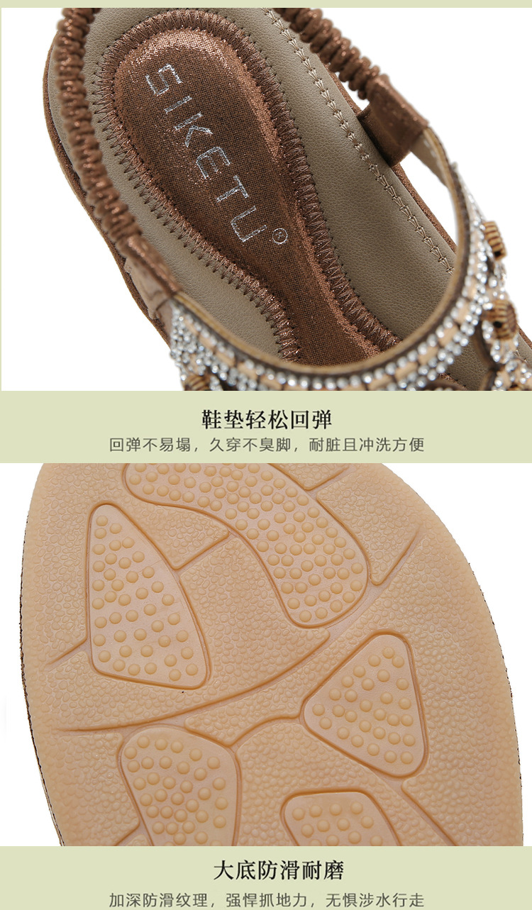 W676-7 nuevo verano 2025 transfronterizo europeo y americano chanclas planas diamantes de imitación cómodas sandalias de playa de playa mujeres