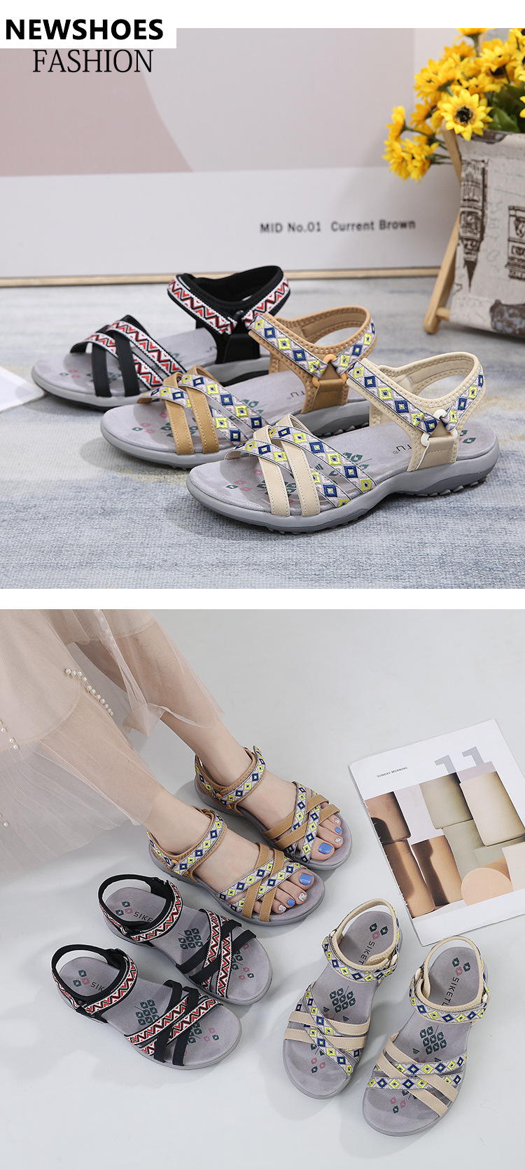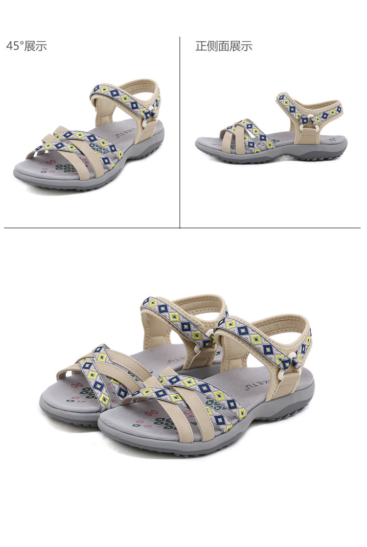 K6357-3 nuevas sandalias deportivas de primavera/verano 2025 para exportación con velcro estampado, talla grande, zapatos de mujer, dropshipping