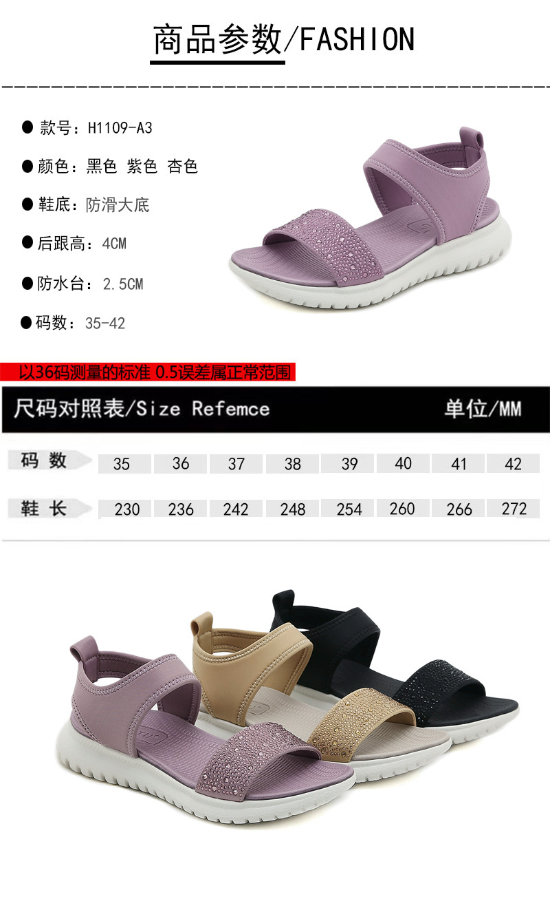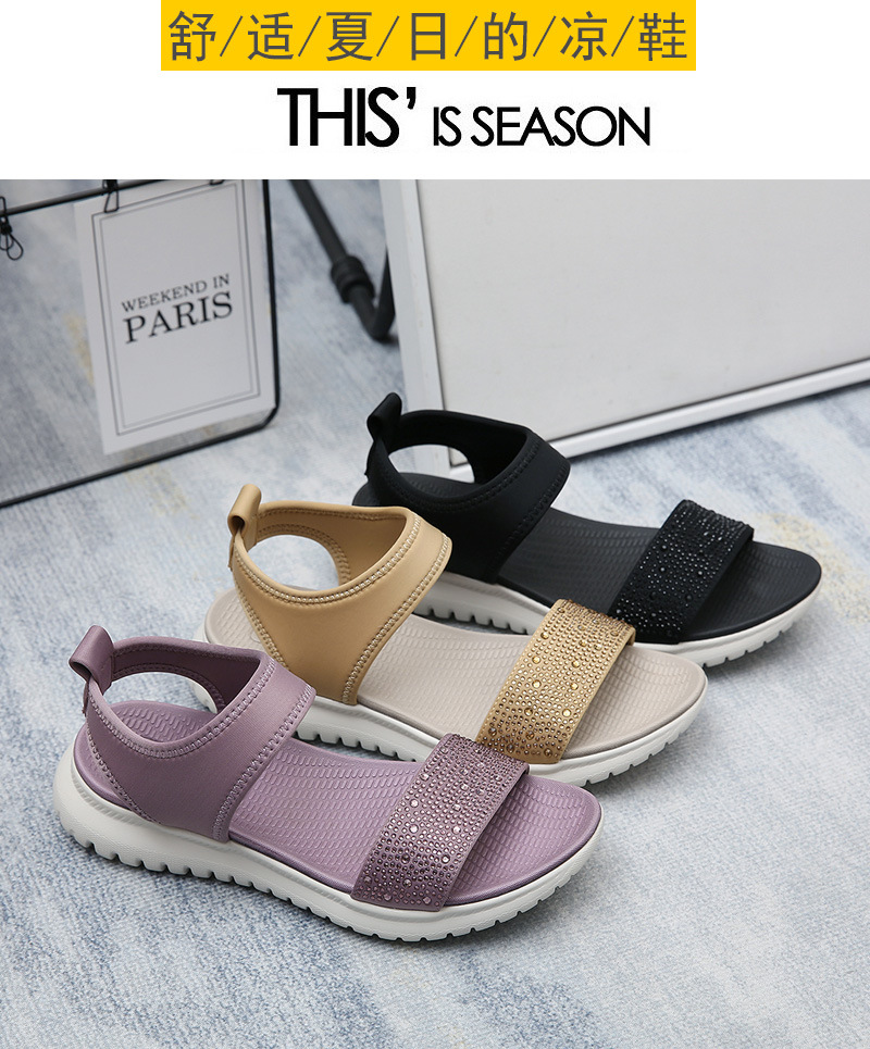 H1109-A3 2024 verano nuevas sandalias simples de las mujeres deportes ligeros estilo rhinestone sandalias de las mujeres entrega de una sola pieza