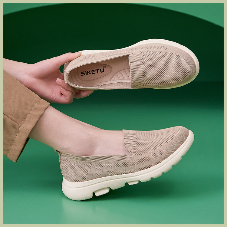B888 - 5 Amazon otoño y invierno 2025 nuevo tipo de almohadilla ligera antideslizante cabeza redonda de mediana edad tejido transpirable madre zapatos para mujeres