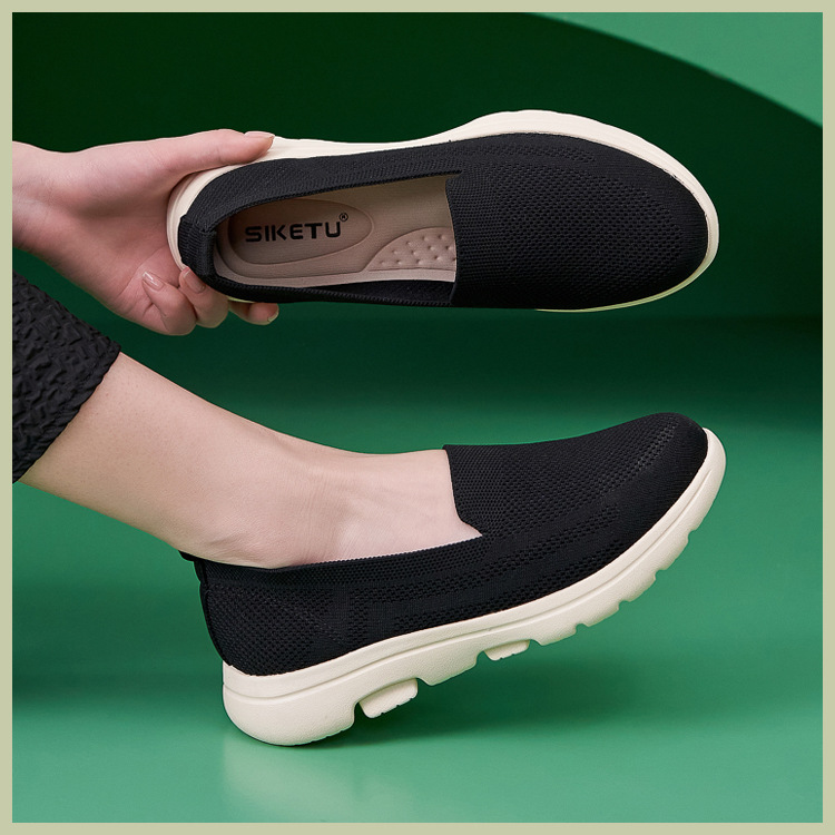 B888 - 5 Amazon otoño y invierno 2025 nuevo tipo de almohadilla ligera antideslizante cabeza redonda de mediana edad tejido transpirable madre zapatos para mujeres