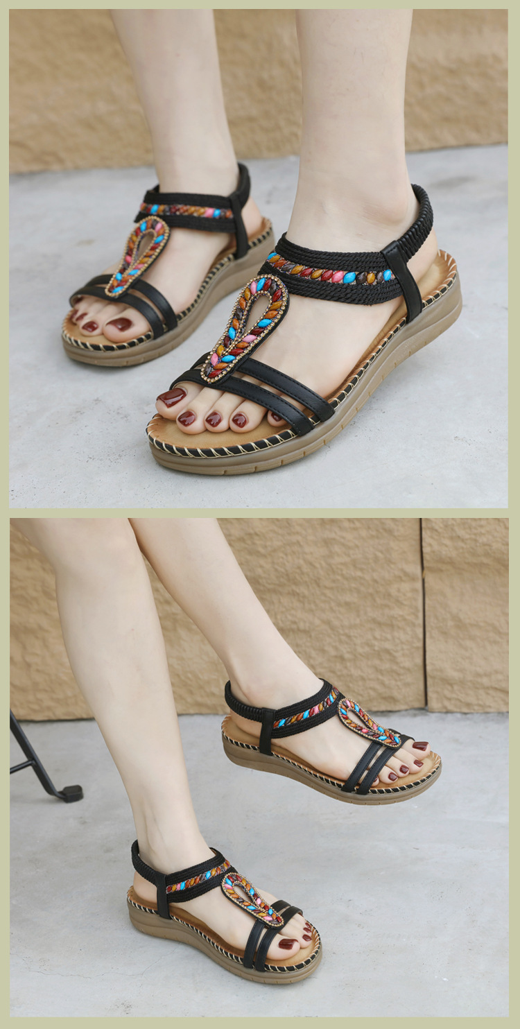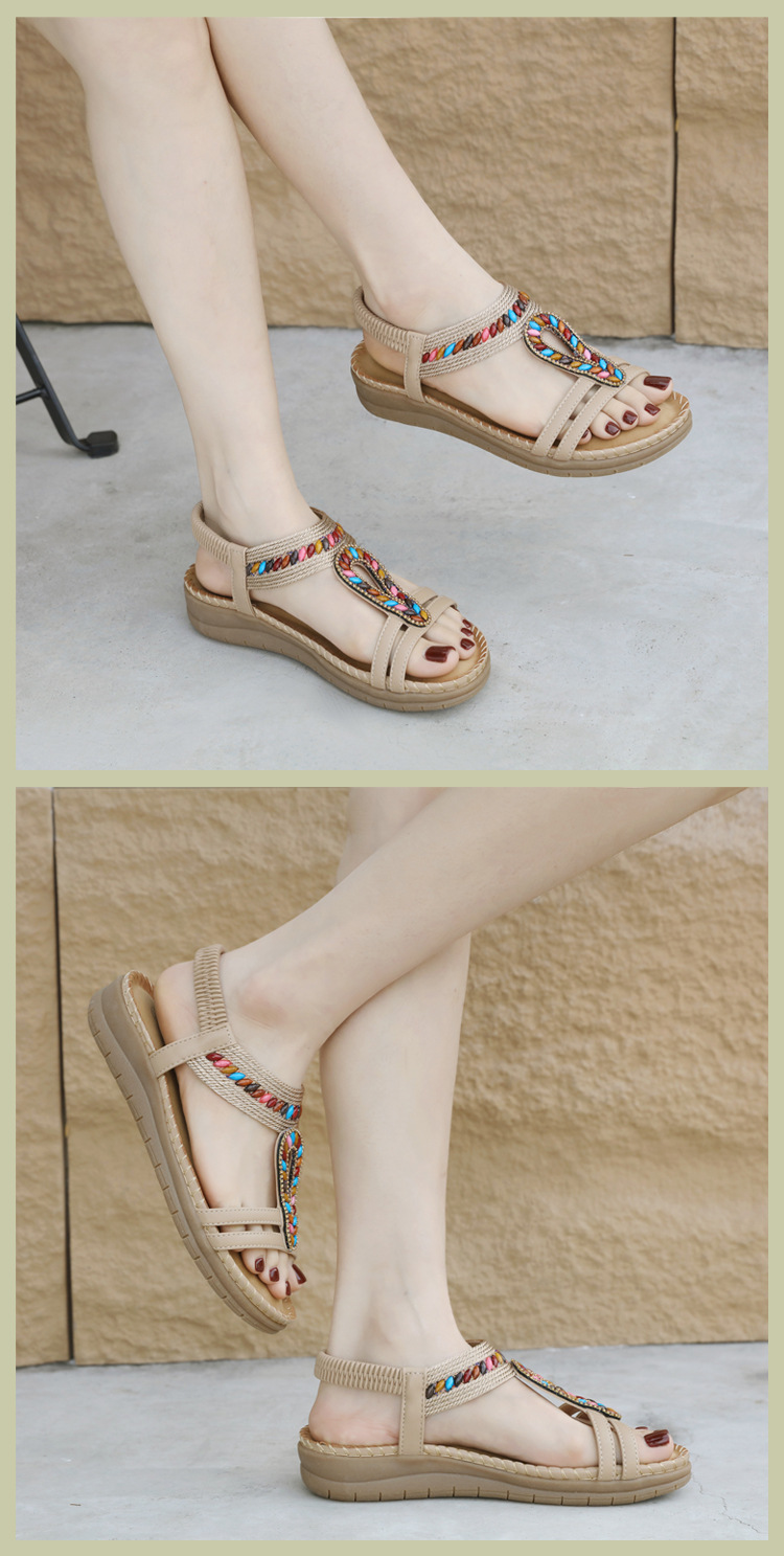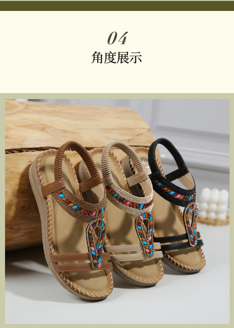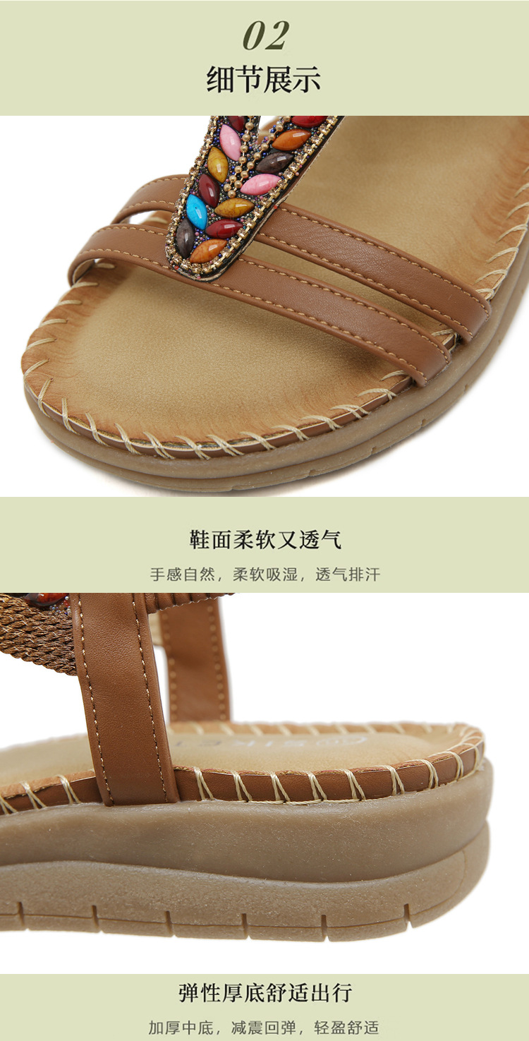 5012-8 Nueva 2025 bohemia sandalias de diamante casuales cómodas de látex masaje suela gruesa zapatos planos grandes