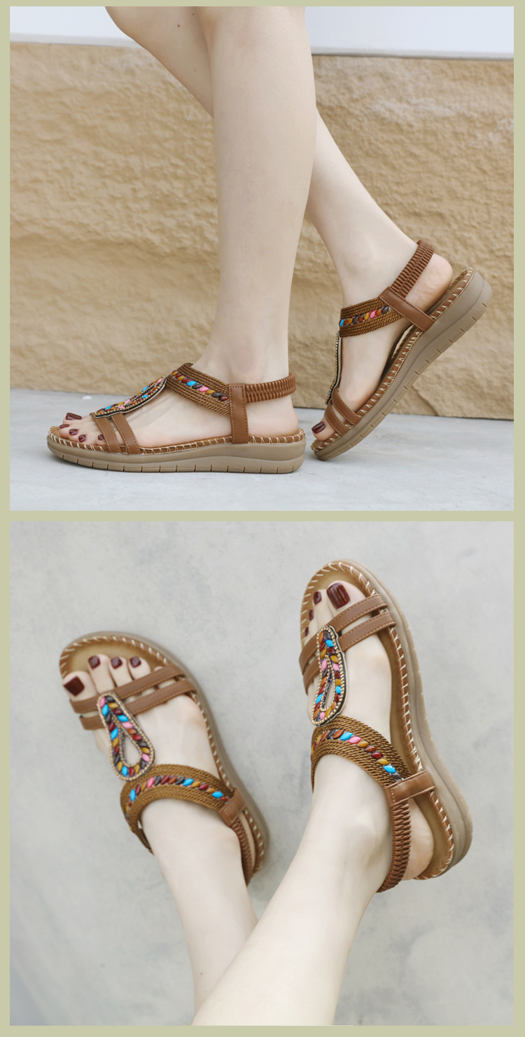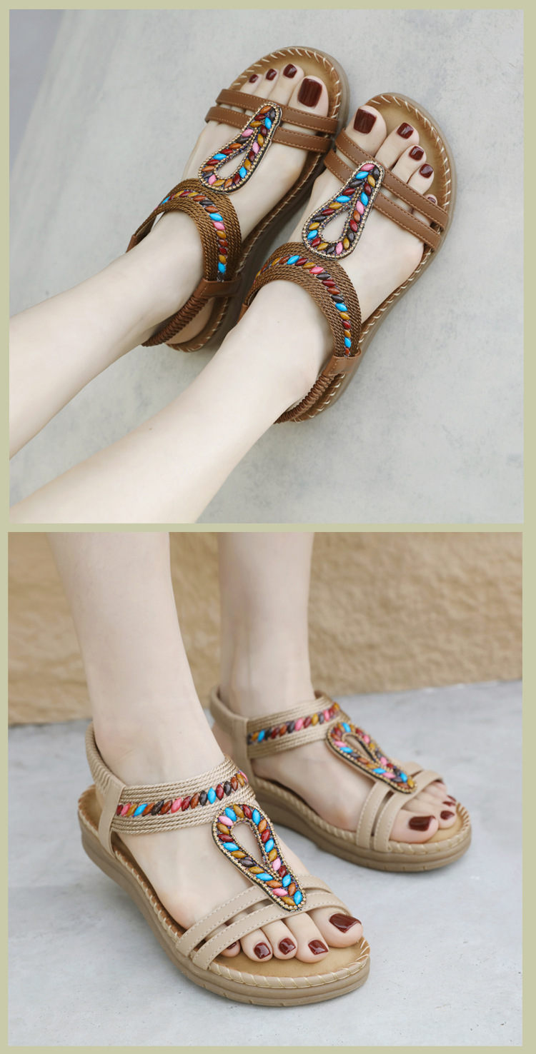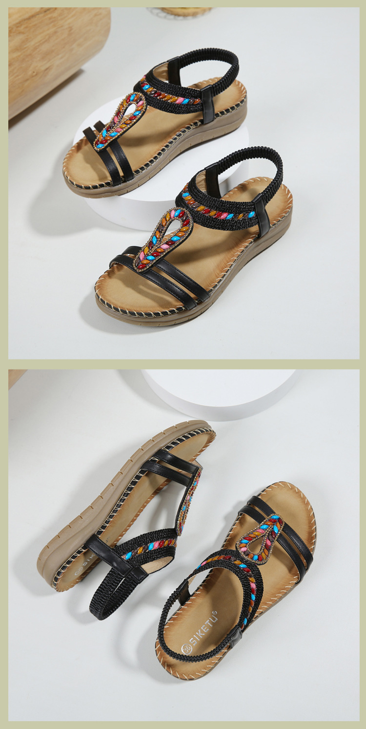 5012-8 Nueva 2025 bohemia sandalias de diamante casuales cómodas de látex masaje suela gruesa zapatos planos grandes