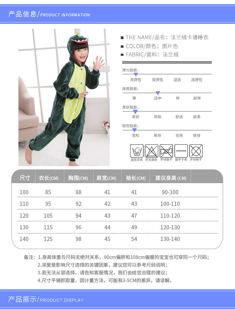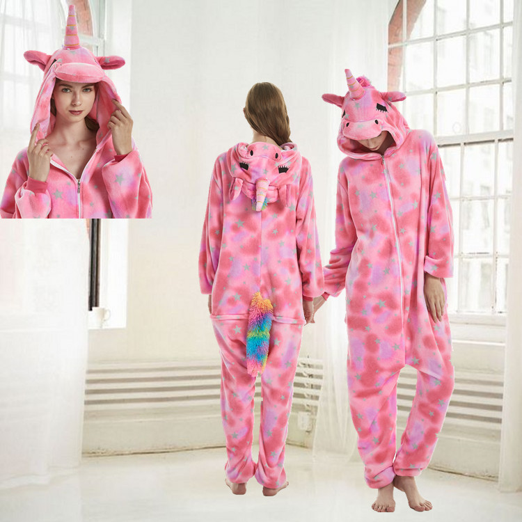 La franela transfronteriza de dibujos de animales de una sola pieza de los niños de los hombres y las mujeres del hogar desgaste lindo de los niños ropa para el hogar