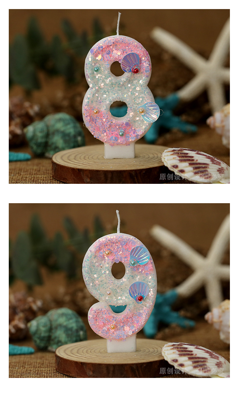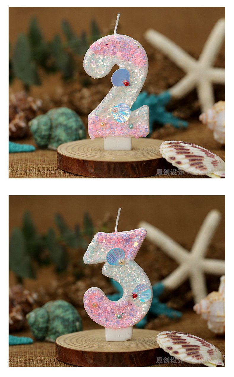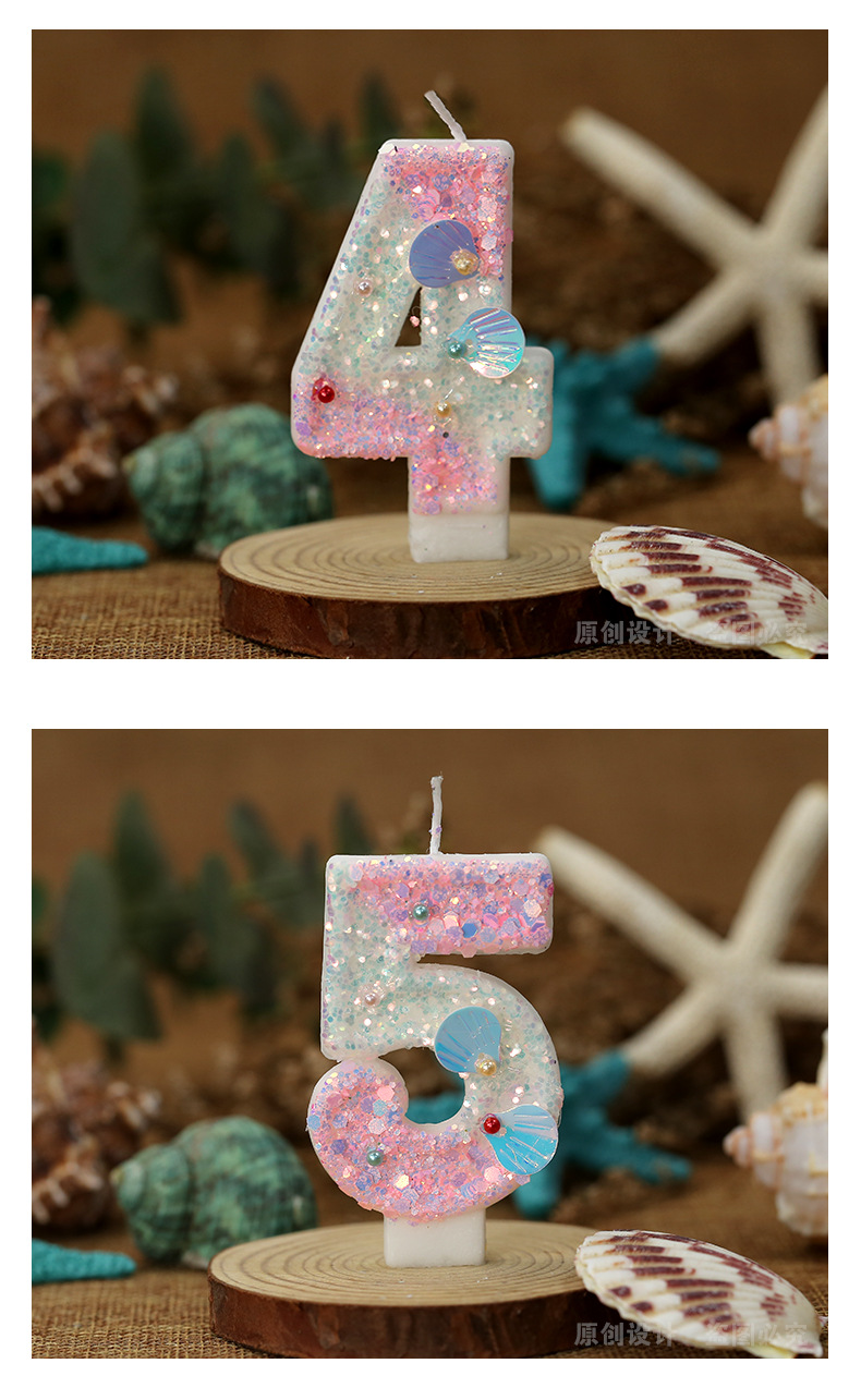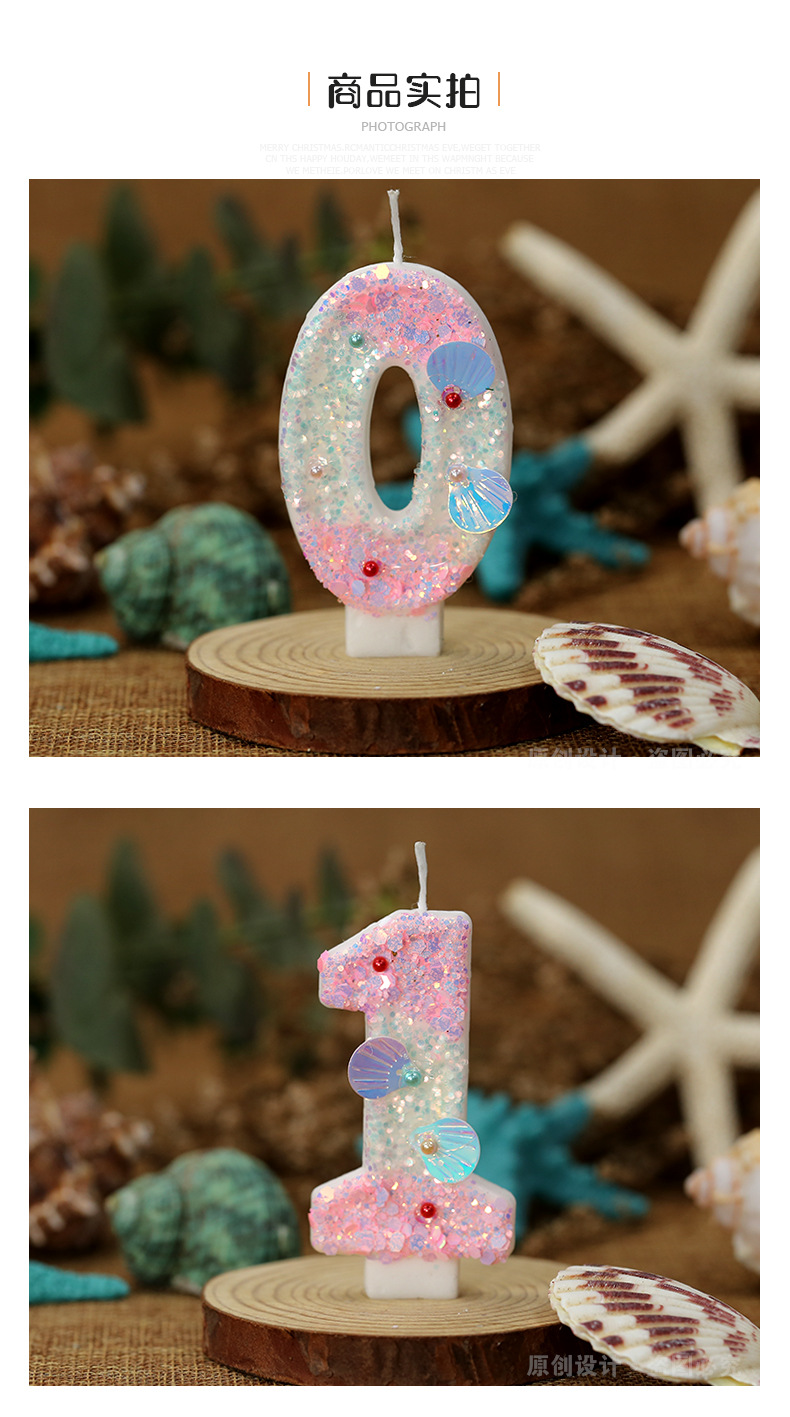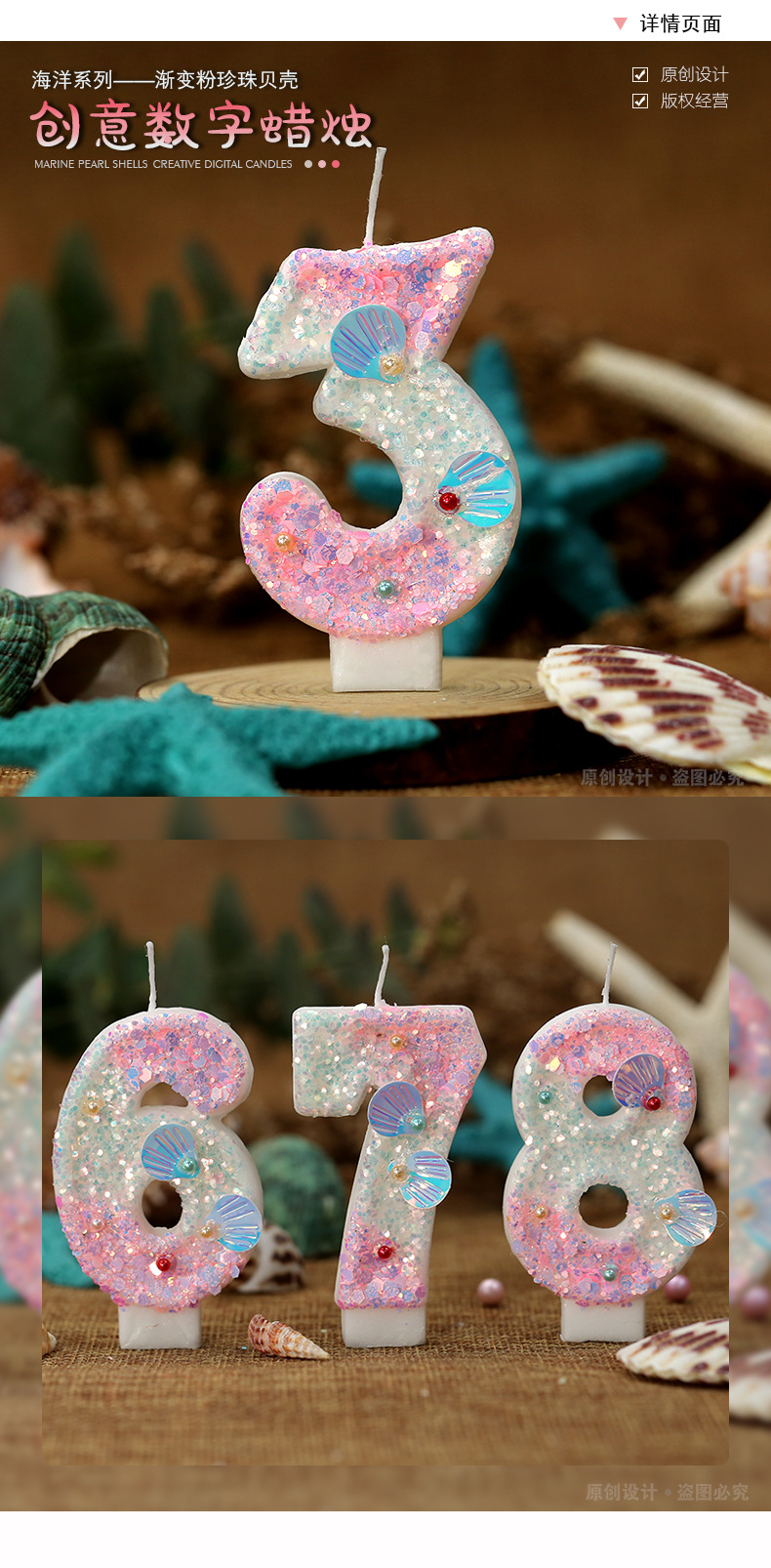 Vela numérica degradada rosa con perlas y conchas, creativa, para Amazon – Producto transfronterizo exclusivo