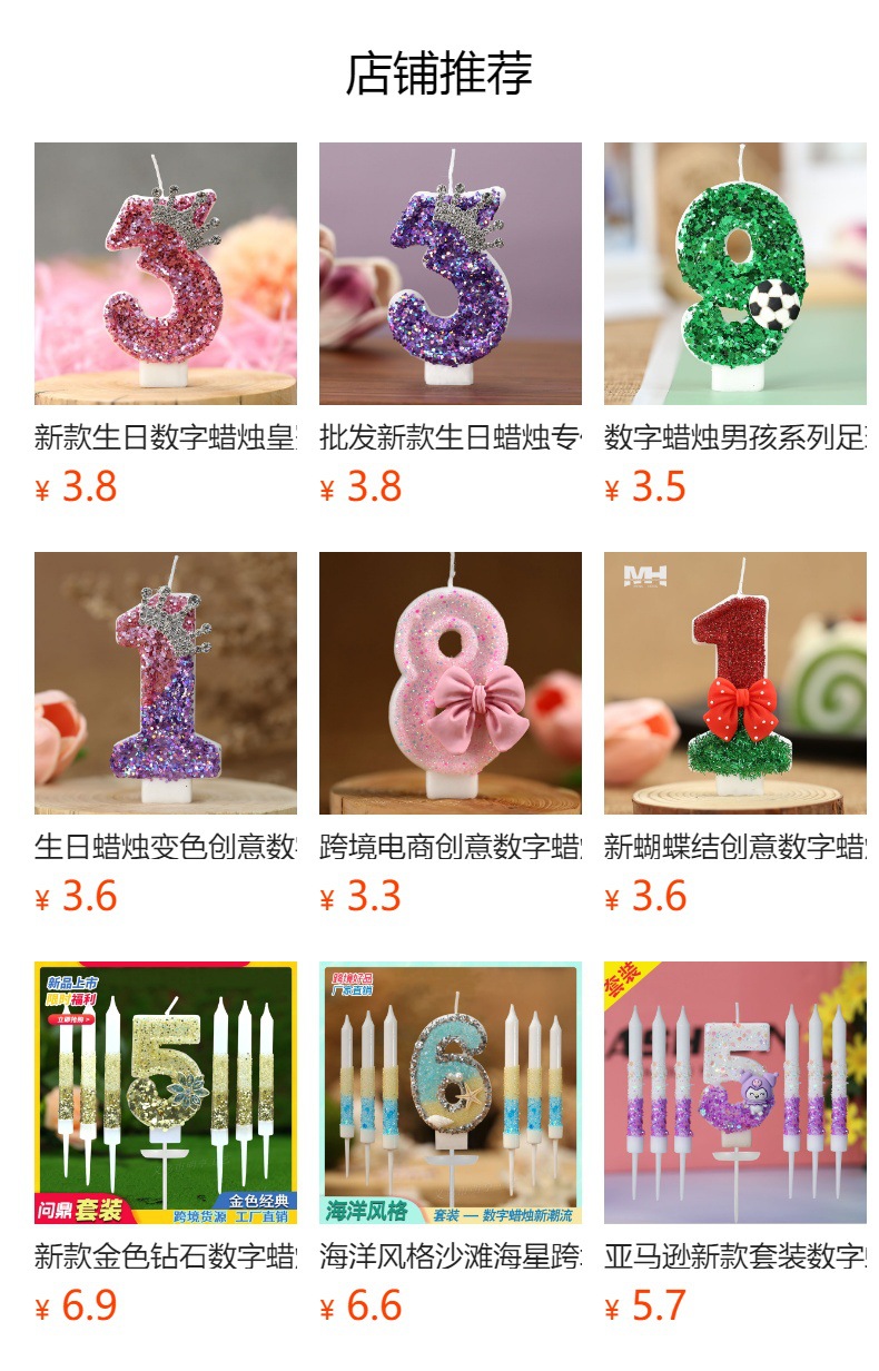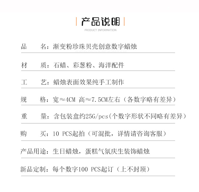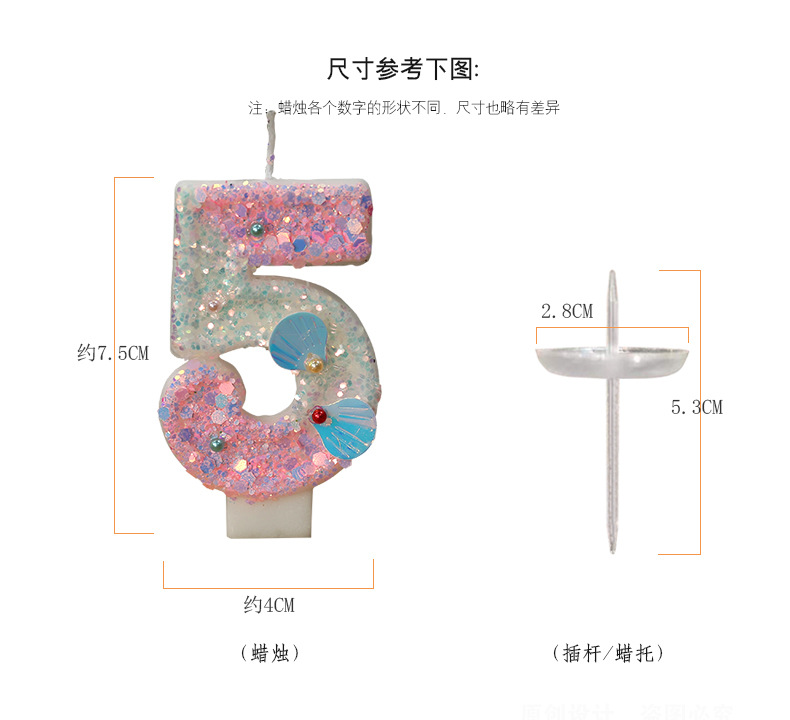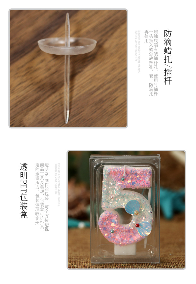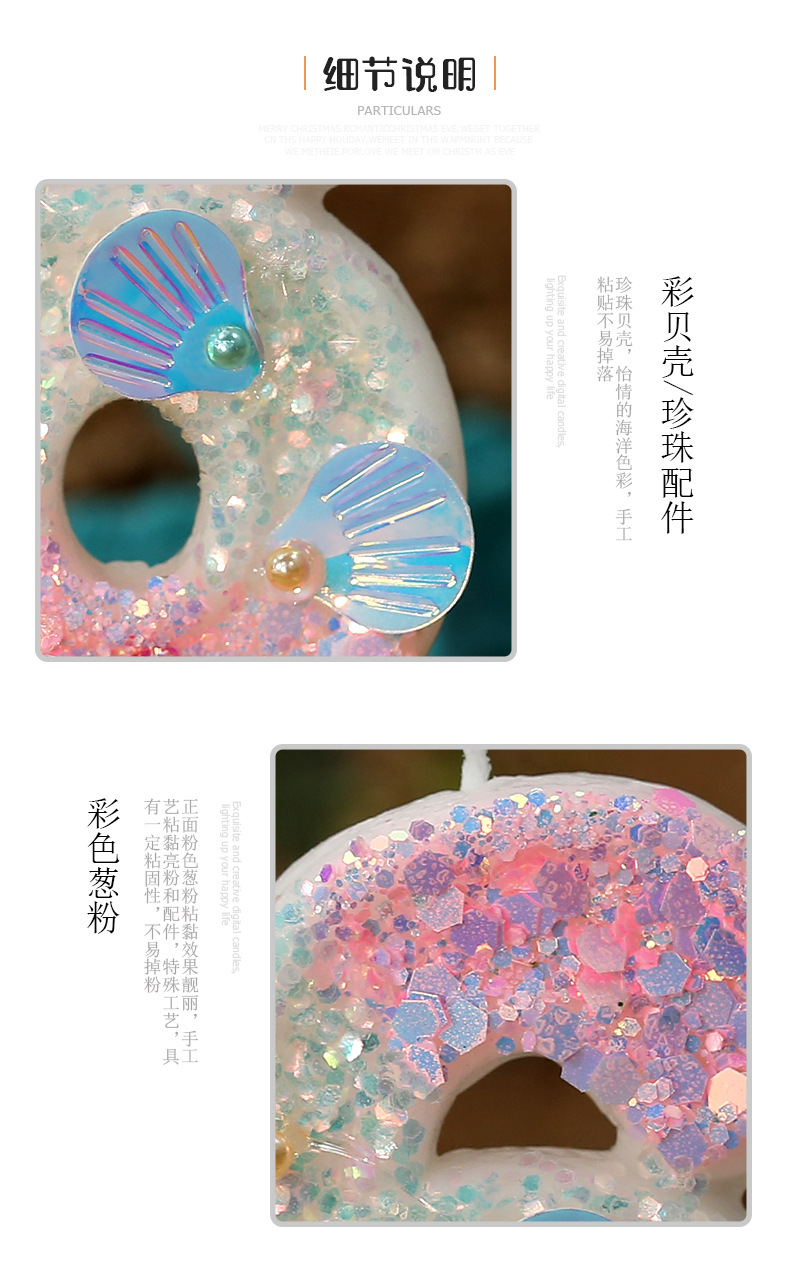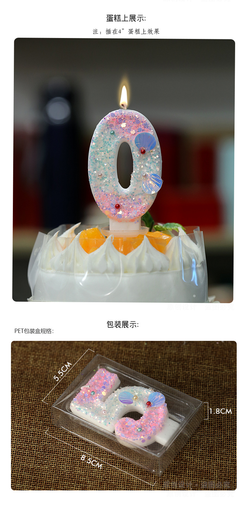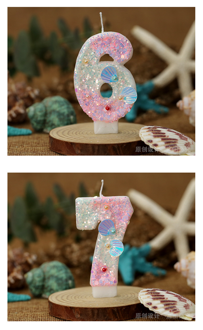 Vela numérica degradada rosa con perlas y conchas, creativa, para Amazon – Producto transfronterizo exclusivo