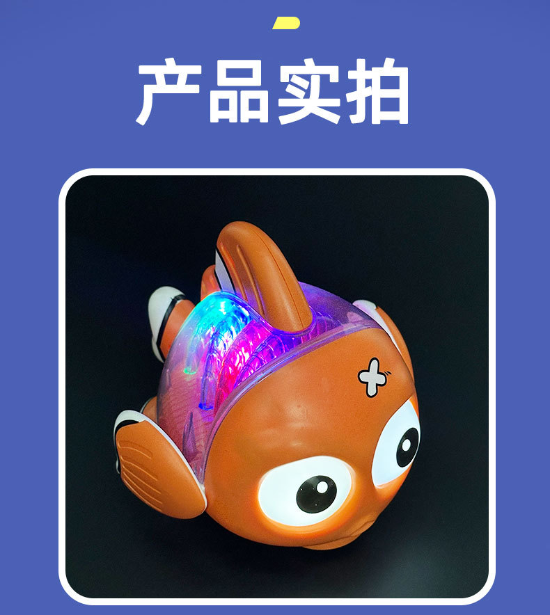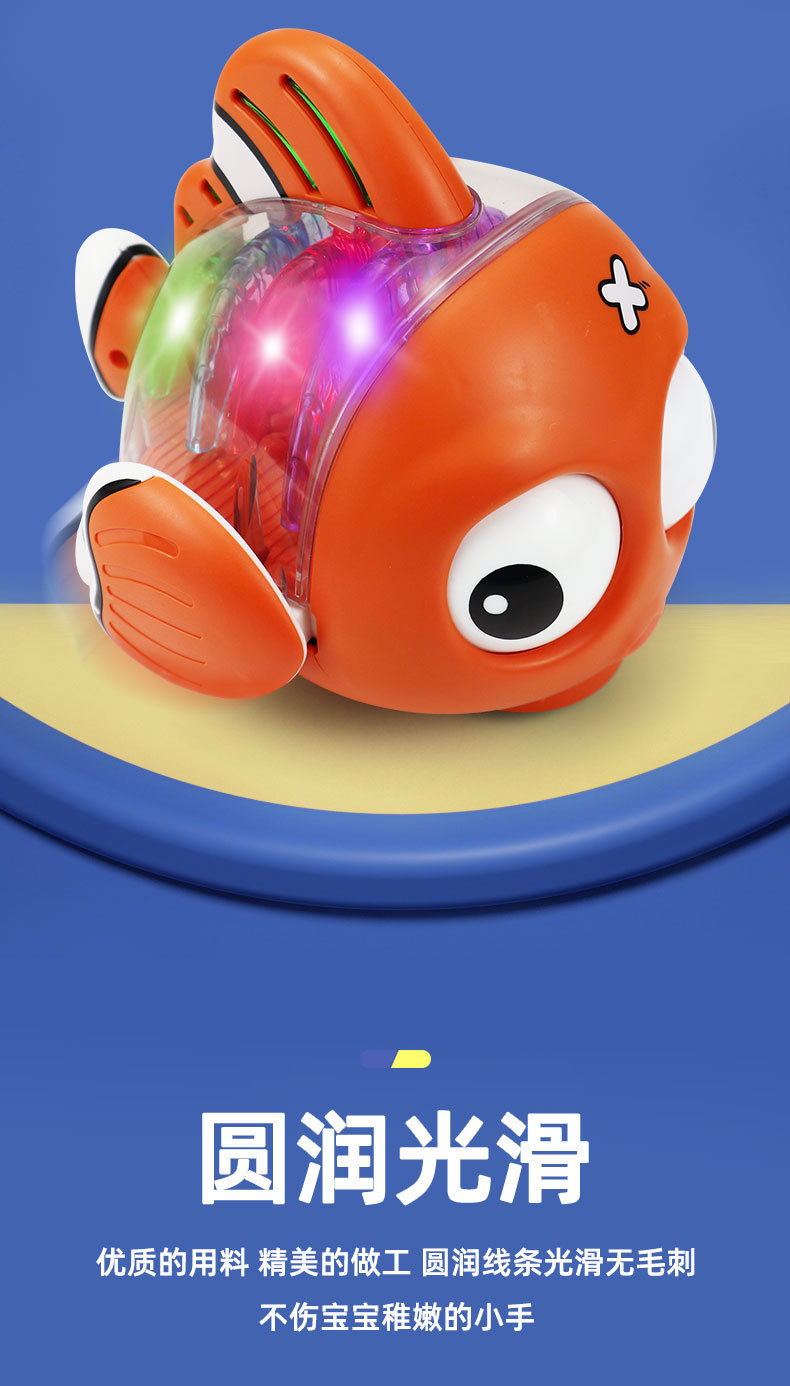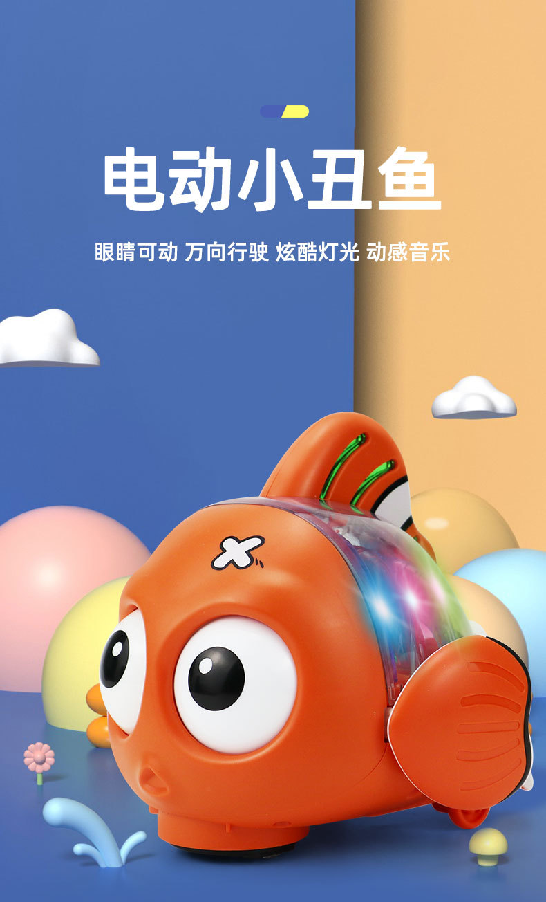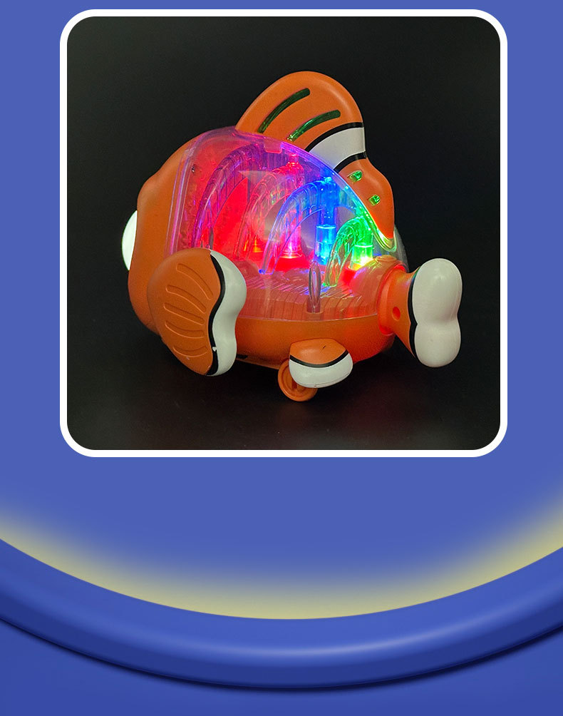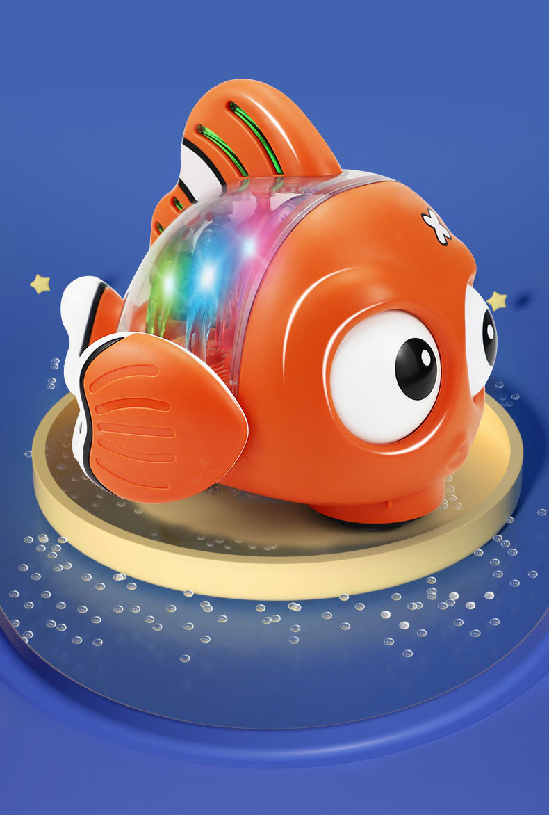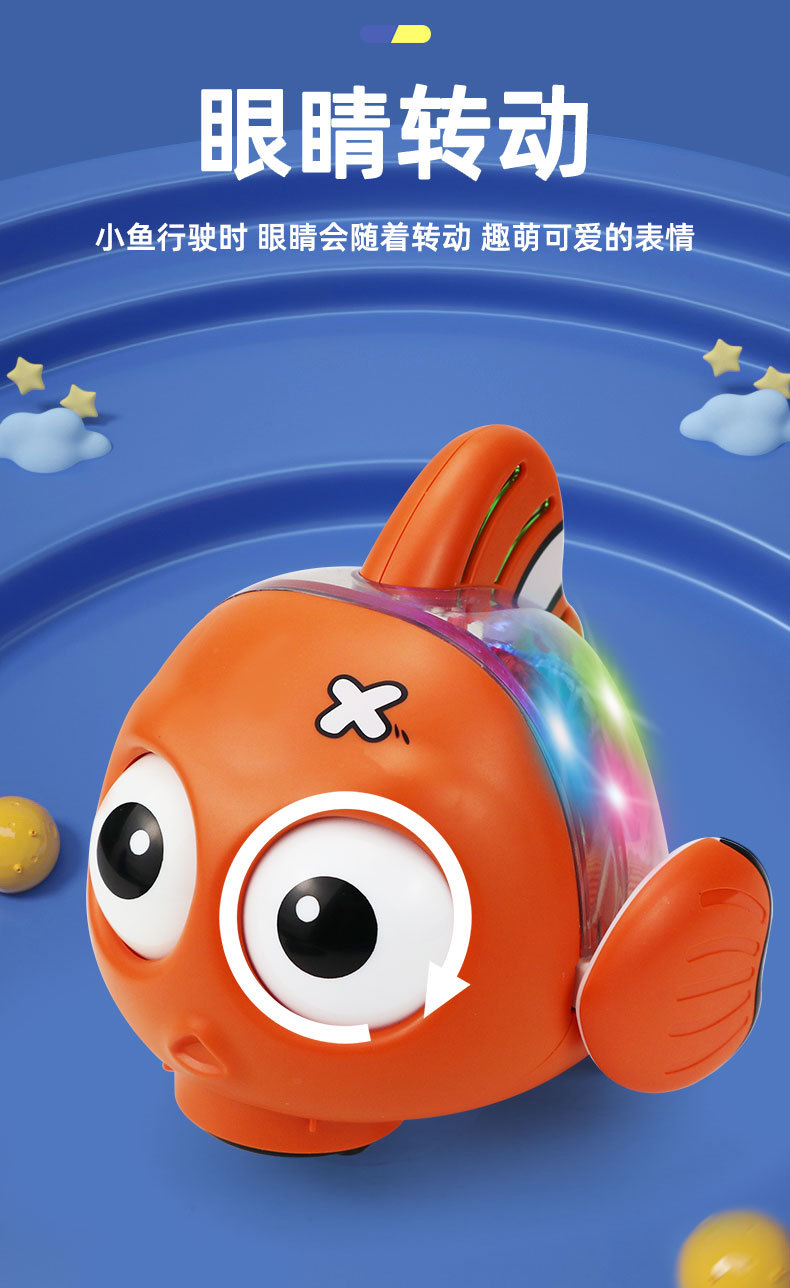 Nuevo estilo transfronterizo eléctrico universal transparente pez luz música ojos girando pez oscilante juguetes eléctricos para niños al por mayor