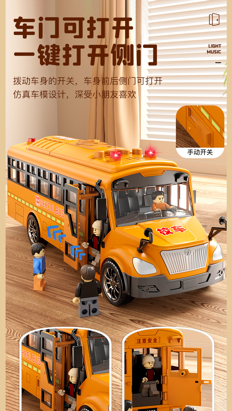 Autobús escolar para niños modelo de juguete autobús de simulación autobús escolar grande bebé niño inercia coche 2-3 años 4