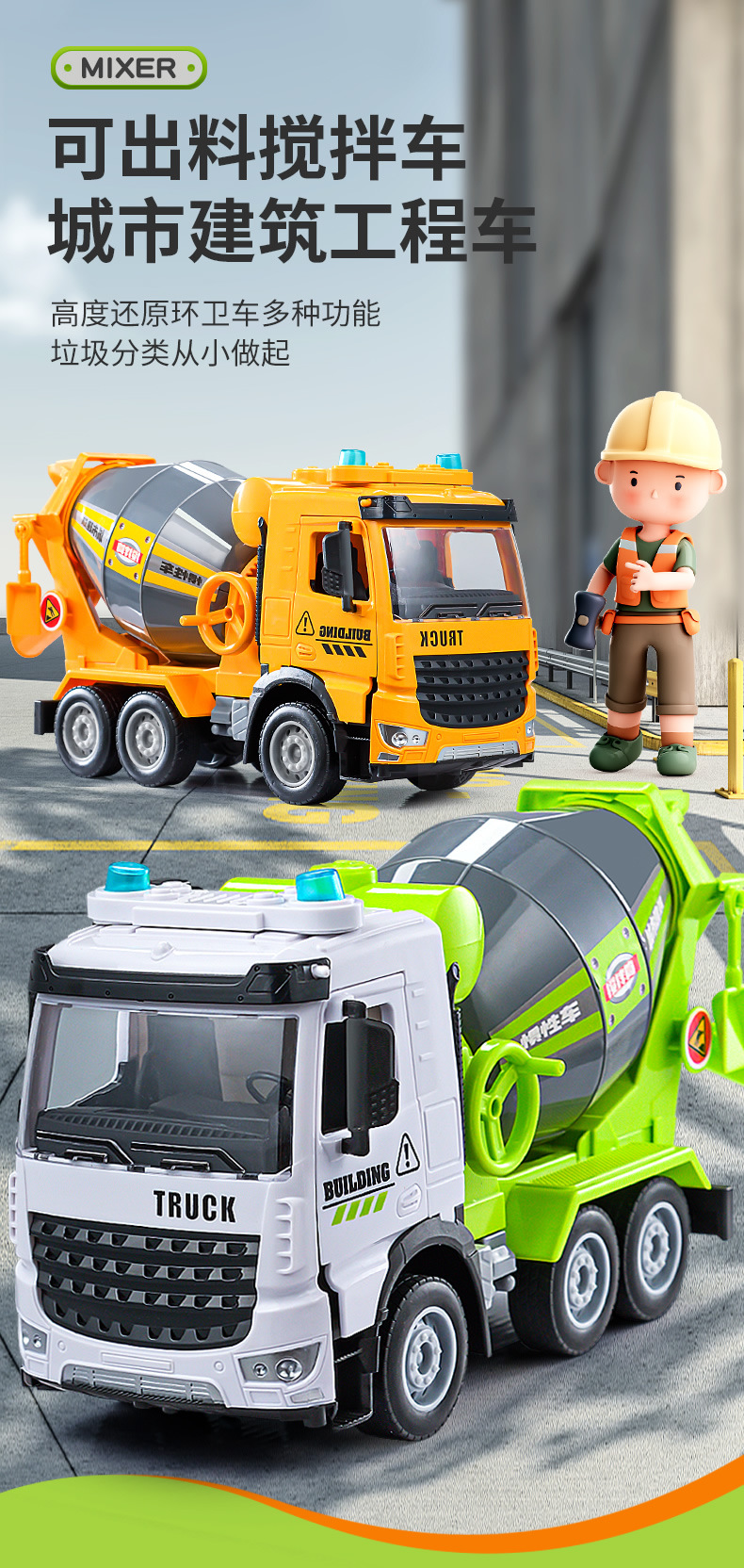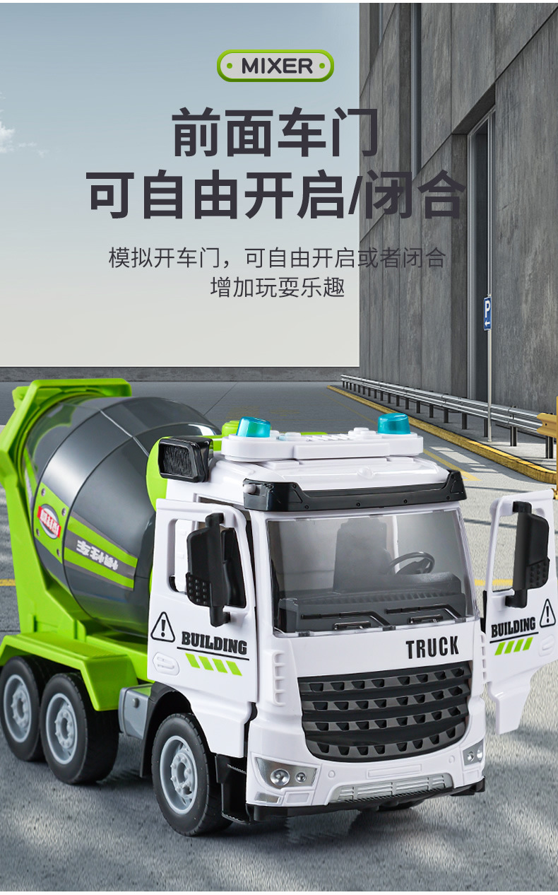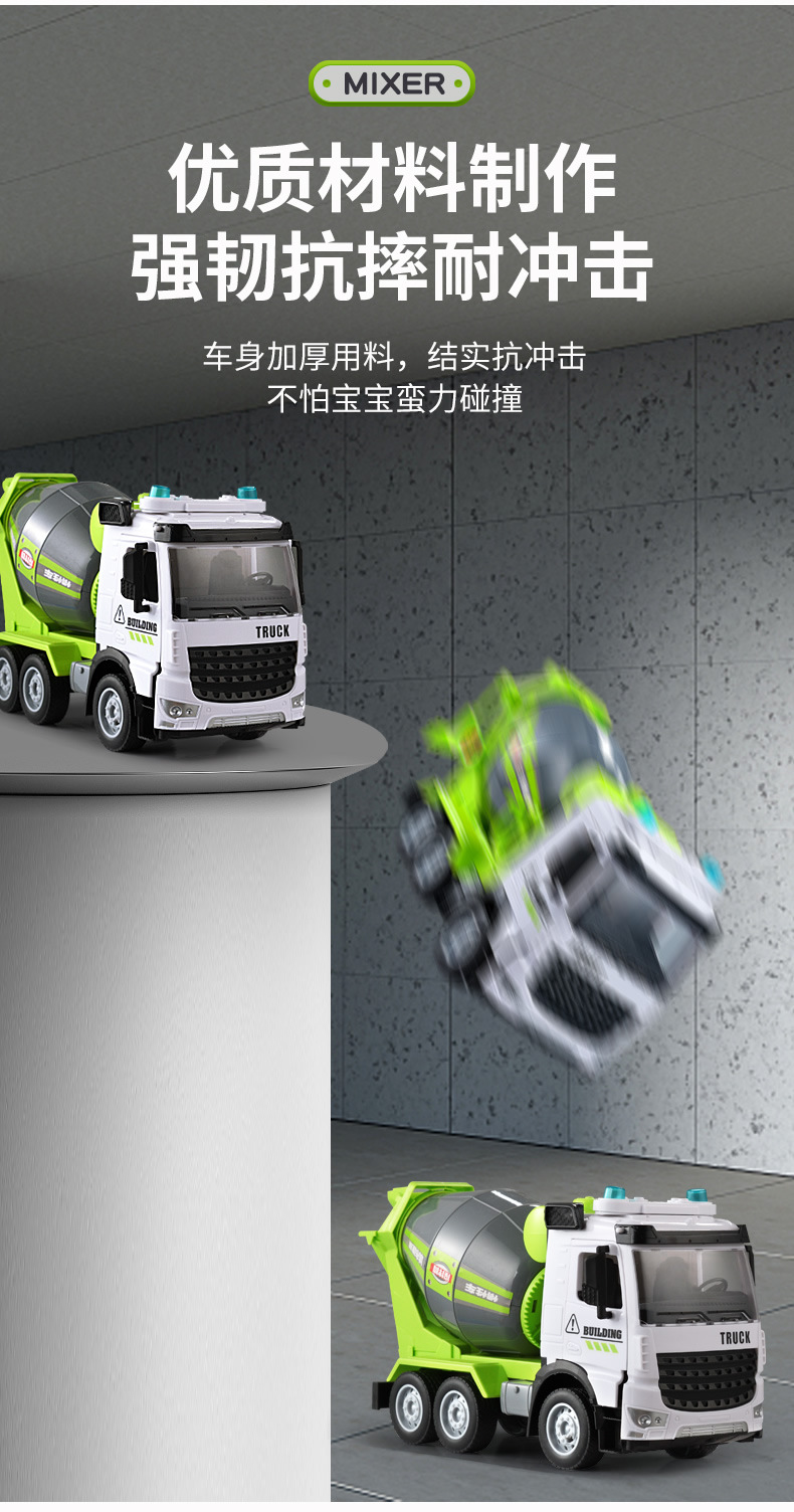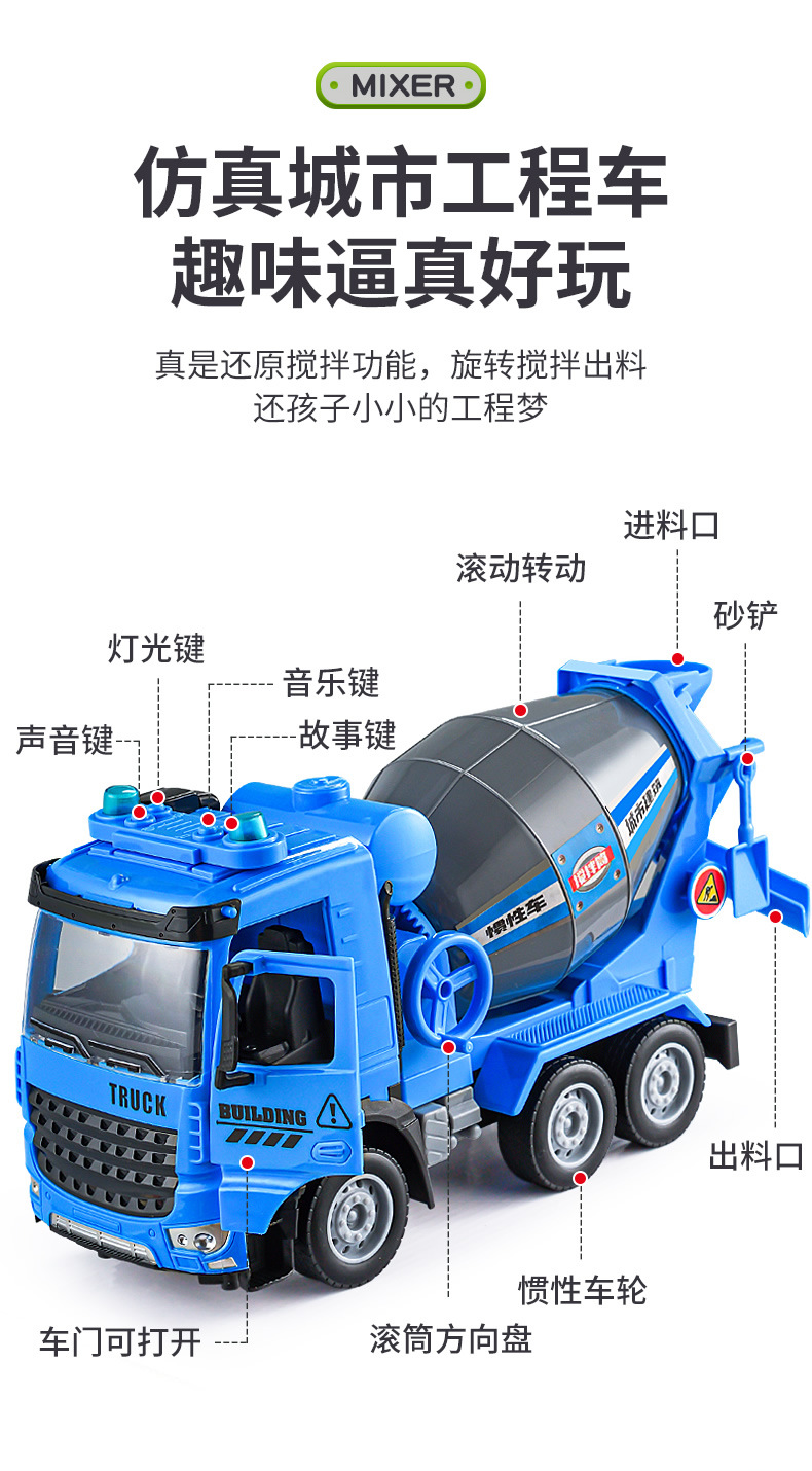 Simulación inercia ingeniería cemento vehículo mezcla descarga niño grande sonido y luz traje de hormigón coche de juguete al por mayor