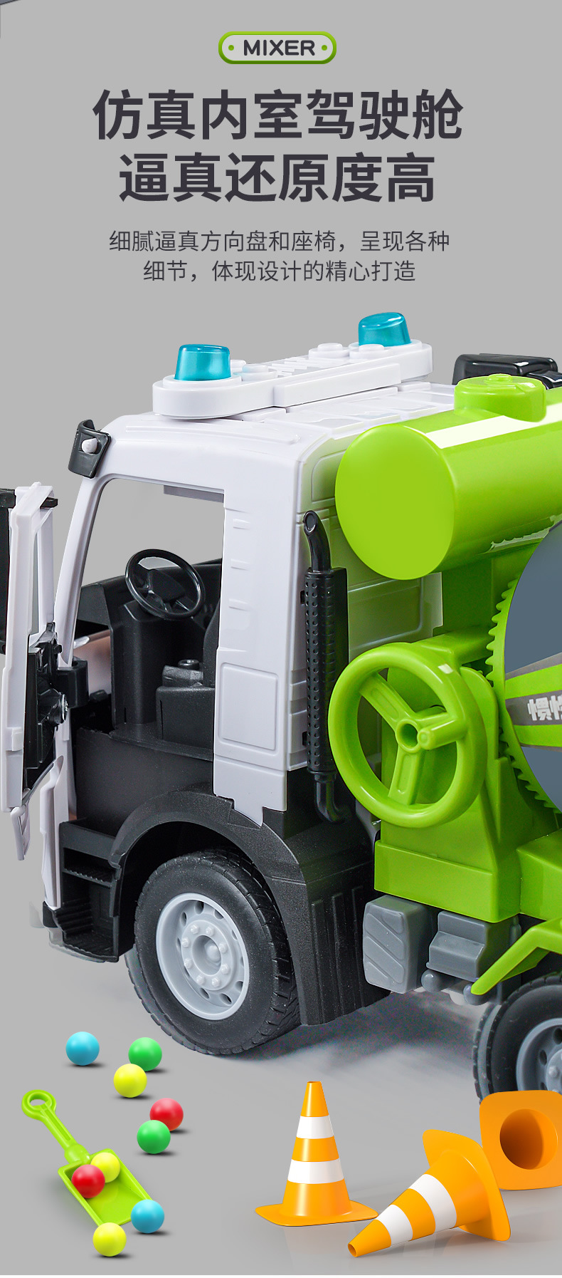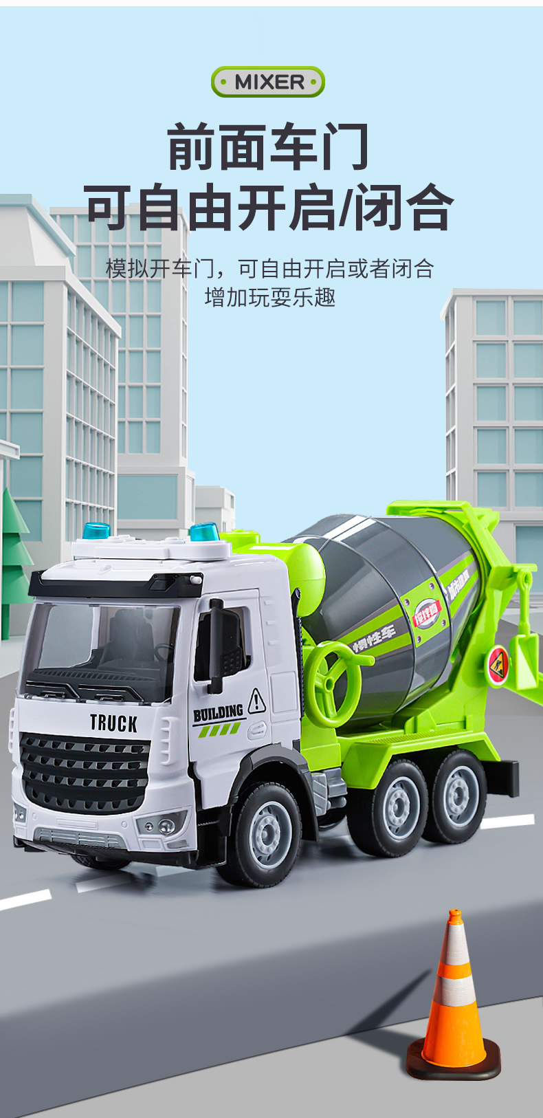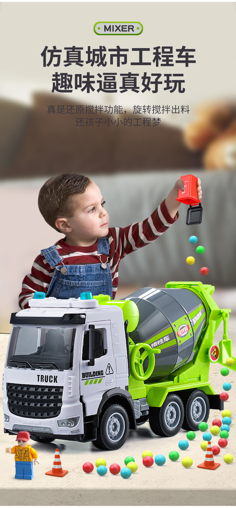 Simulación inercia ingeniería cemento vehículo mezcla descarga niño grande sonido y luz traje de hormigón coche de juguete al por mayor