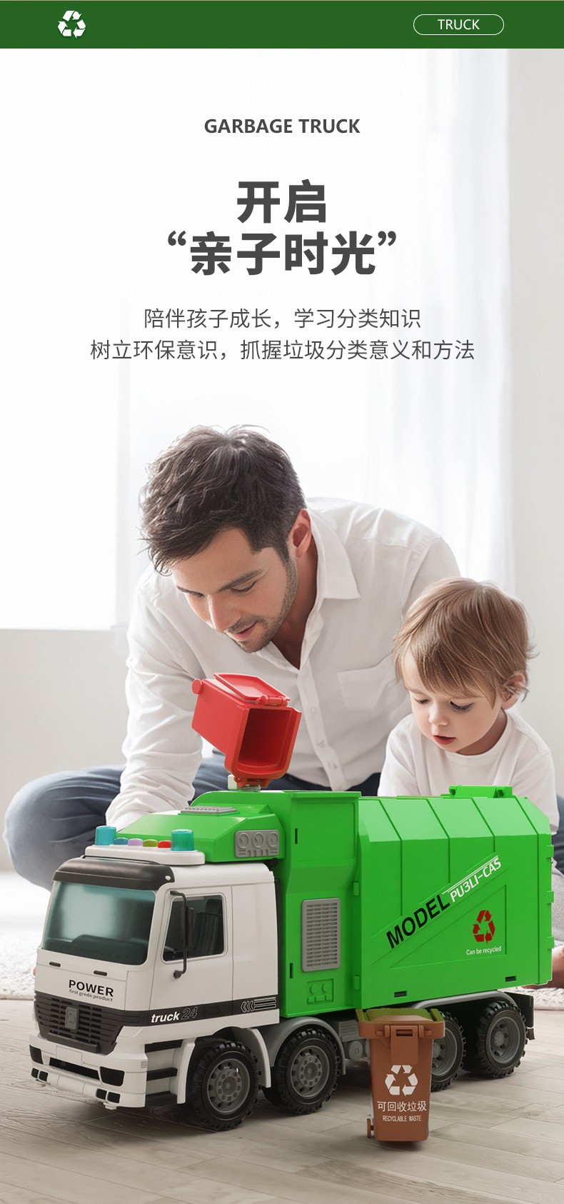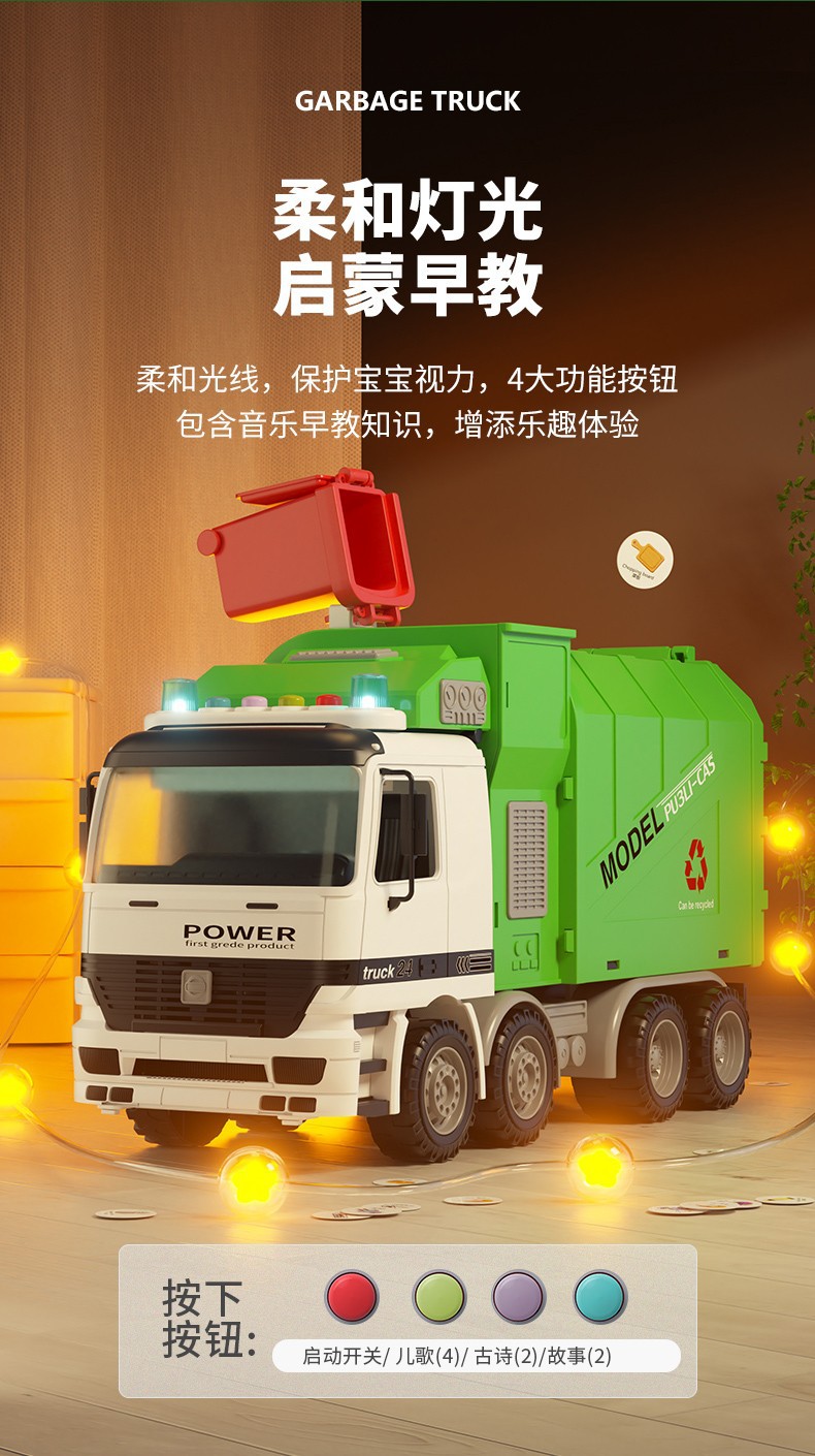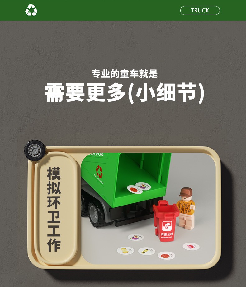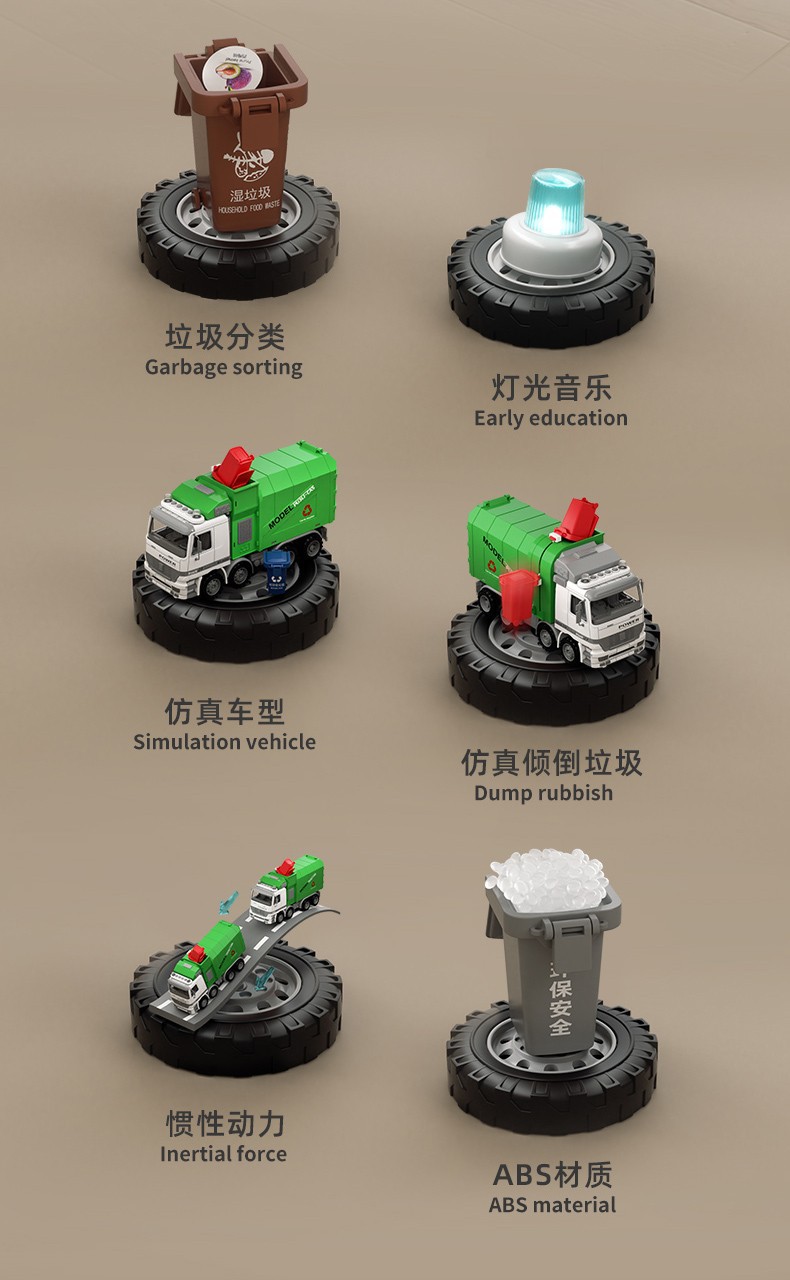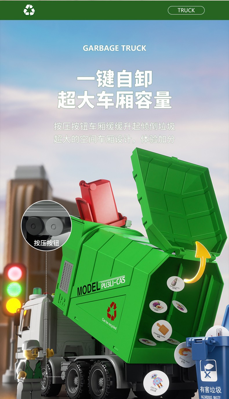 Camión de basura de gran tamaño para barrer el piso y limpiar el proyecto de vehículo de saneamiento de aleación urbana cubo de clasificación juguete niño niño 3 años 4