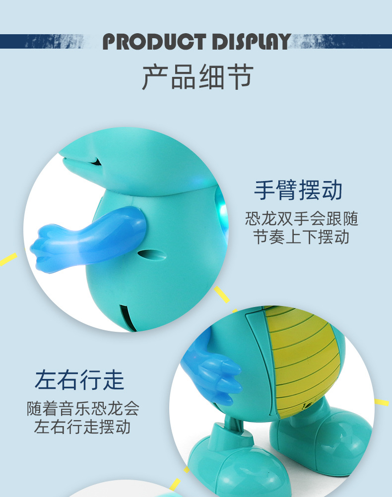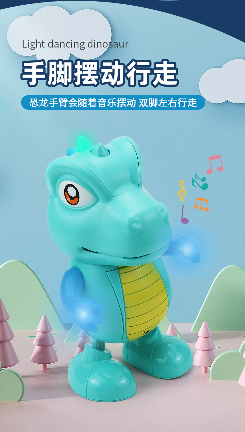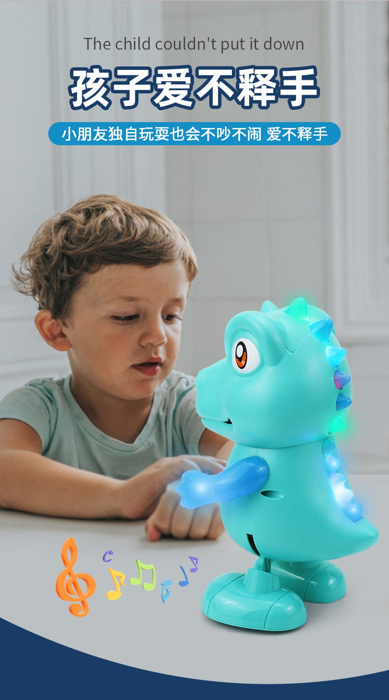 Juguetes eléctricos transfronterizos para niños coloridos música ligera bailando dinosaurio modelo de dibujos animados muñeca juguetes al por mayor