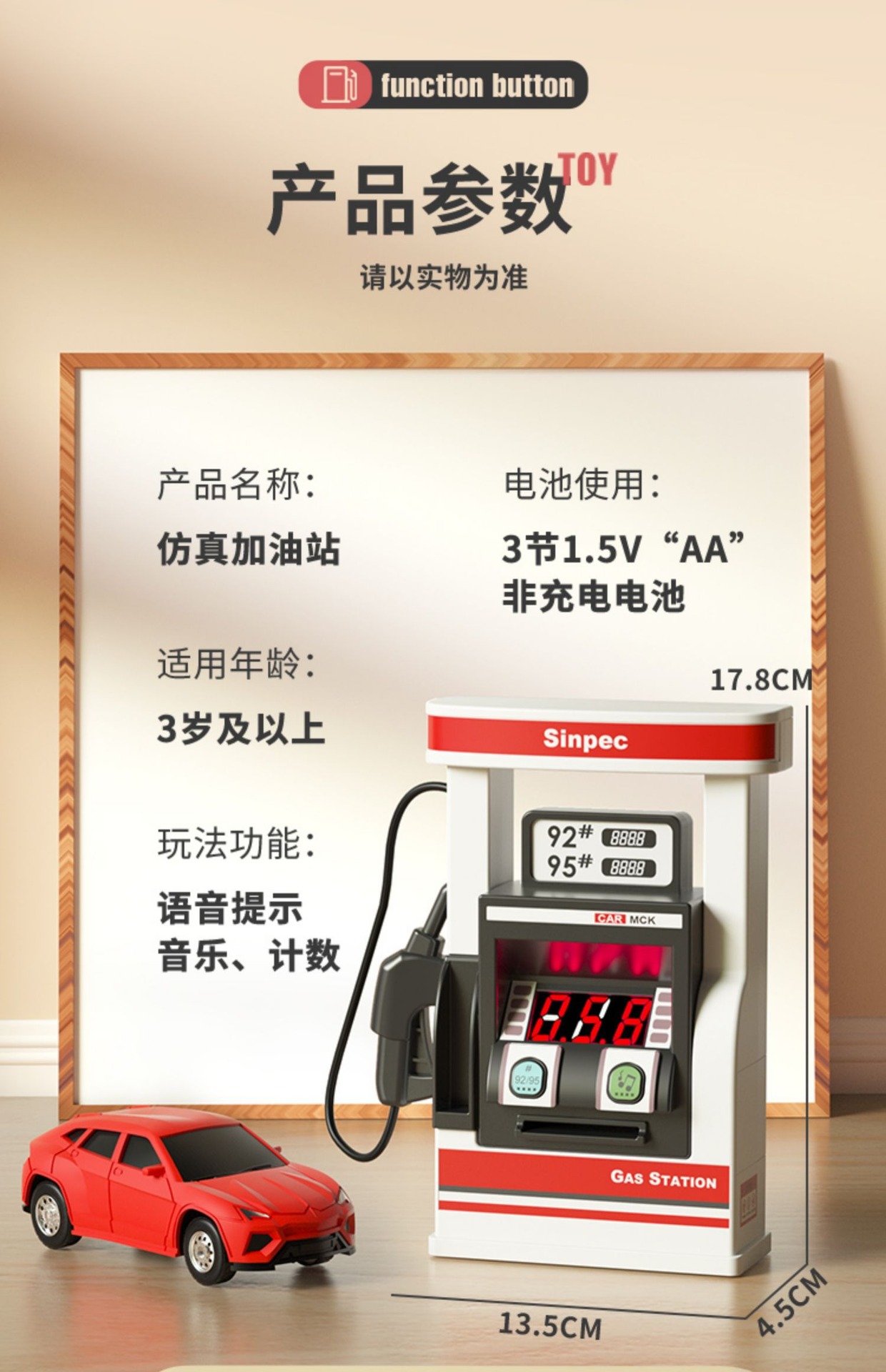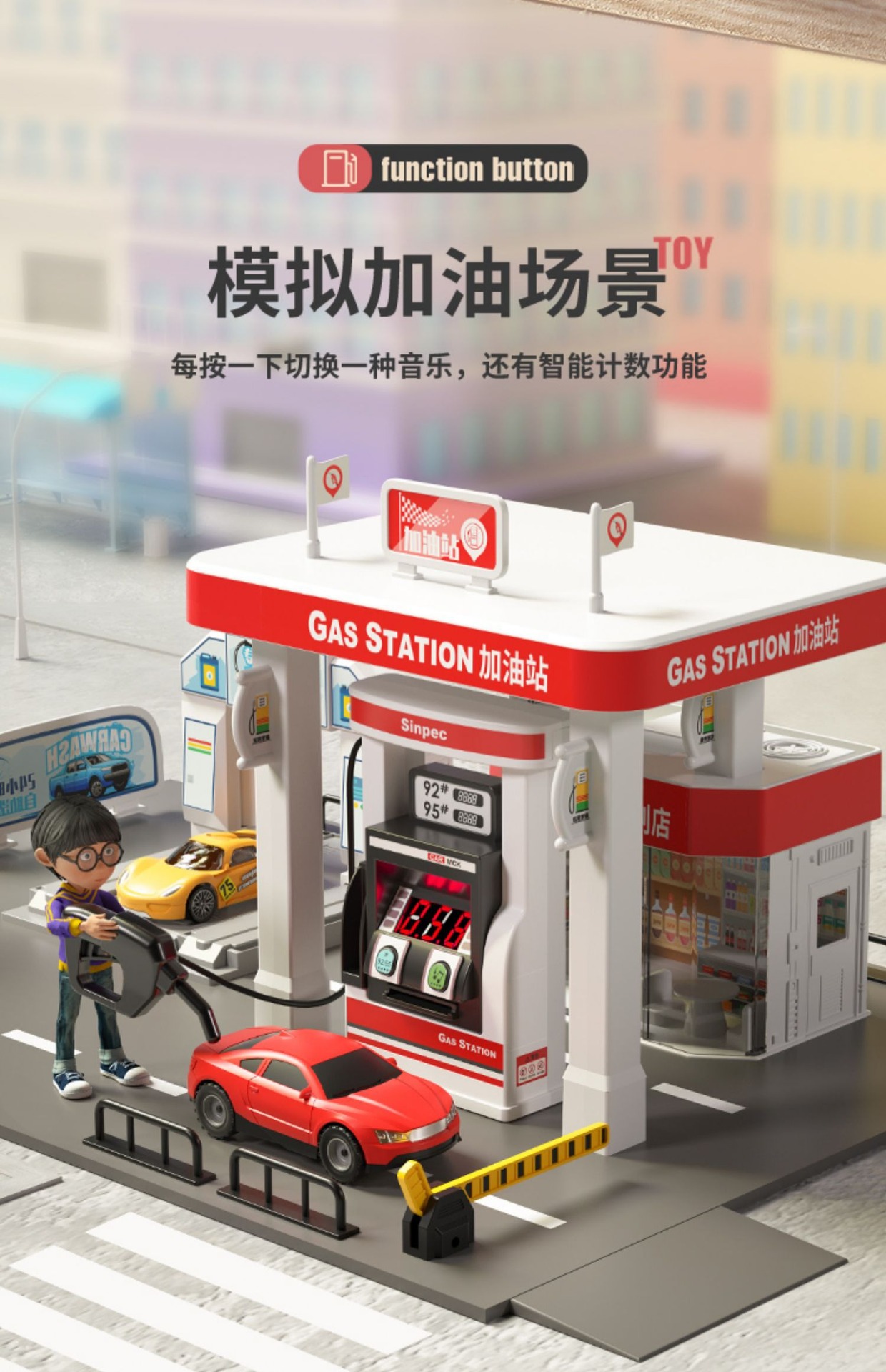 Estación de gas para niños modelo de juguete simulación coche Niño 3 años 6 bebé rompecabezas jugar casa juguete cisterna