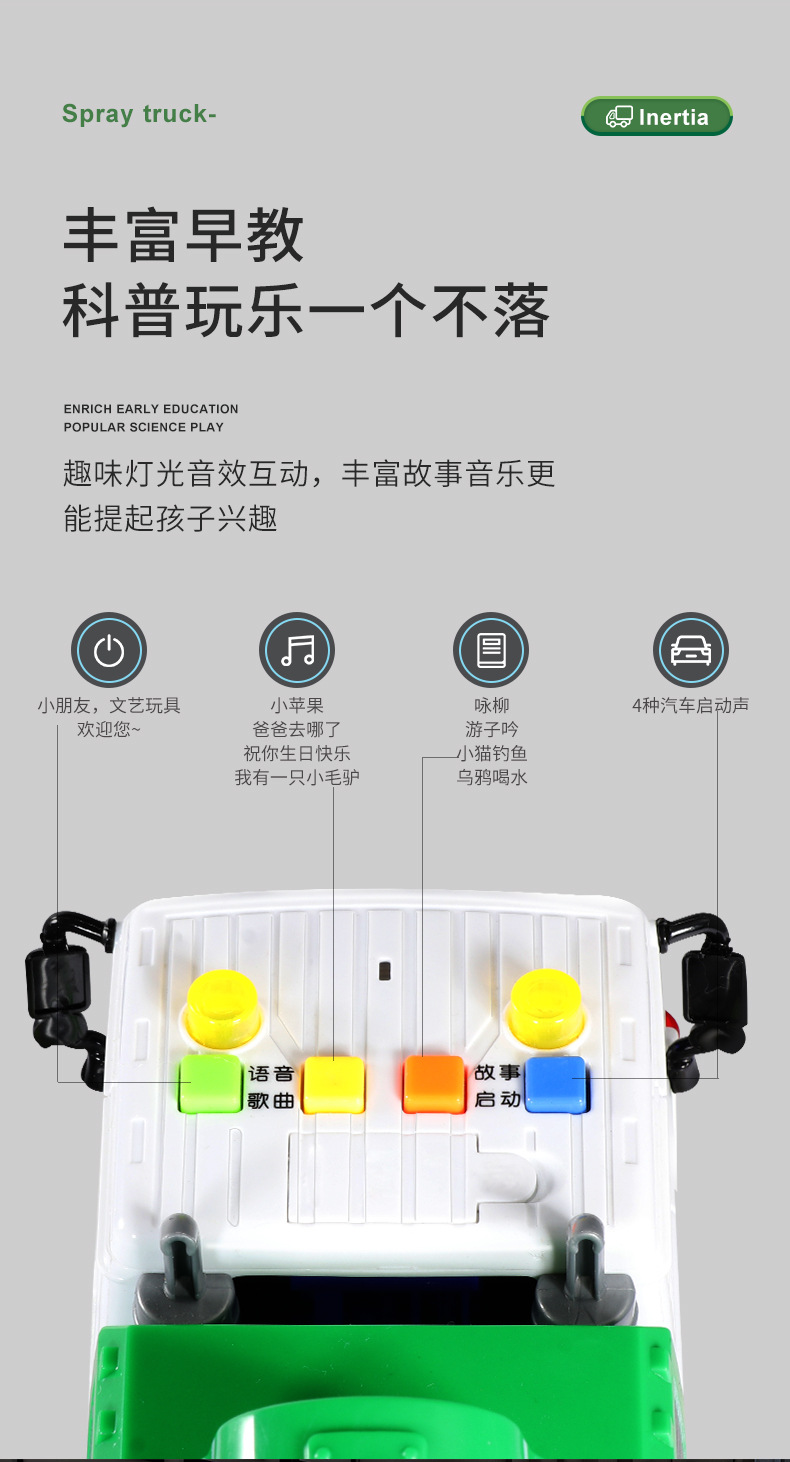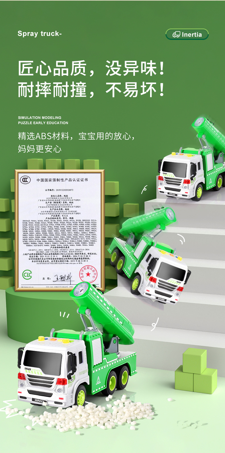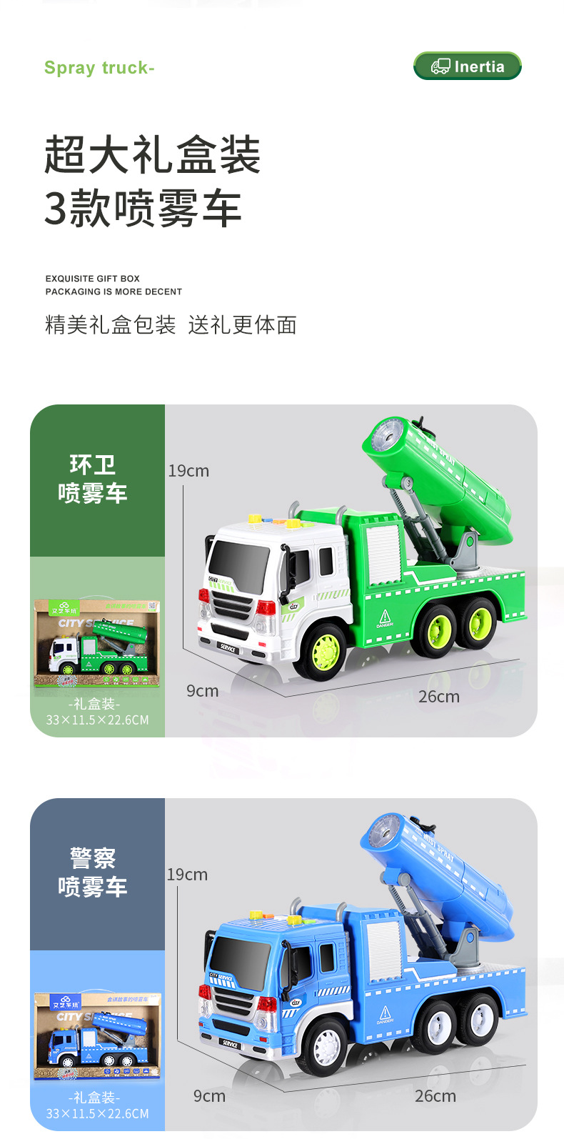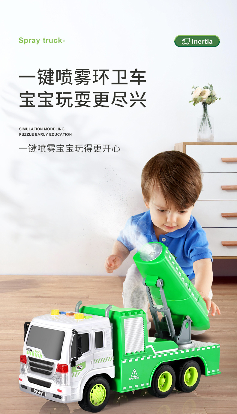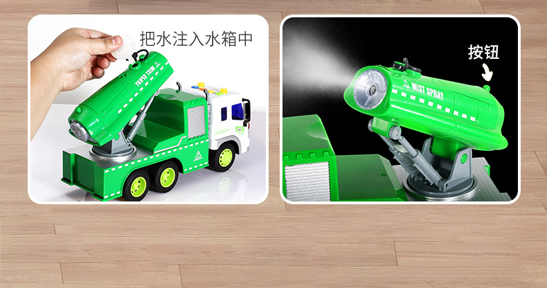 Simulación artística spray de polvo coche rociador de agua rociador de juguete saneamiento coche modelo de coche para niños niño de 3 años de edad 4