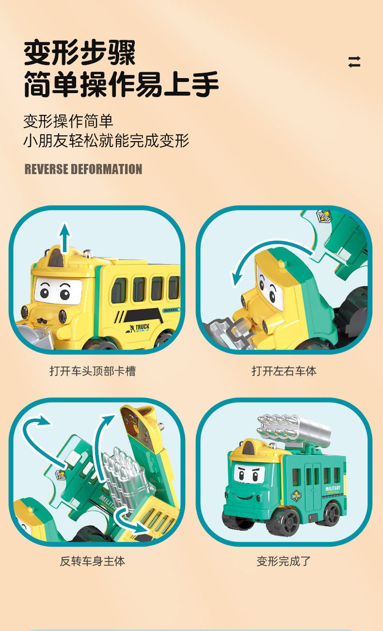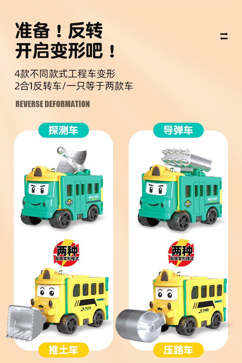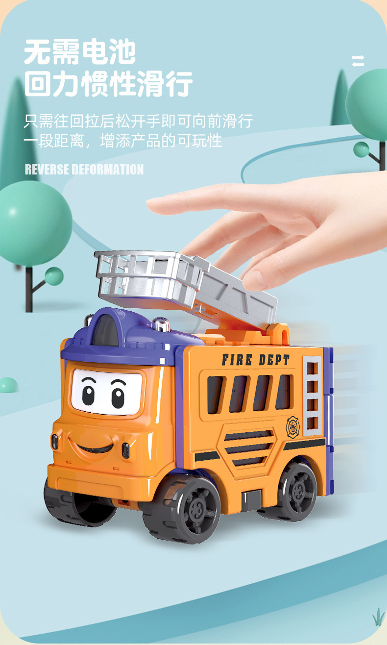 Variedad autobús escolar para niños deformación inversa coche Flip deformación ingeniería coche juguete tirar hacia atrás coche camión de bomberos chico