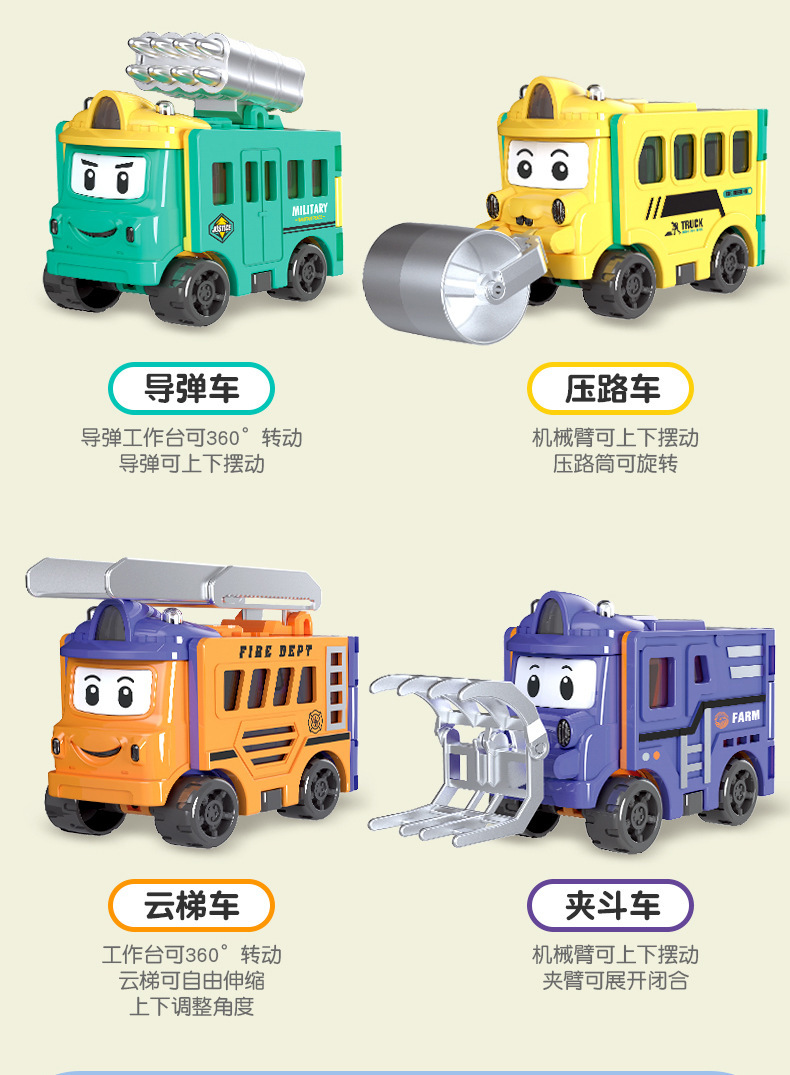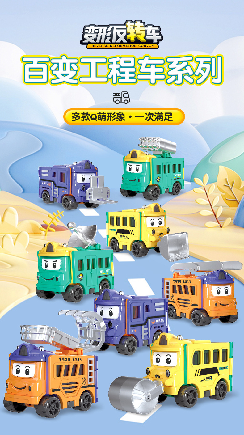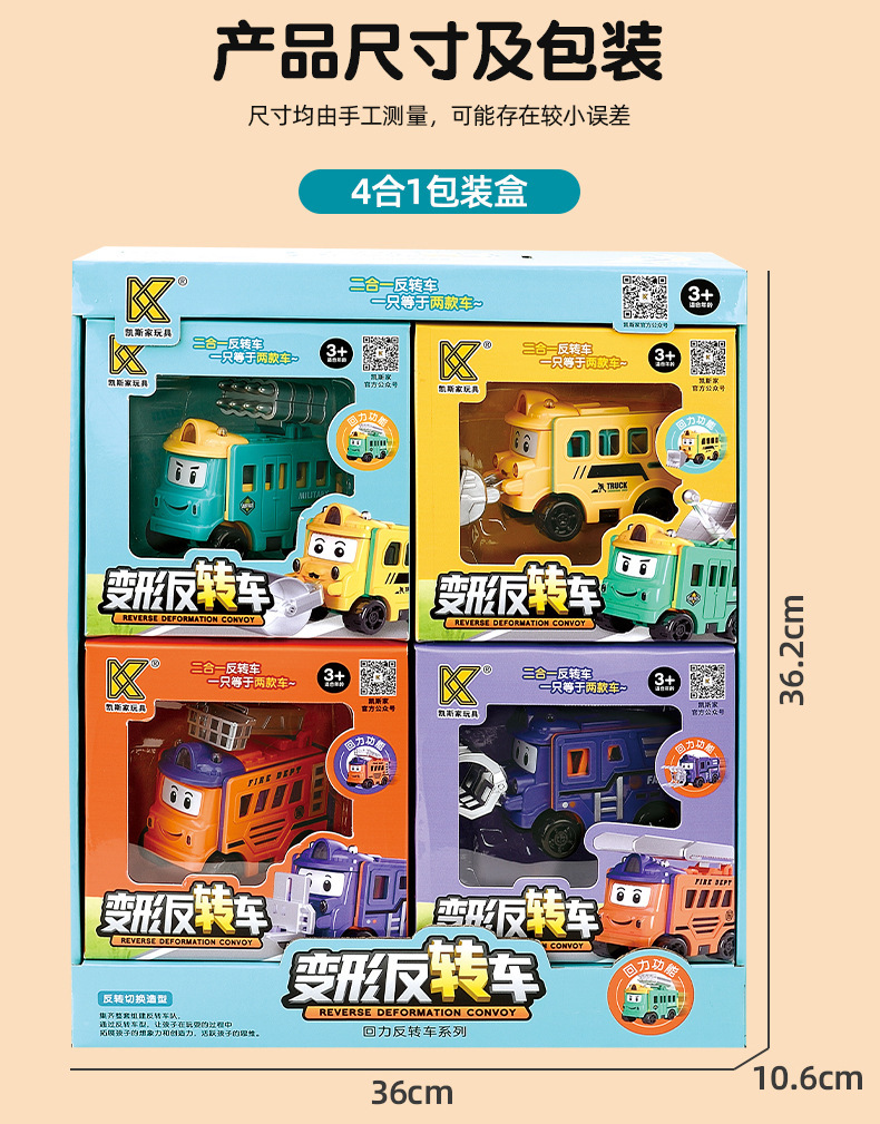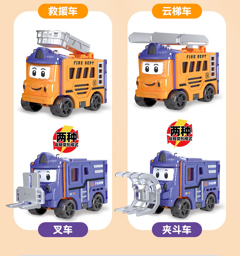 Variedad autobús escolar para niños deformación inversa coche Flip deformación ingeniería coche juguete tirar hacia atrás coche camión de bomberos chico