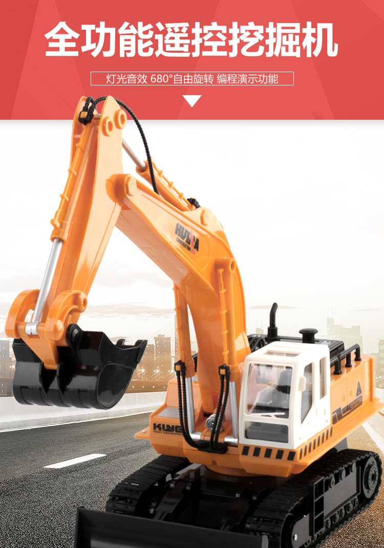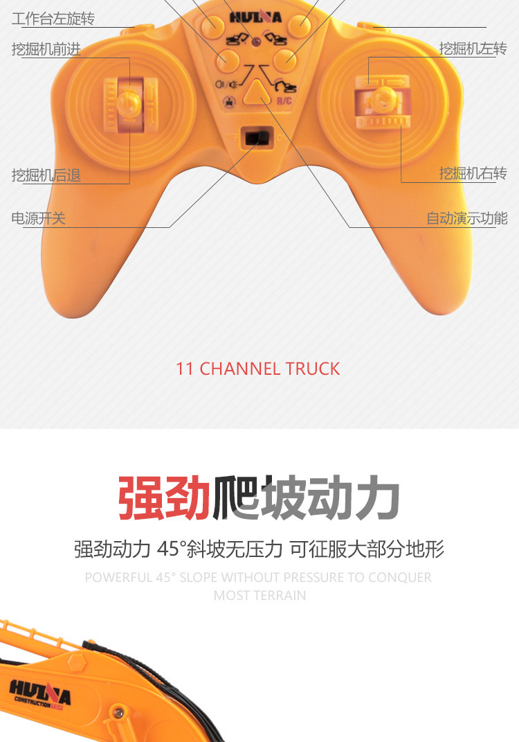 Huina 310 excavadora 11 canales de control remoto excavadora de juguete eléctrico vehículo de ingeniería de control remoto para niños