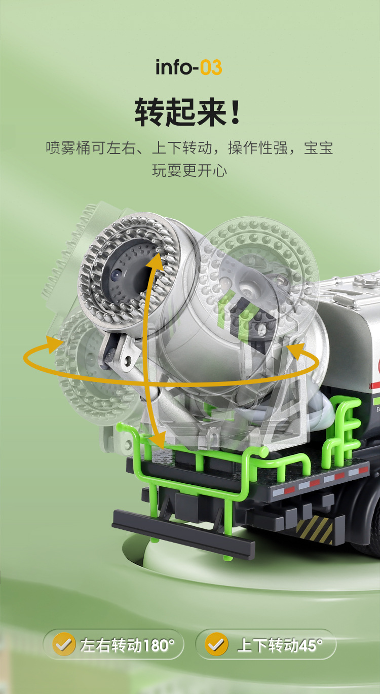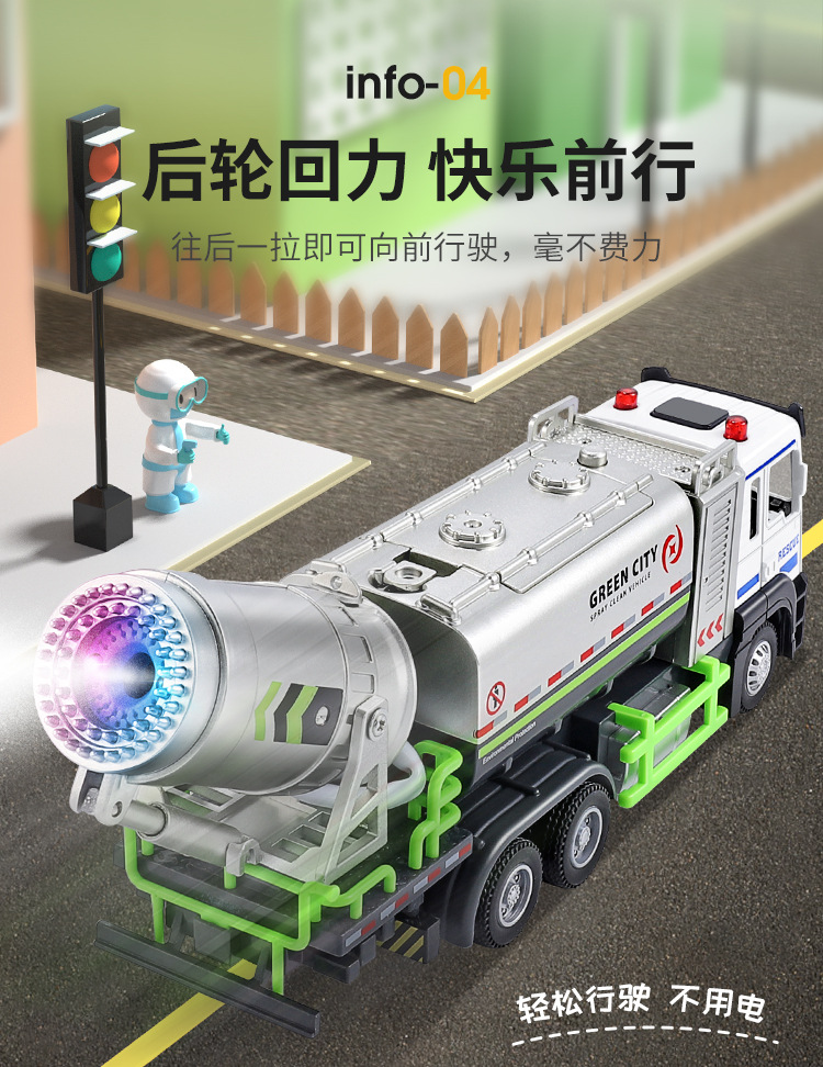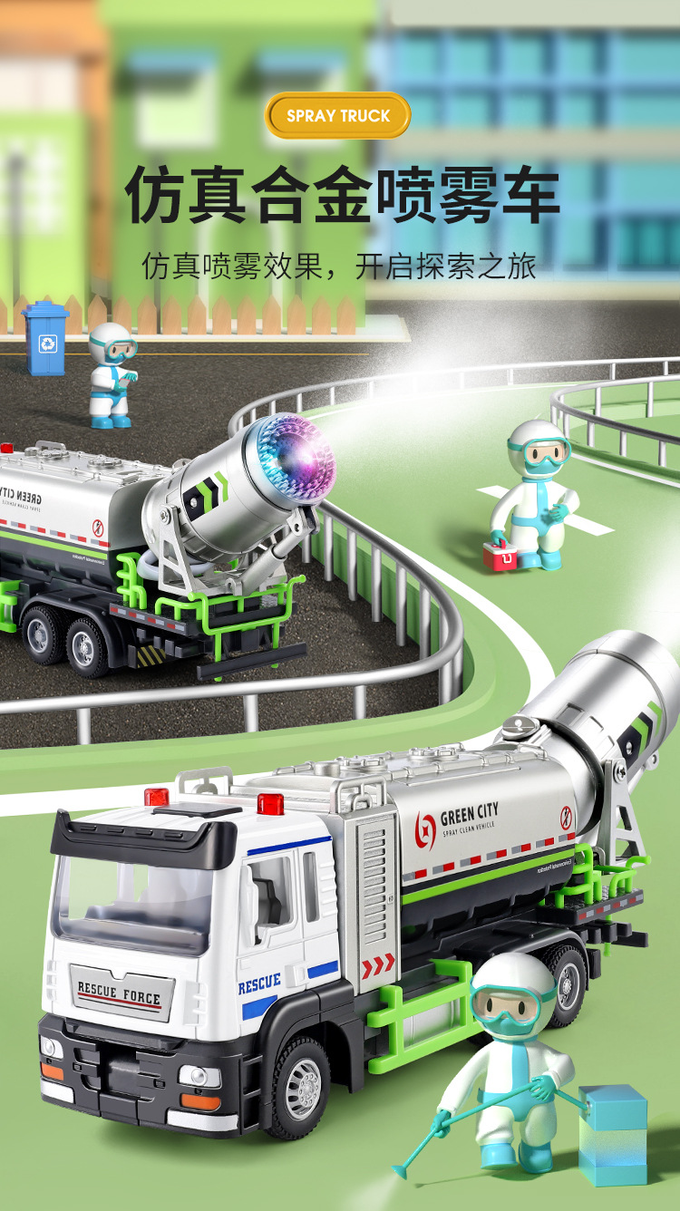 Rociador de coche de aleación para niños vehículo de ingeniería de juguete a prueba de polvo y a prueba de epidemias pistola de niebla modelo de coche de juguete Niño
