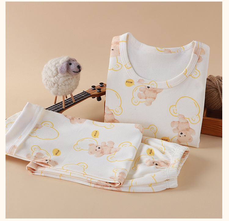 Nueva ropa infantil para el hogar sin huesos pijamas de manga larga primavera y otoño ropa de aire acondicionado de niñas algodón hombre
