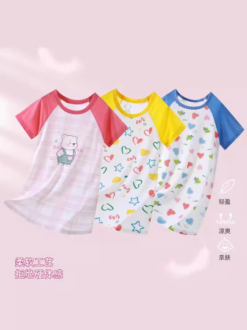 Pijama infantil pijama de niñas 3 - 6 años de edad ropa para el hogar verano delgado transpirable mangas cortas hielo bebé dormir lleno