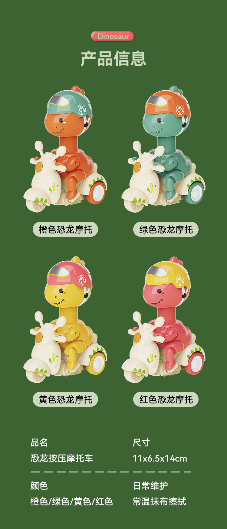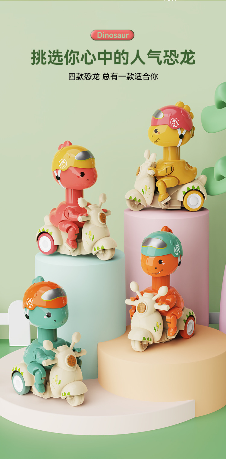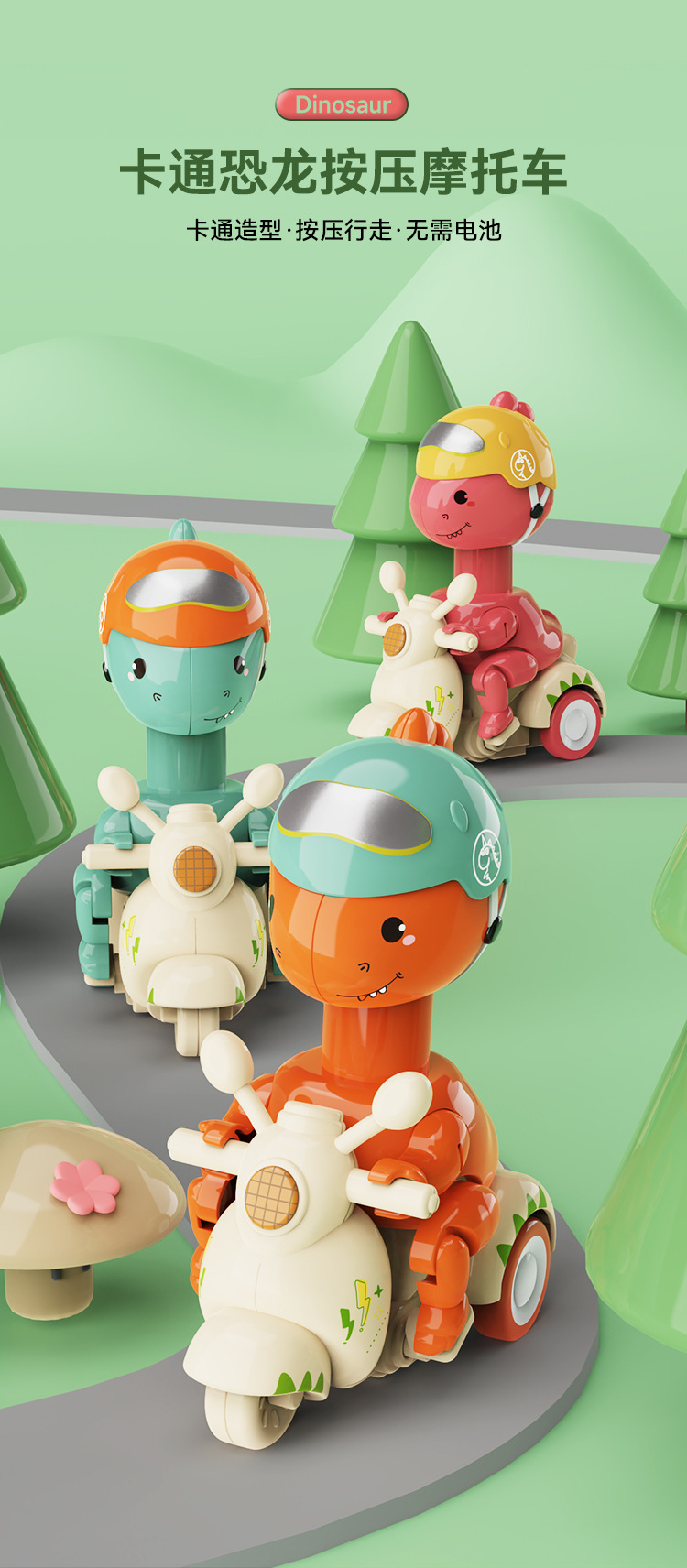 Dinosaurio de dibujos animados para niños compresión de motocicleta inercia retroceso deslizamiento infantil puzzle coche de juguetes de educación temprana coche lindo