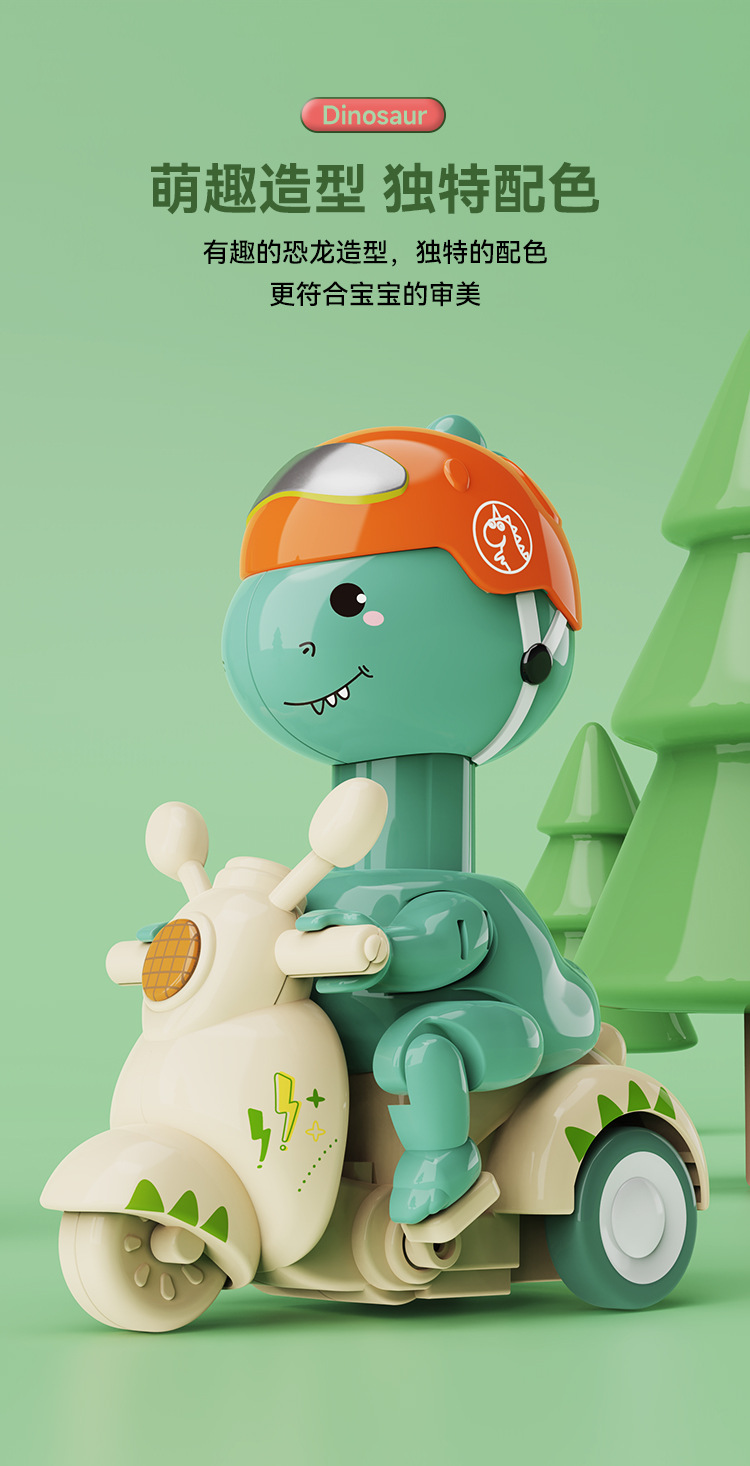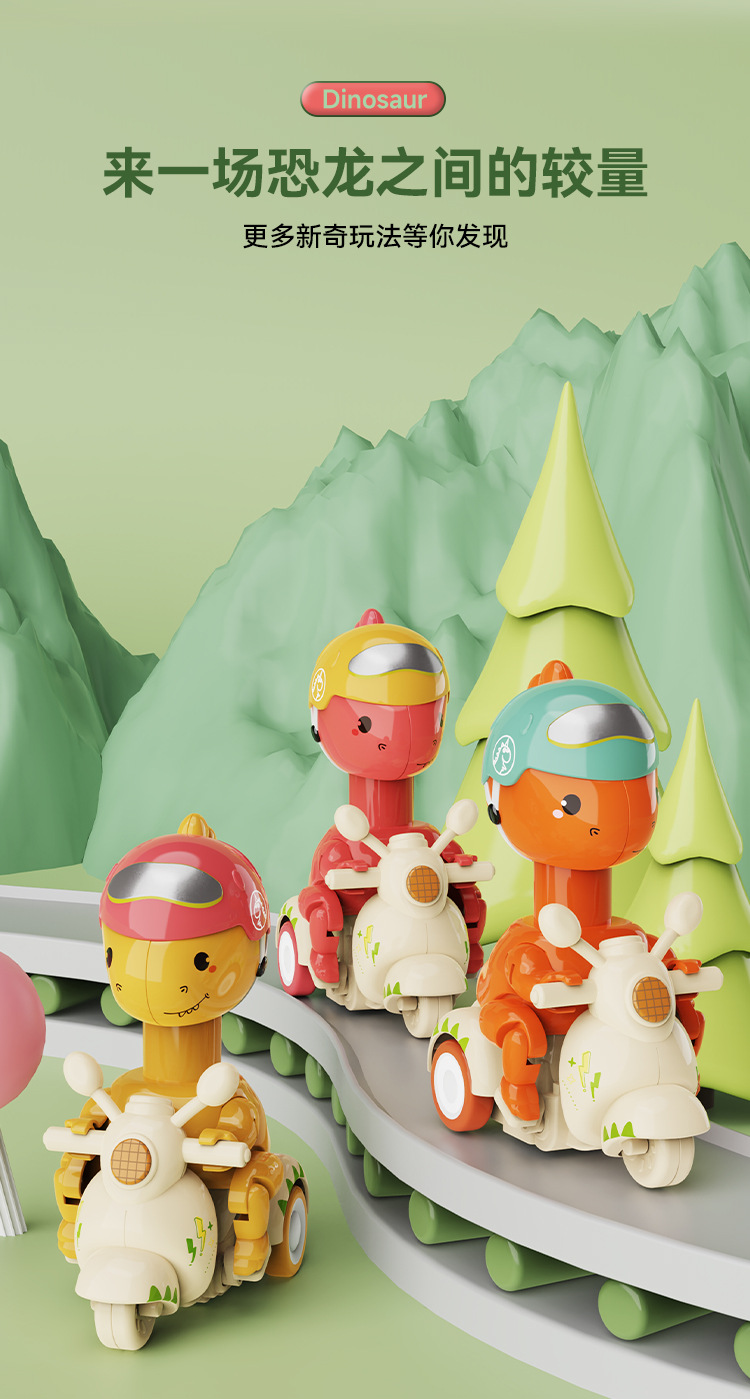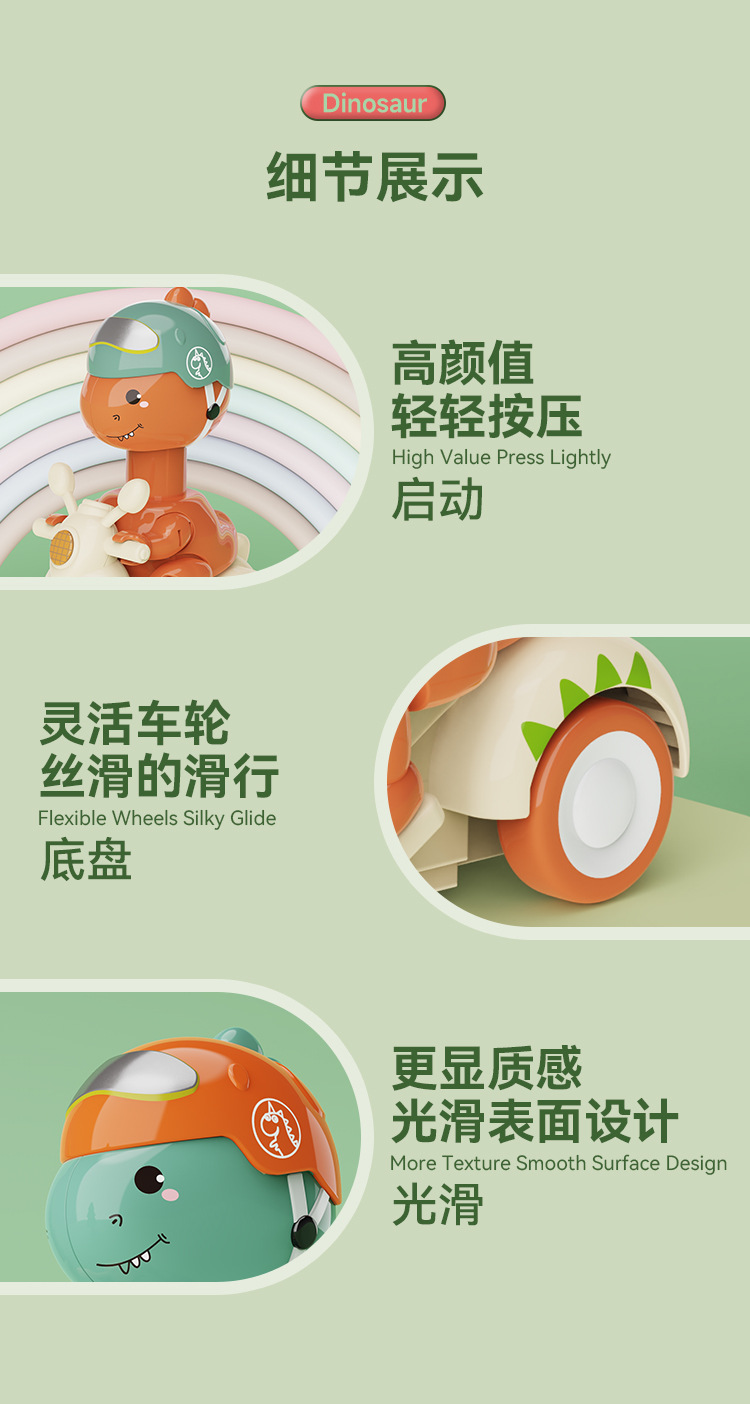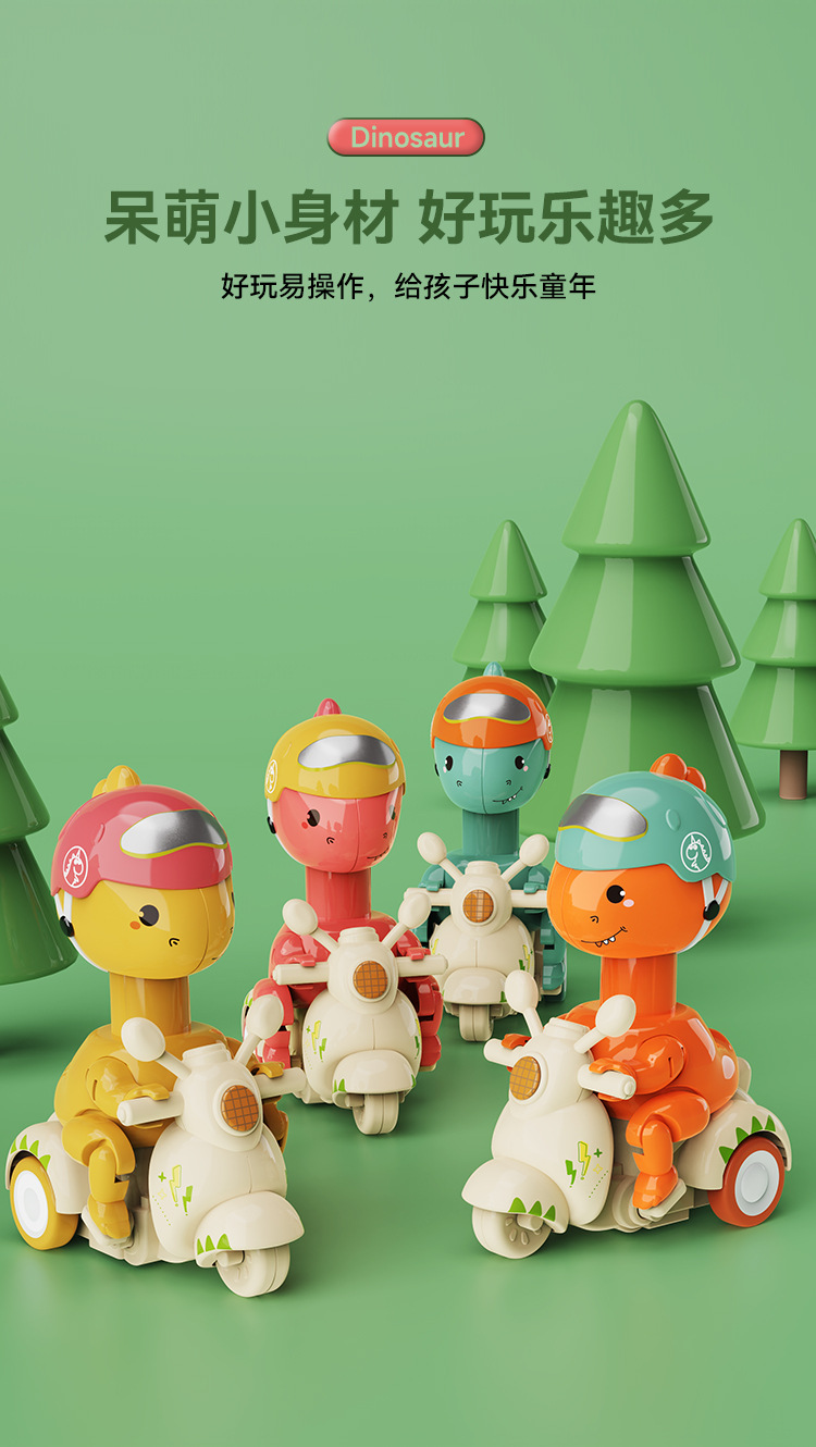 Dinosaurio de dibujos animados para niños compresión de motocicleta inercia retroceso deslizamiento infantil puzzle coche de juguetes de educación temprana coche lindo