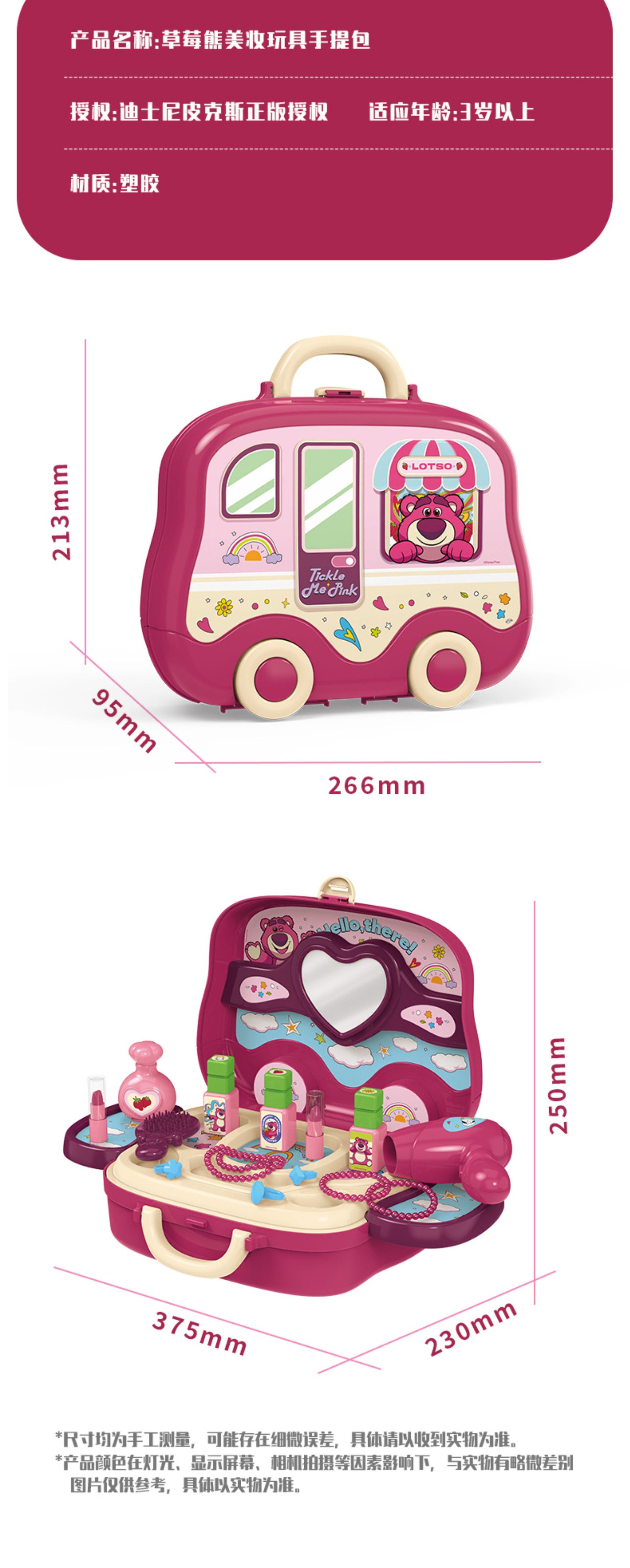 | Colores | Mochila de maquillaje Disney Strawberry Bear: LT020A,Maleta de belleza Strawberry Bear: LT720A |
