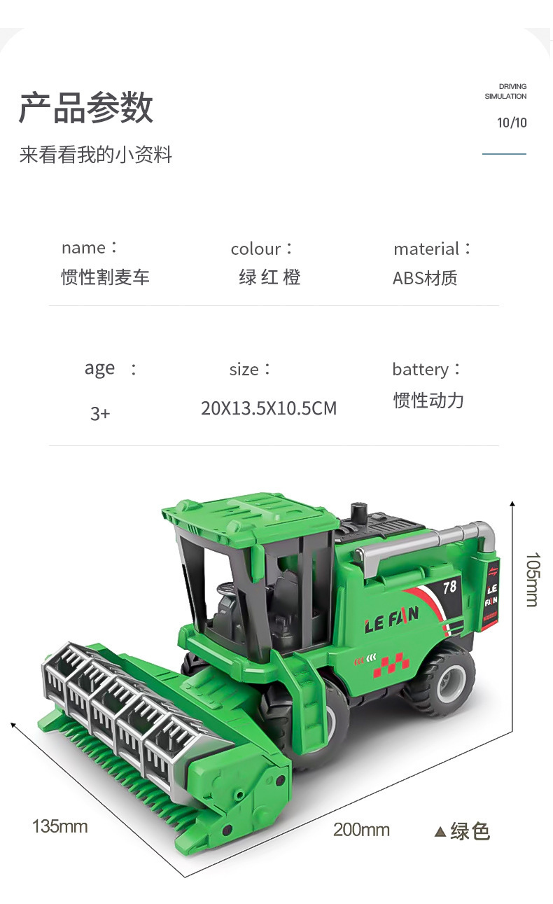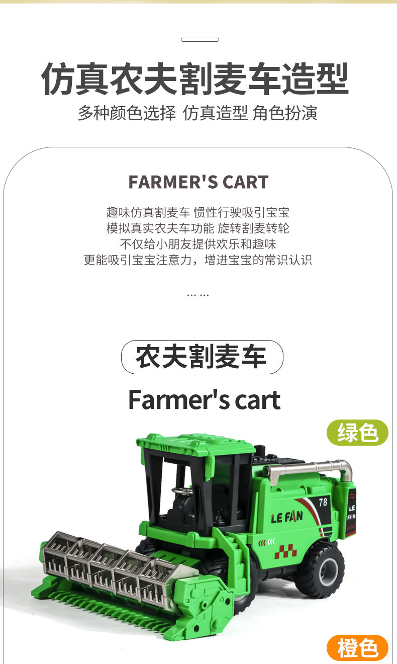 Gran granjero cosechadora de ingeniería tractor inercia coche de transporte infantil modelo de juguete coche niño rueda giratoria