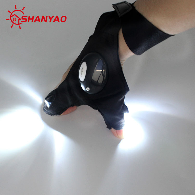 Guantes de medio dedo de pesca luminosos LED, iluminación de reparación de automóviles, luces de dedos, luces de deportes al aire libre, guantes de pesca nocturna