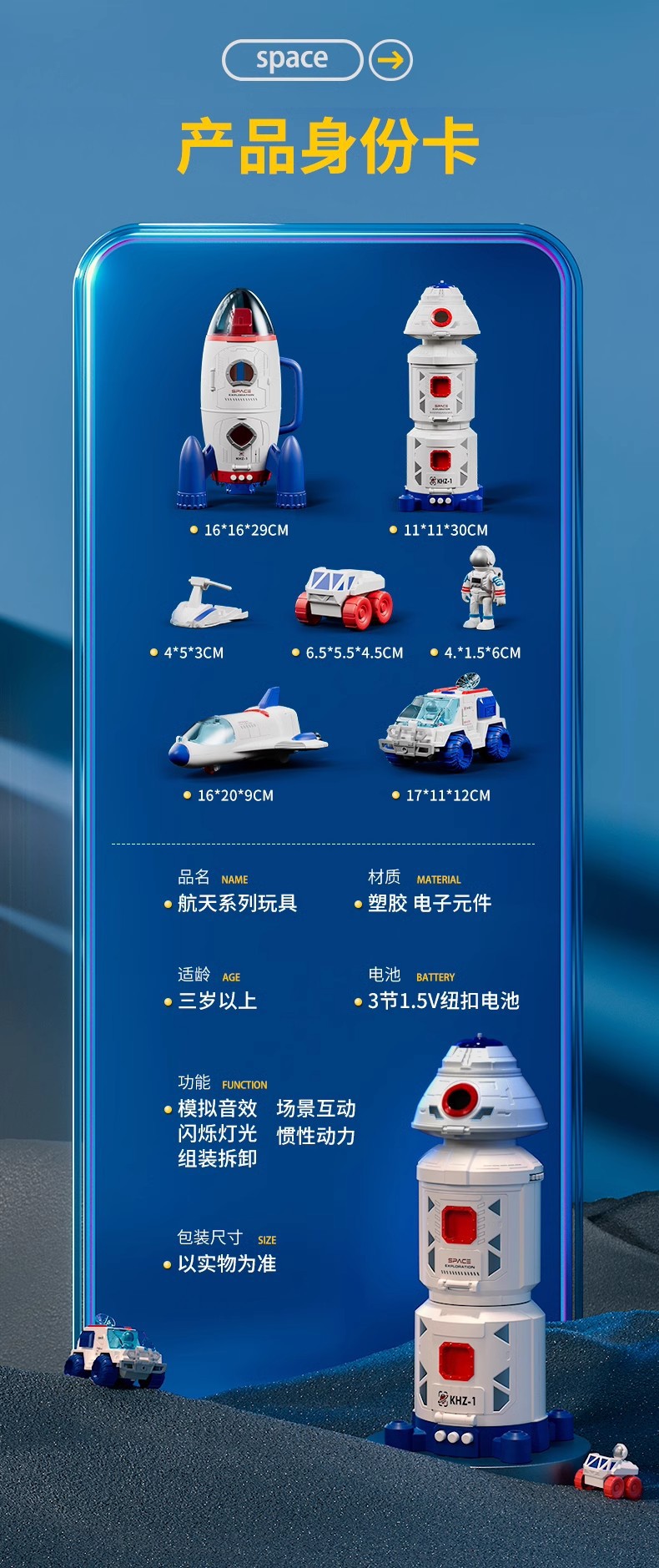 ![Venta caliente [tres en uno] traje de cohete espacial (enviar 3 astronautas + 1 vehículo espacial)](https://cbu01.alicdn.com/img/ibank/O1CN014g0UoF26E8XTrmzGN_!!2214941107629-0-cib.jpg)