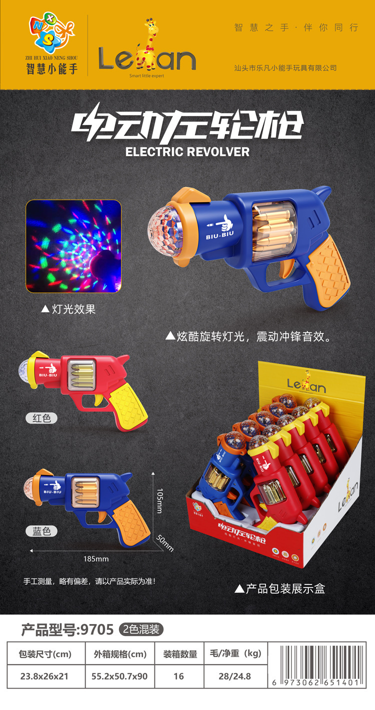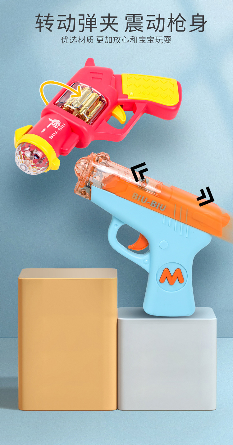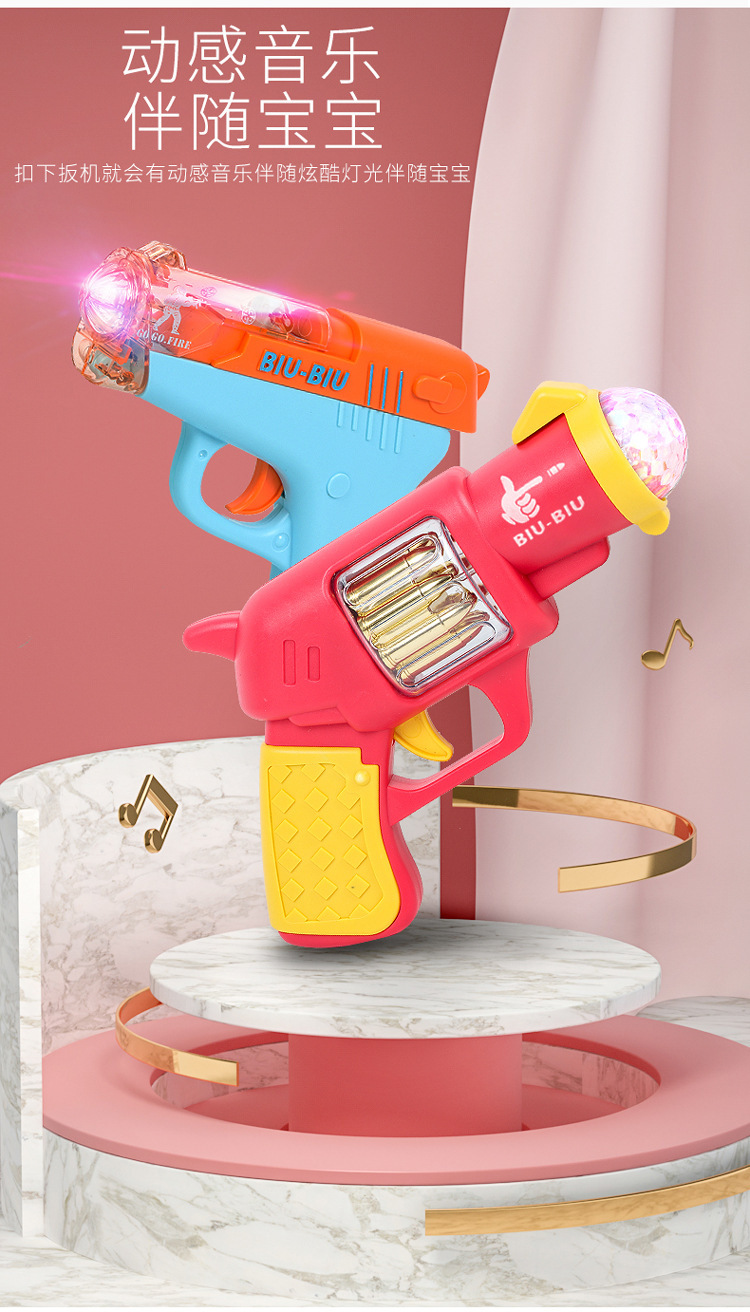 Bebé niños sonido y luz juguetes pistolas musicales para niños y niñas revólver eléctrico simulación pequeña pistola puesta en el mercado nocturno mayorista