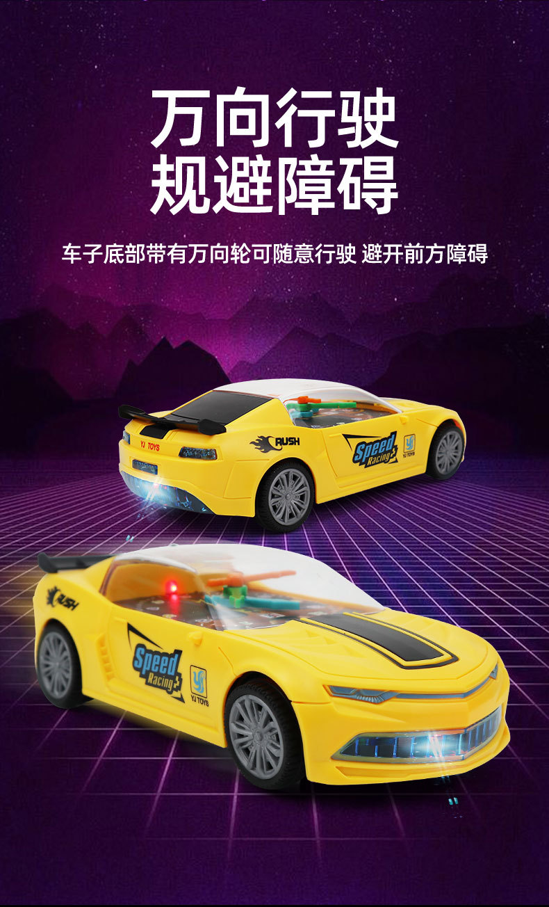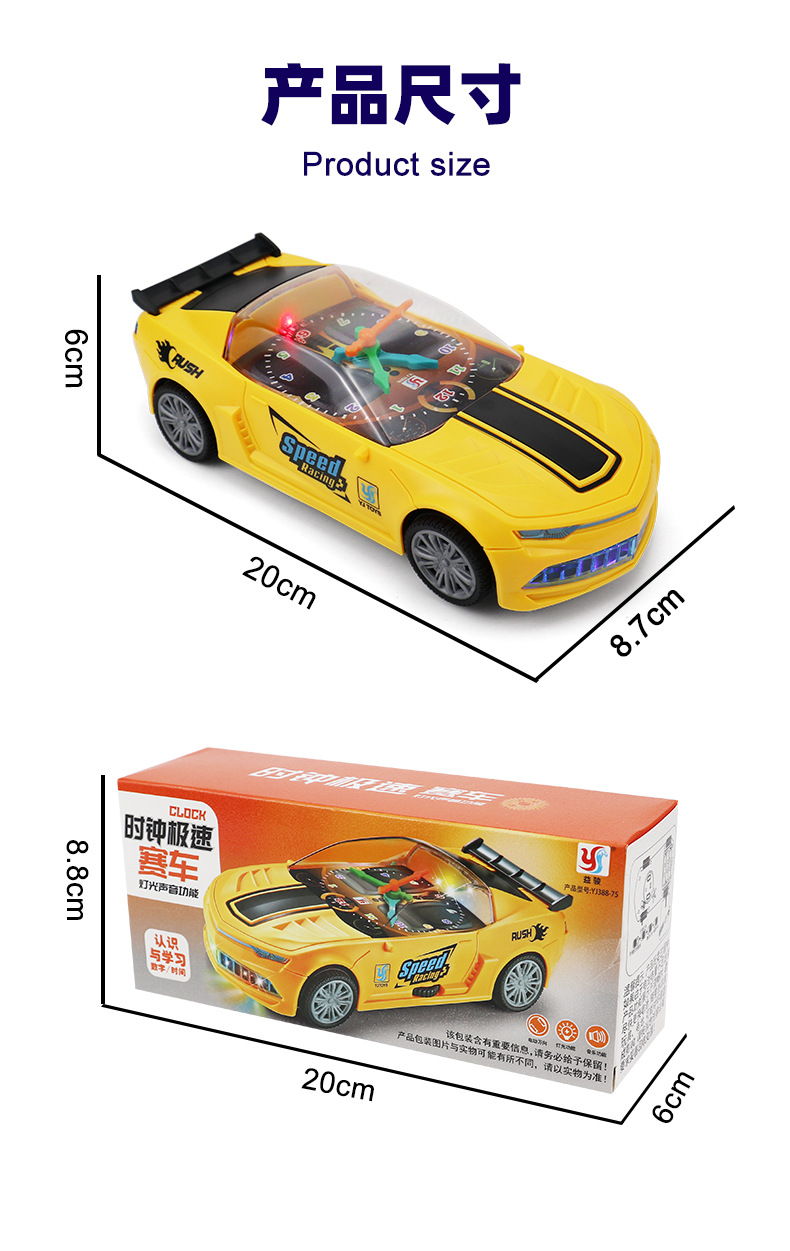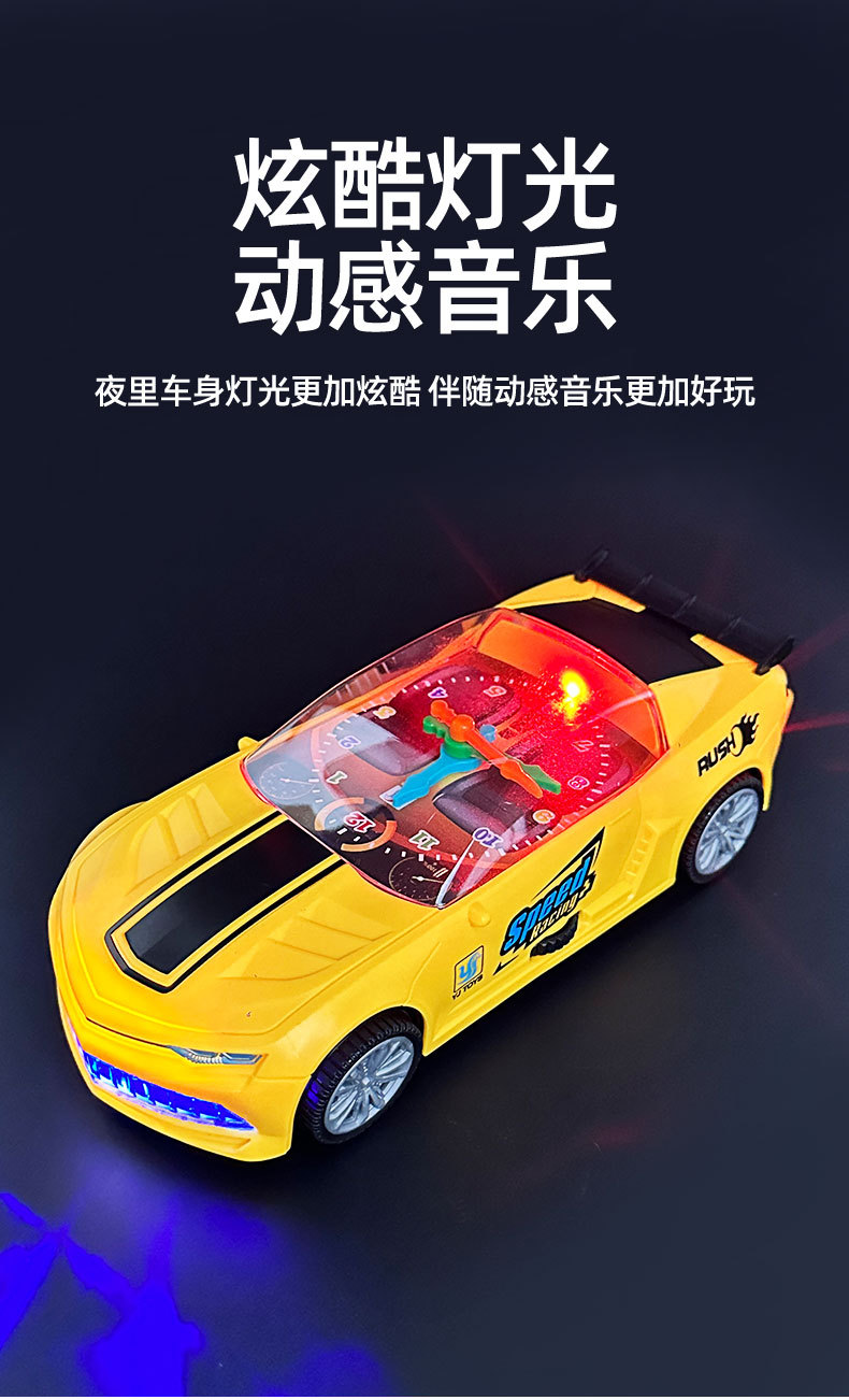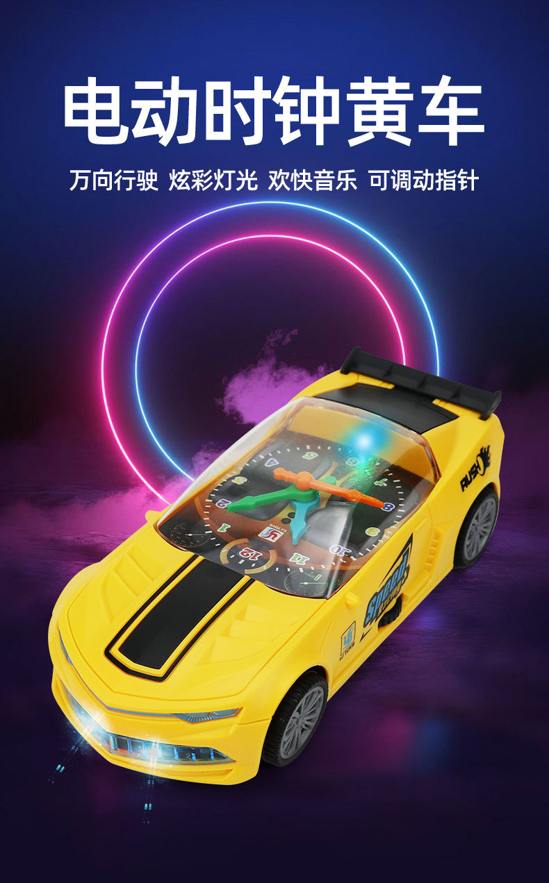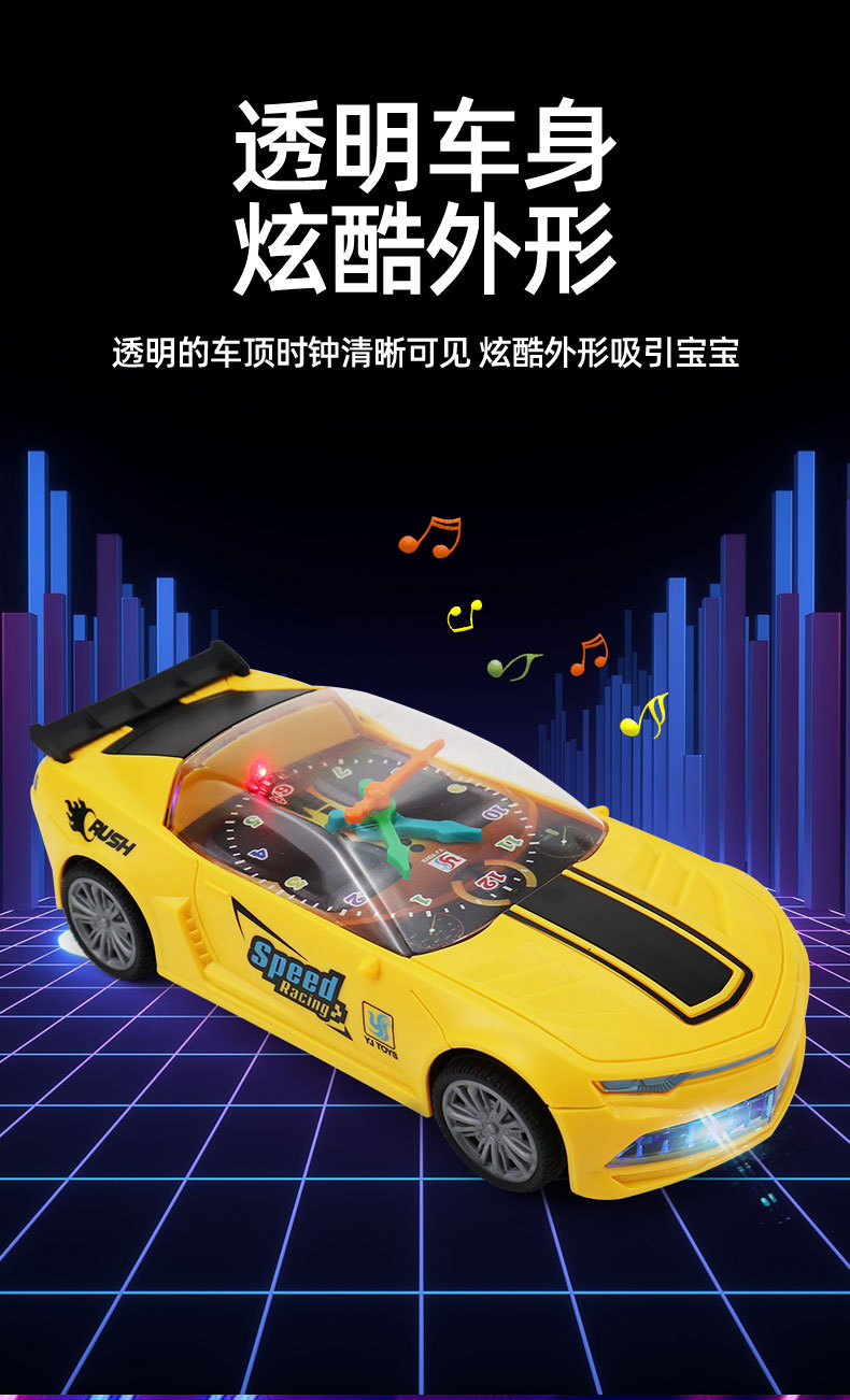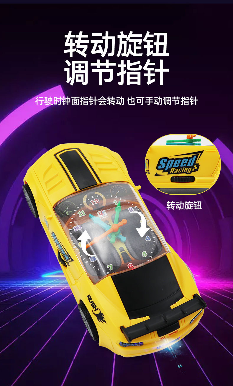 Reloj universal eléctrico de velocidad de carreras de música de colores luces pequeños coches de juguetes amarillos juguetes para niños juguetes al por mayor