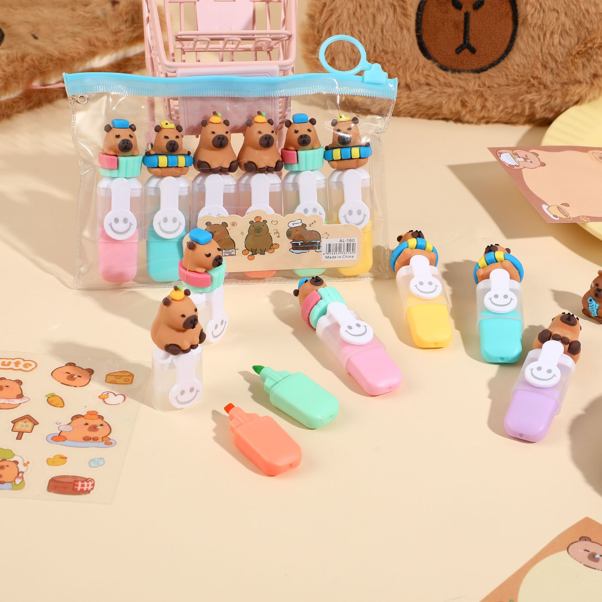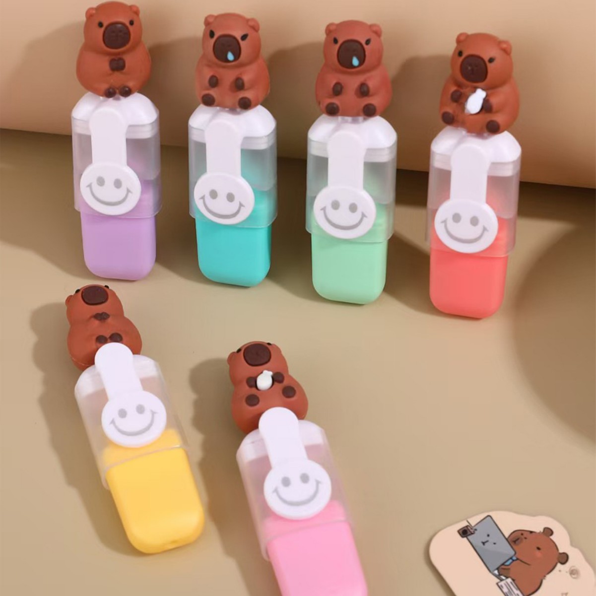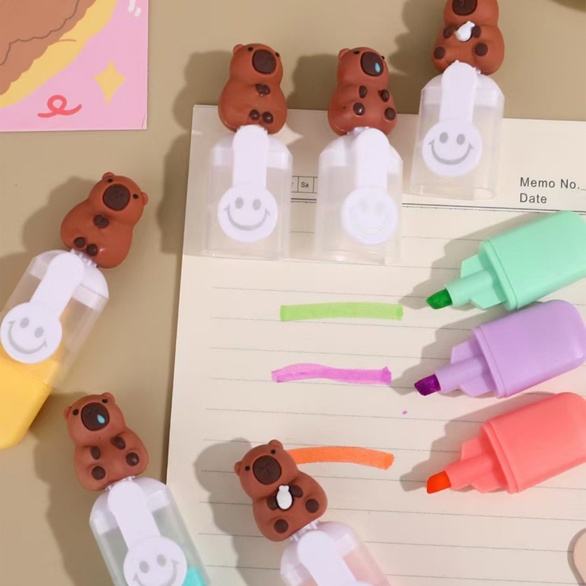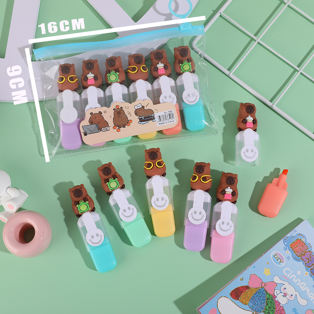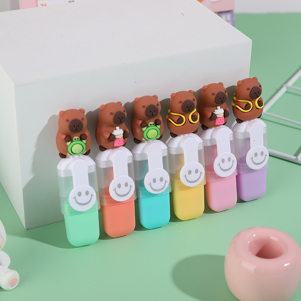 Capibara mini resaltador adorable estudiante dibujo creativo pintado trazos de coloración marcador clave