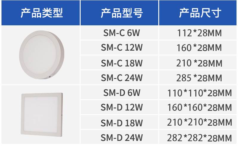 PotenciaRound-6W,Round-12W,Round-18W,Round-24W,Square-6W,Square-12W,Square-18W,Square-24W