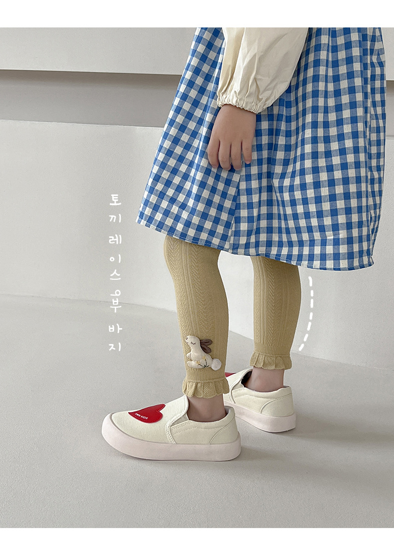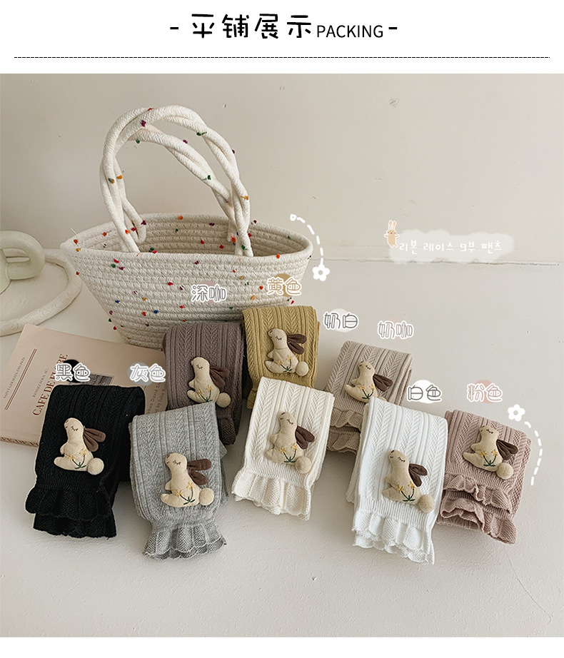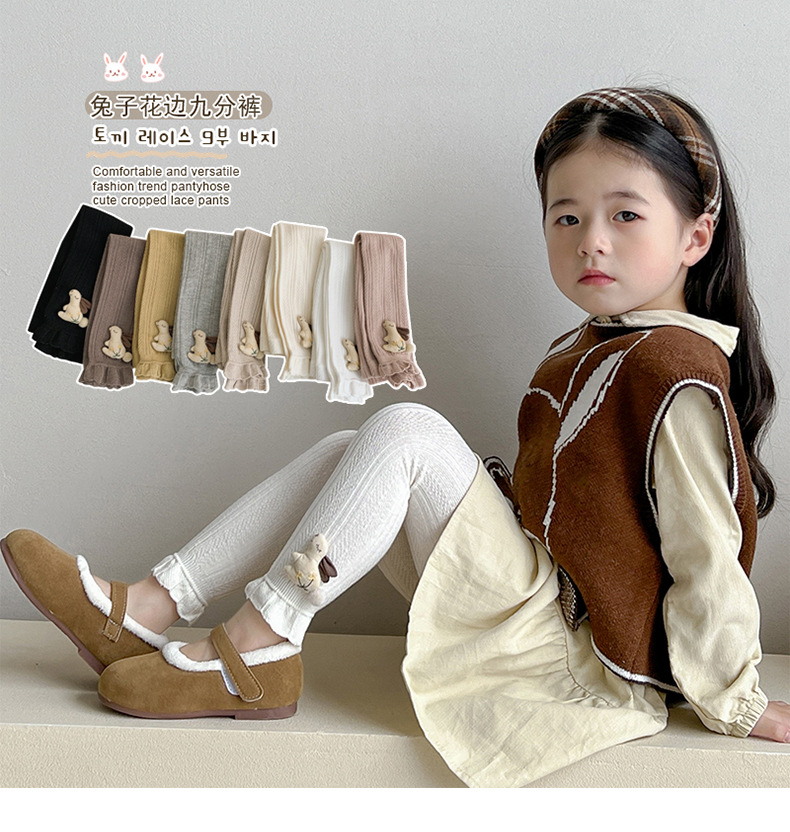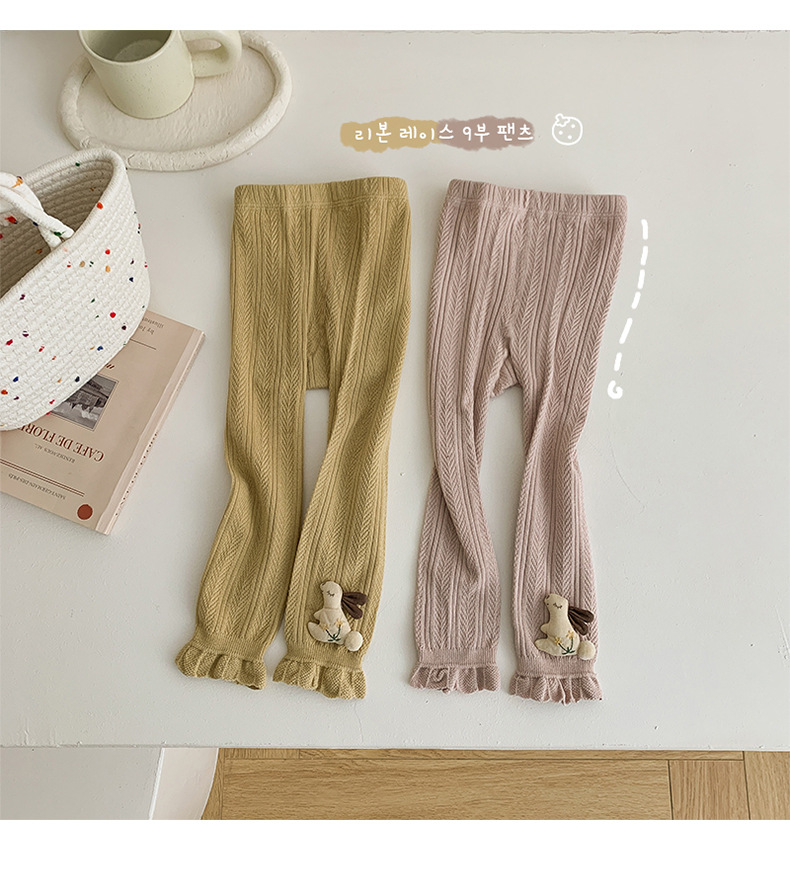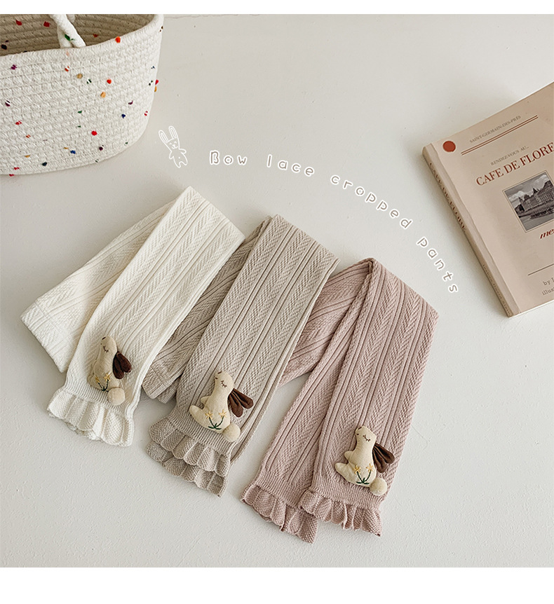 Pantalones para niños de algodón con volantes y pompón de conejo – moda primavera-otoño, para uso exterior.