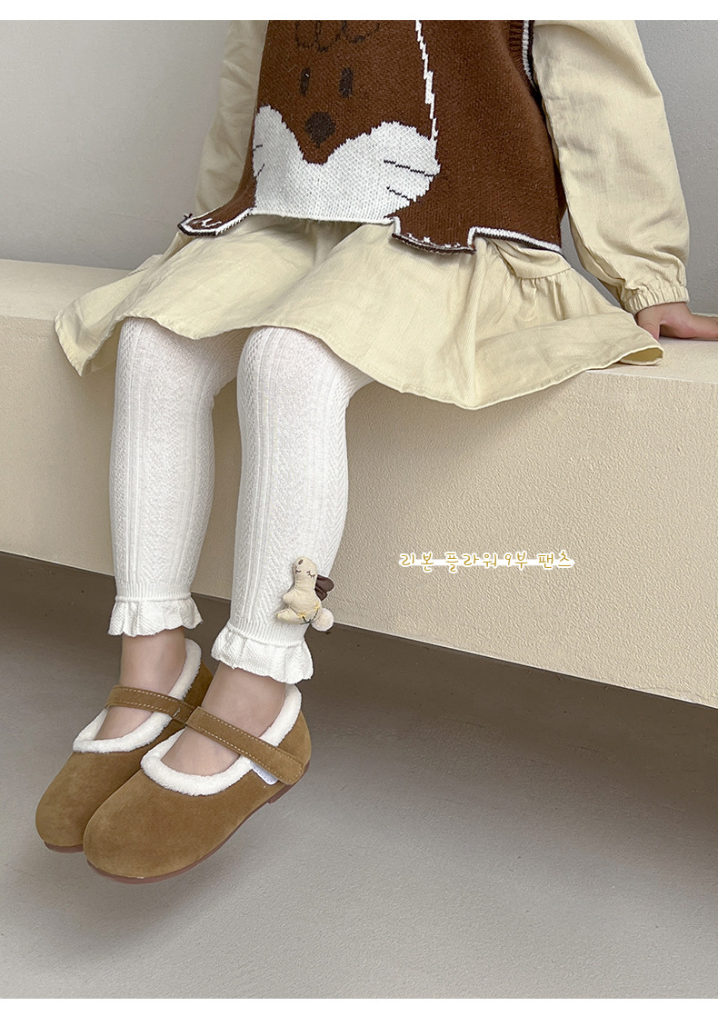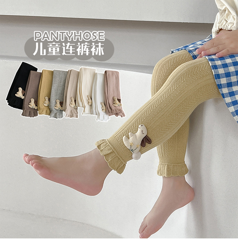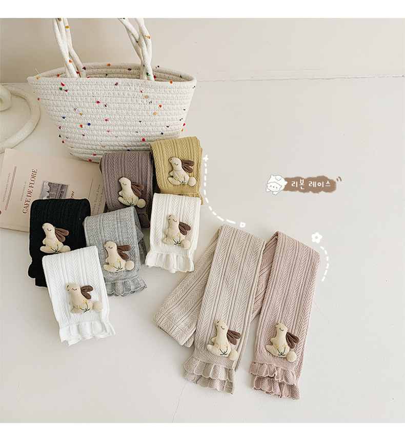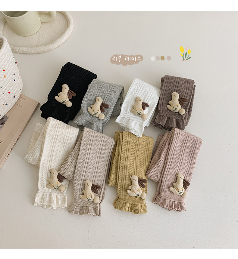 Pantalones para niños de algodón con volantes y pompón de conejo – moda primavera-otoño, para uso exterior.