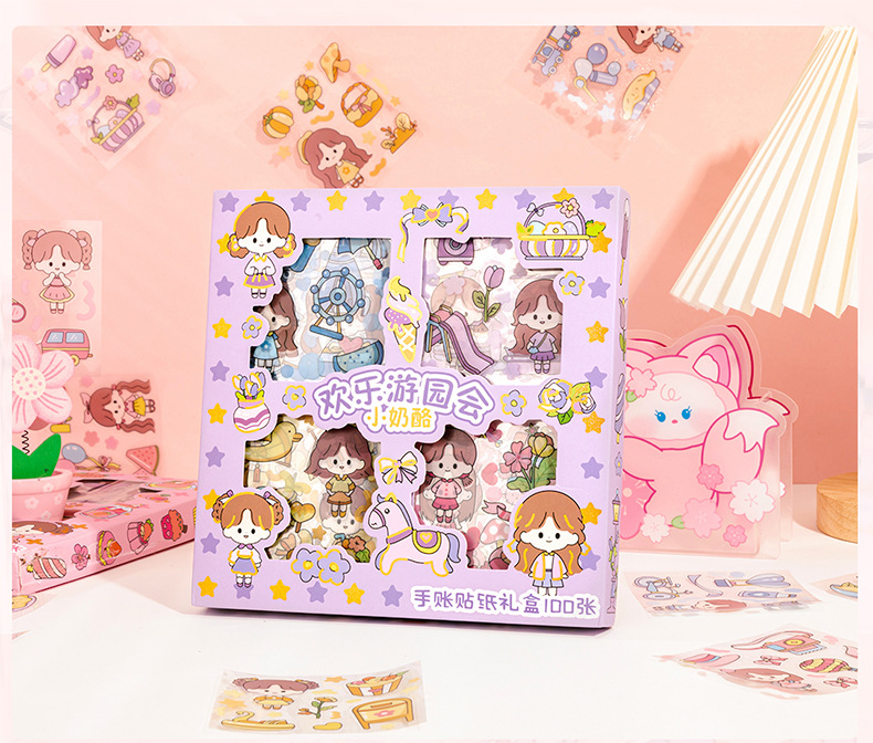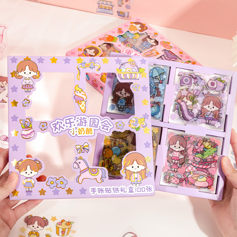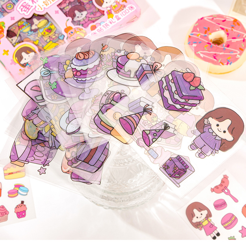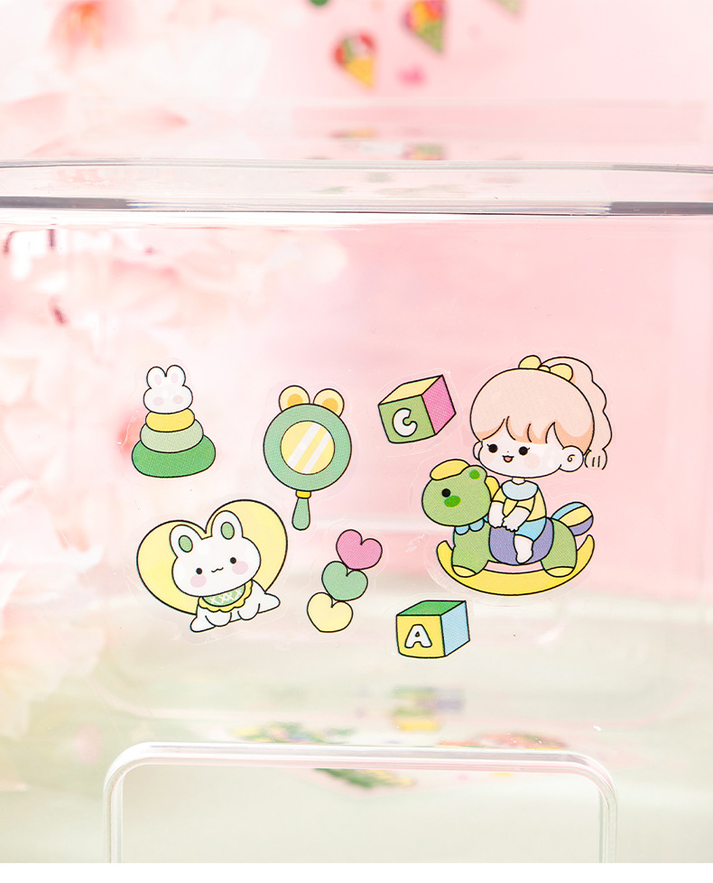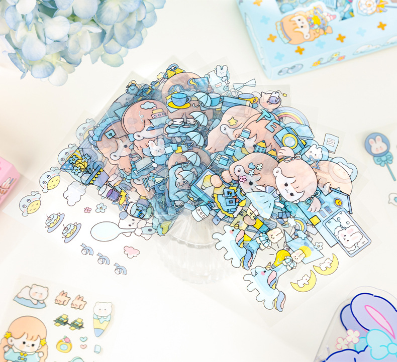 Kit de 100 pegatinas para diario PET transparente, impermeables y sin marcas – diseño cute, para DIY decorativo.