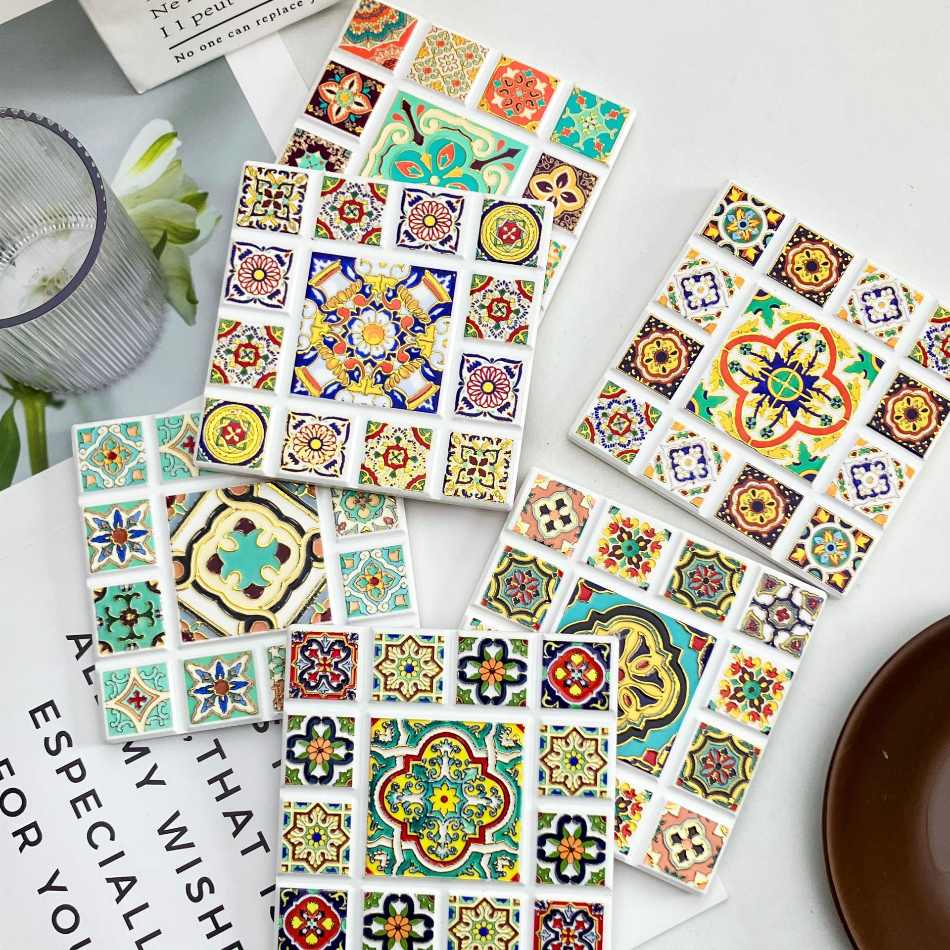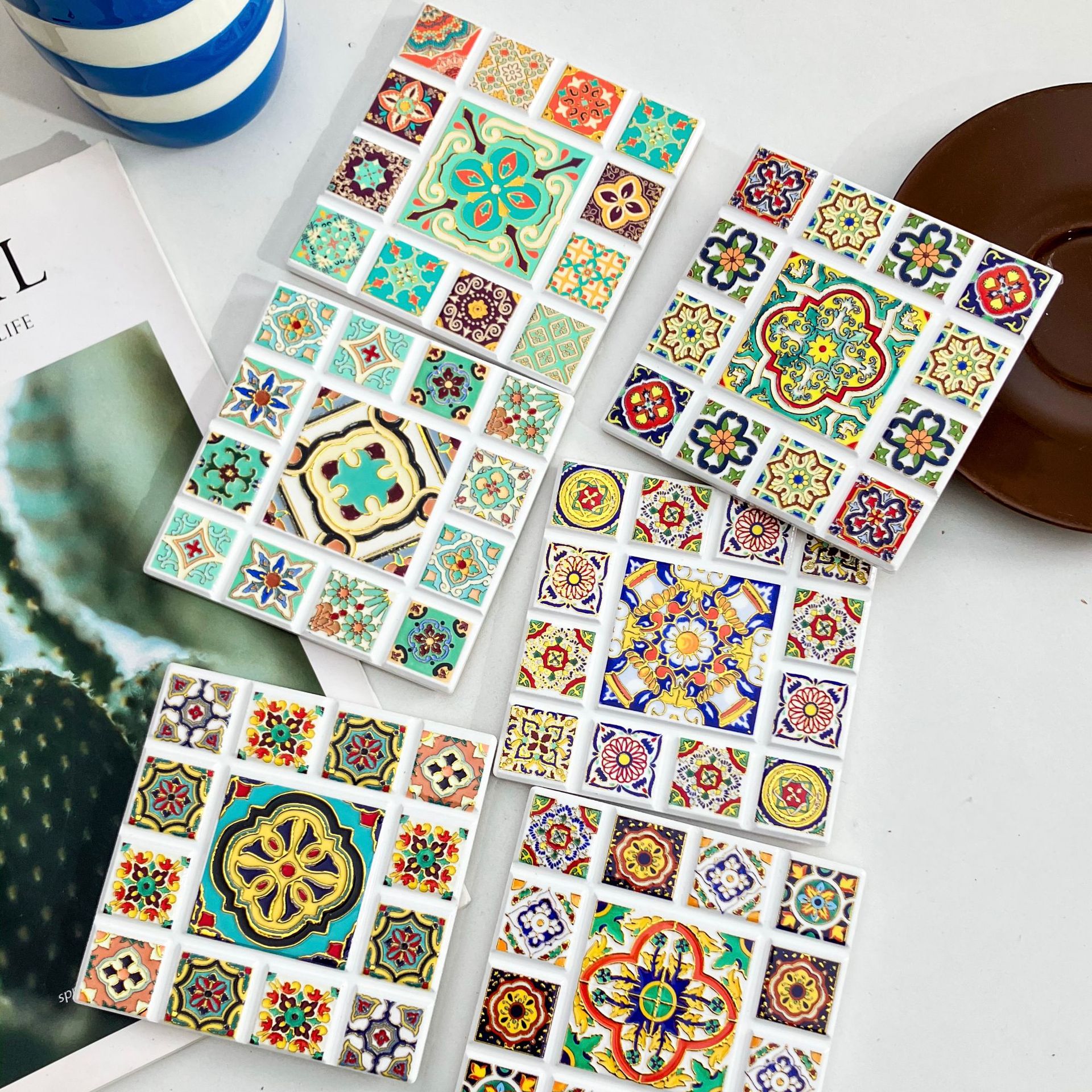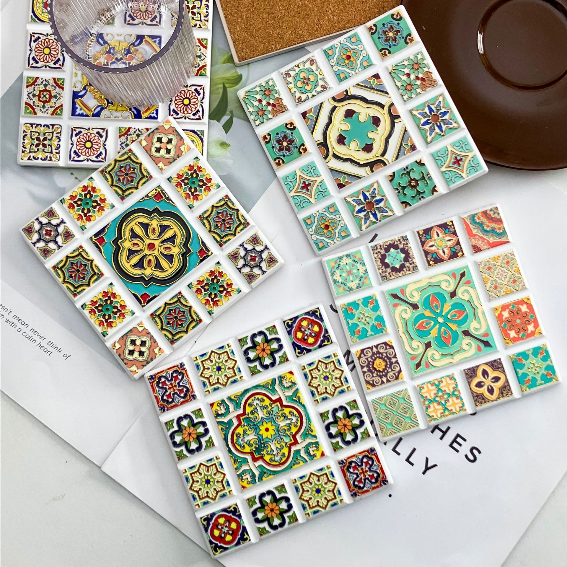 Transfronterizos nueva forma de chocolate cuadrado 3D estampado en relieve estampado taza almohadilla aislante de corcho estilo nacional retro