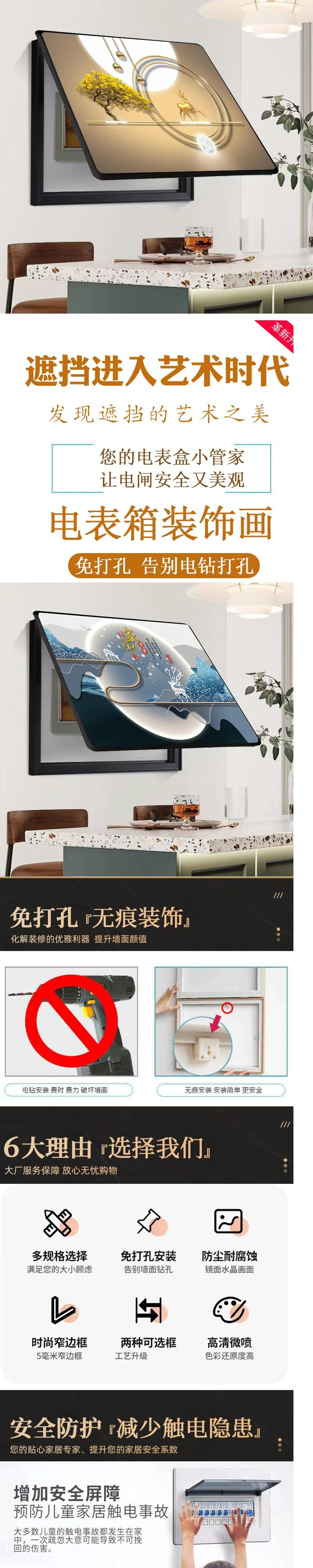 Caja de medidor, pintura decorativa, oclusión, caja de interruptor sin agujeros, caja de distribución, sala de estar, comedor, pintura de porcelana de cristal, simplicidad moderna, lujo ligero