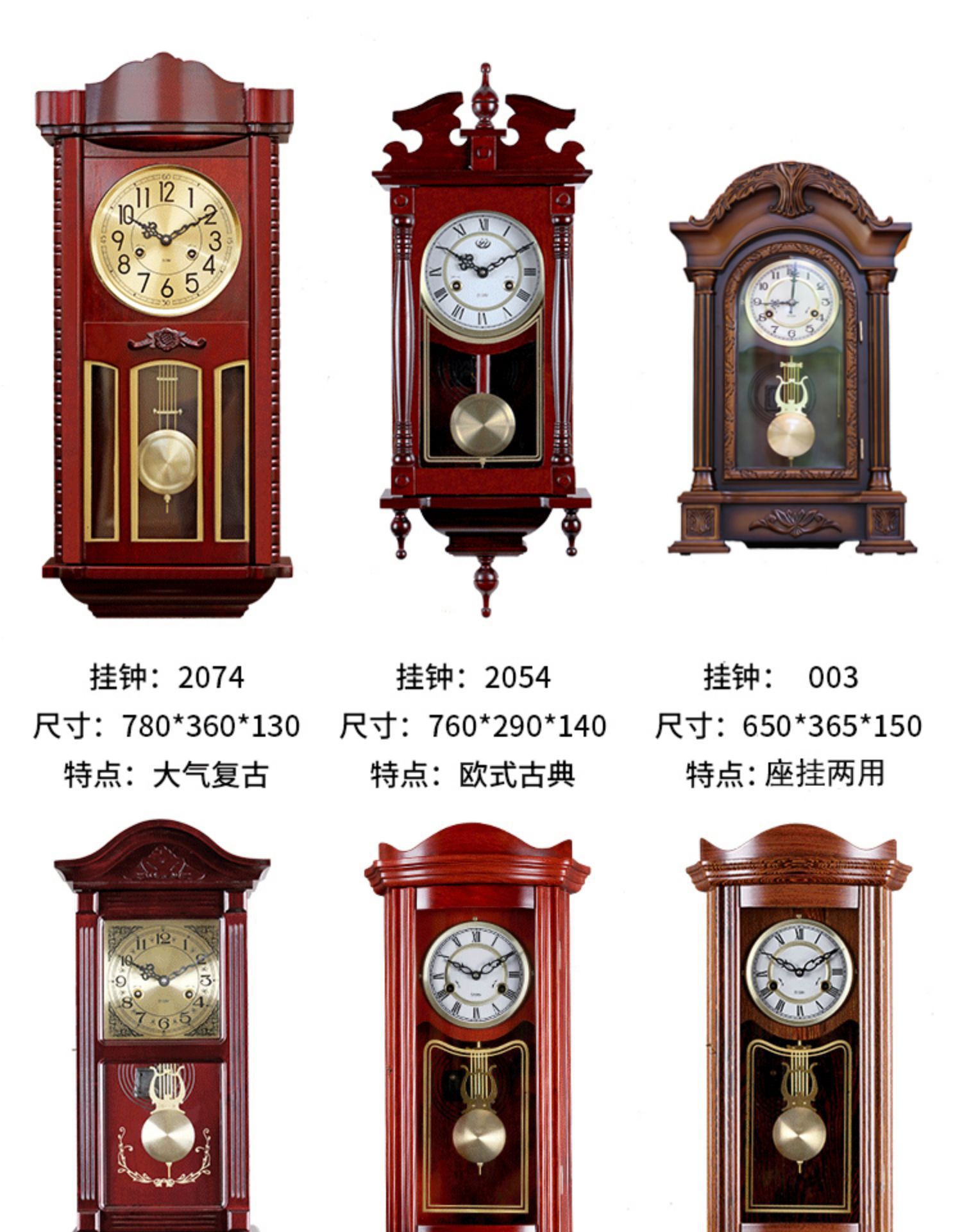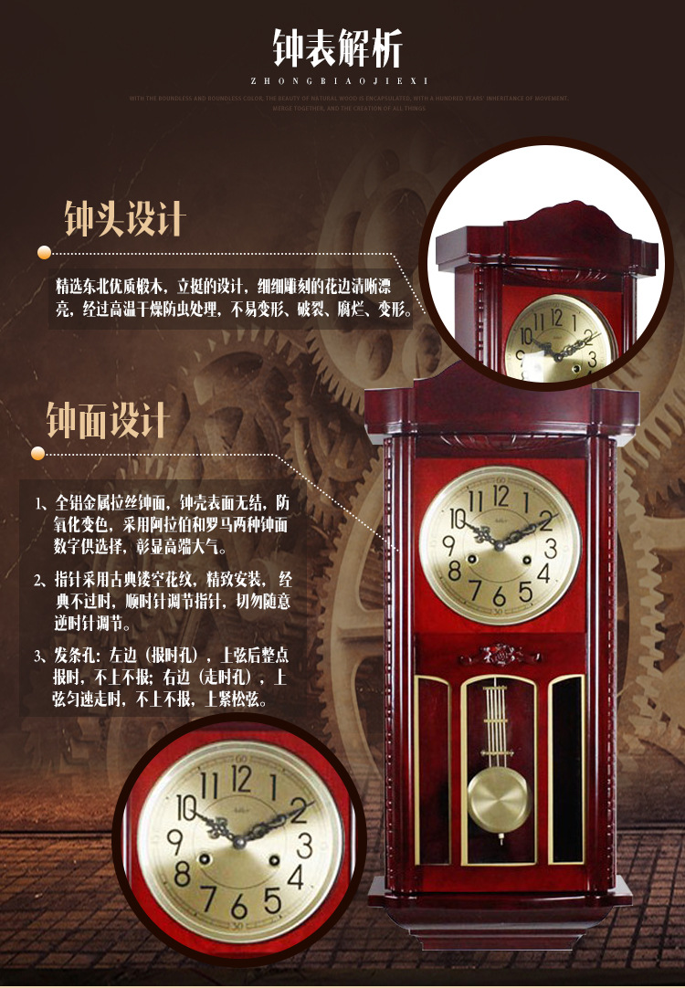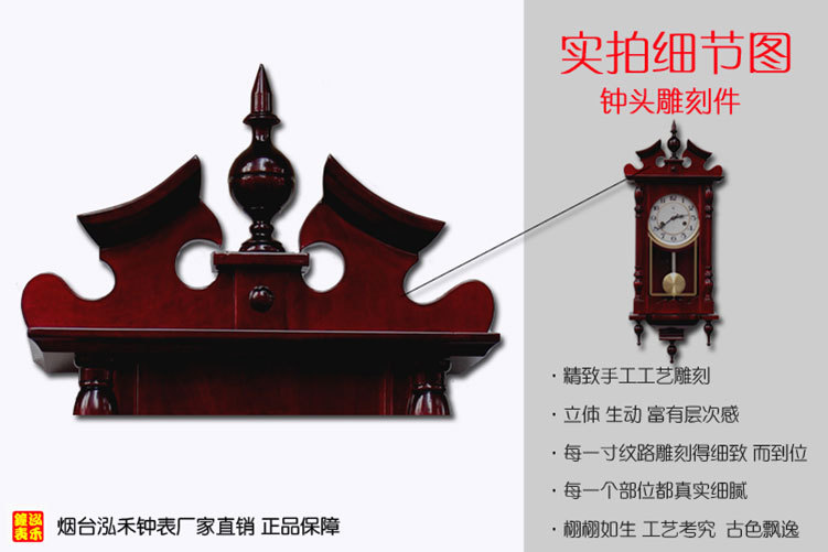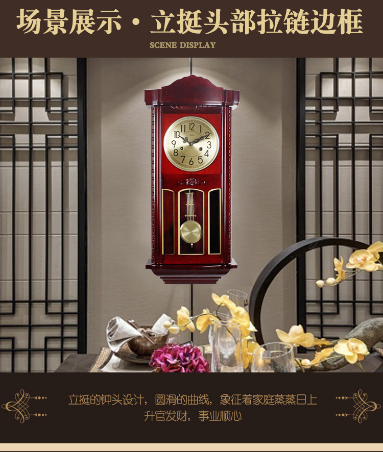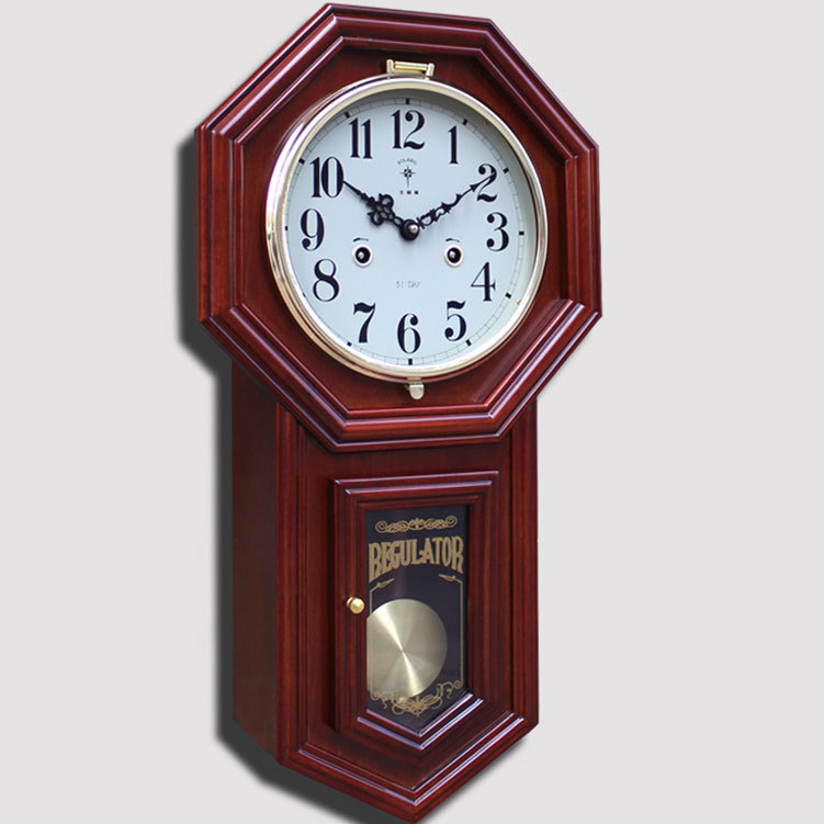 Reloj de pared de estilo chino nuevo antiguo, de madera maciza, mecánico – movimiento de péndulo de cobre Polaris, para Feng Shui.