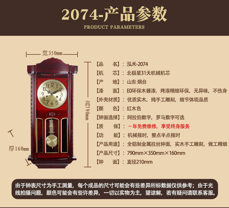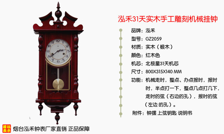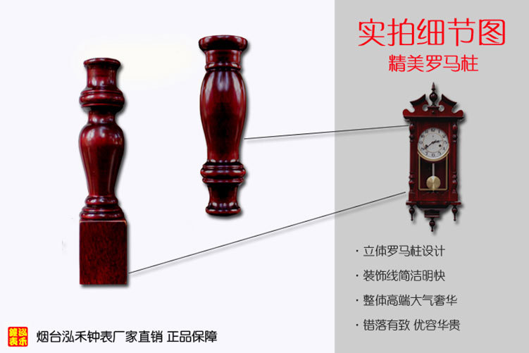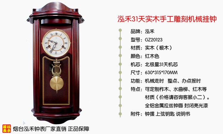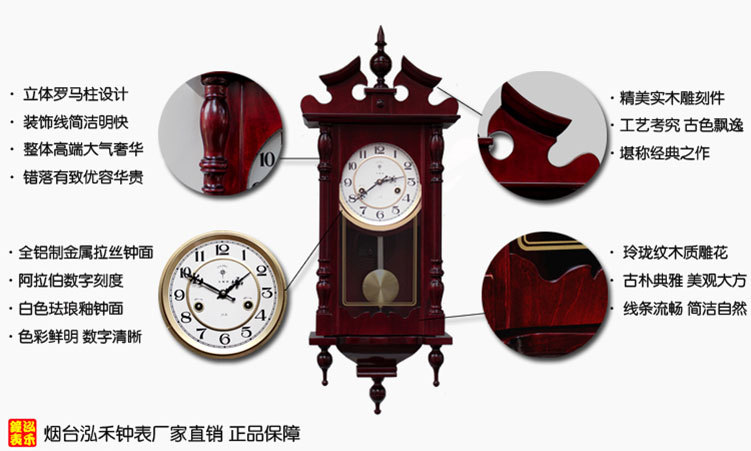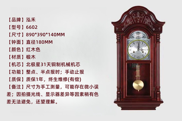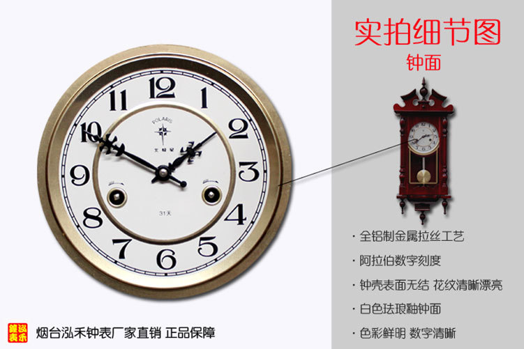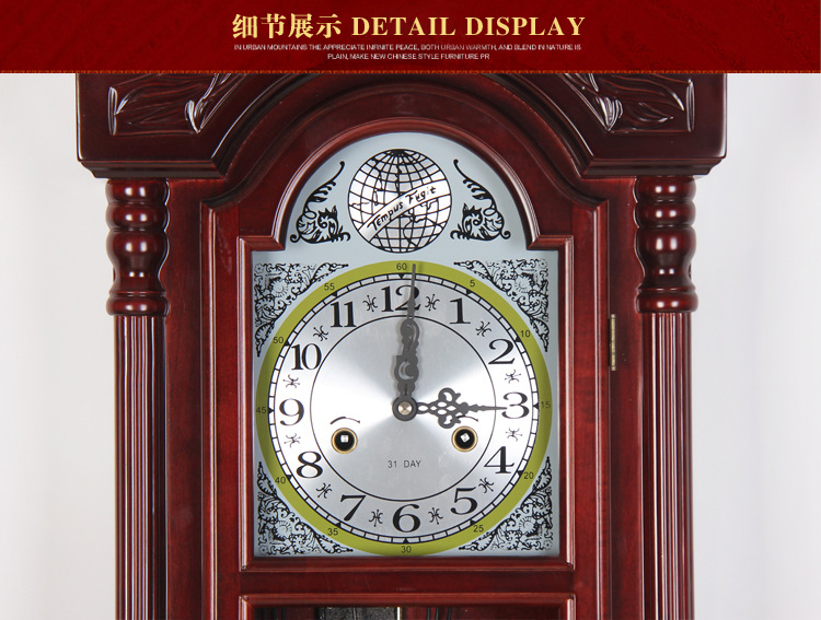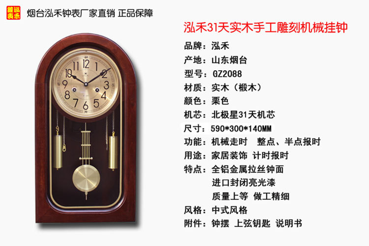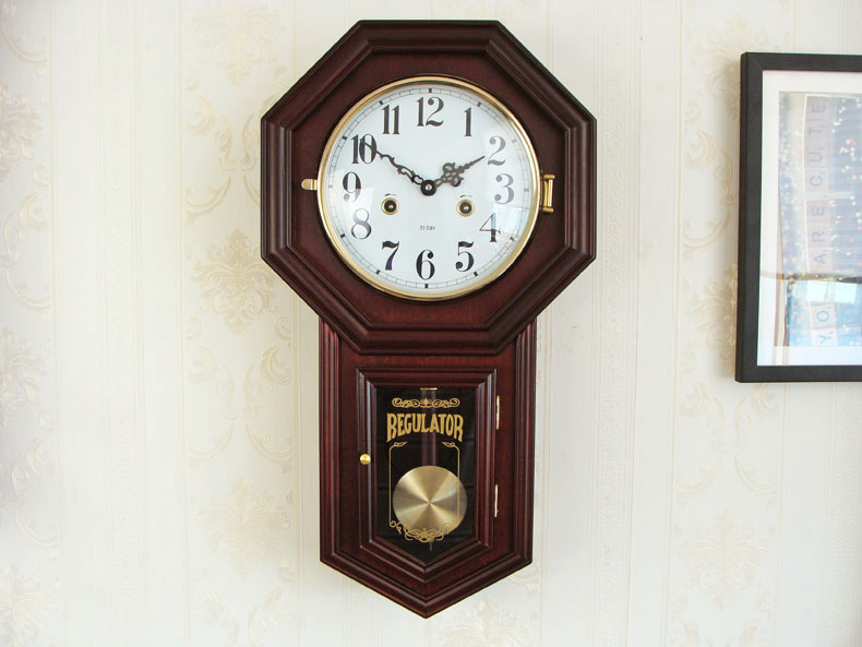 Reloj de pared de estilo chino nuevo antiguo, de madera maciza, mecánico – movimiento de péndulo de cobre Polaris, para Feng Shui.
