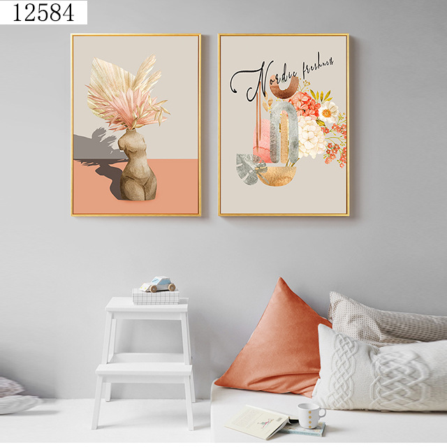 Dos pinturas decorativas mural mural comedor dormitorio pared de fondo porcelana de cristal de lujo simple nórdica moderna pintura muerta